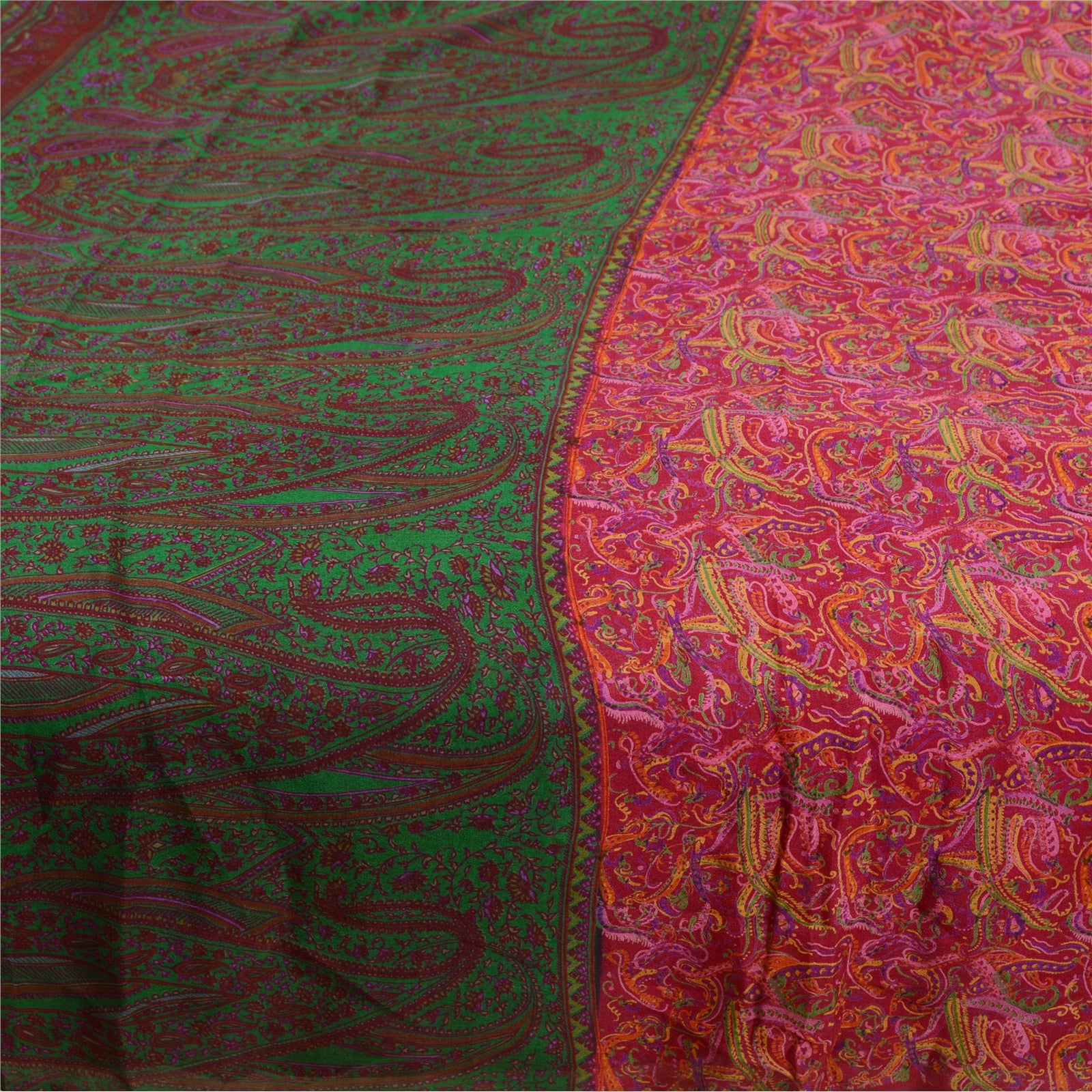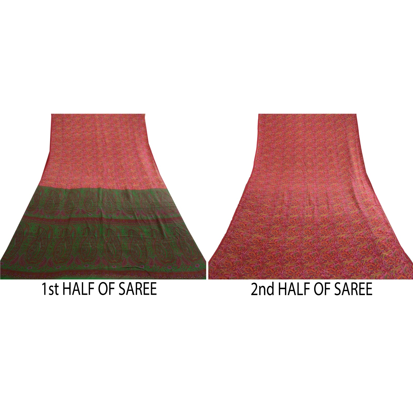 Beautiful pink & green colored pure silk printed saree. Pallu & border has printed floral design. Floral design in center part of saree. What is special about this saree? Fabulous design is really enhancing the beauty of the saree.This unique vintage saree can be used for various crafting ideas even if you don't want to use it as a sari. Design a dress, use it as window,dressing, upholstery, sarongs, throw, dress making and table linen much more. Let your creative juices flow and use this decorated Sustainable Fabric in multiple fashion.