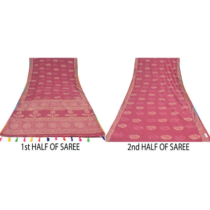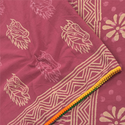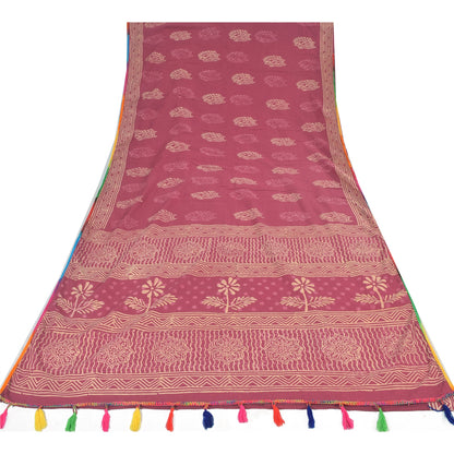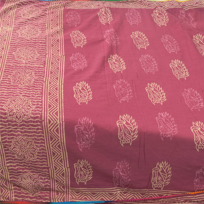 Sanskriti Vintage Sarees Pink Hand Block Print Pure Cotton Sari 5yd Craft Sustainable Fabric