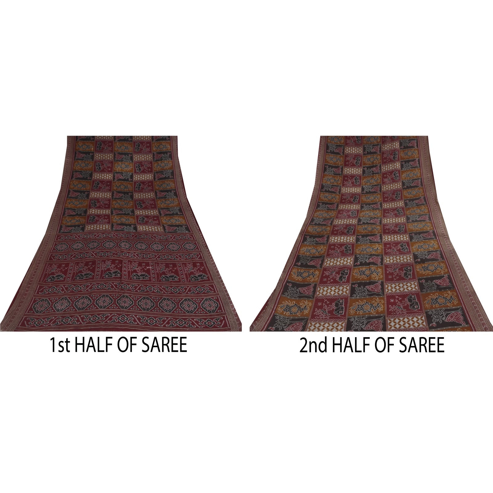 Sanskriti Vintage Sarees Pure Cotton Women/Bird Printed Sari 5+yd Craft Sustainable Fabric
