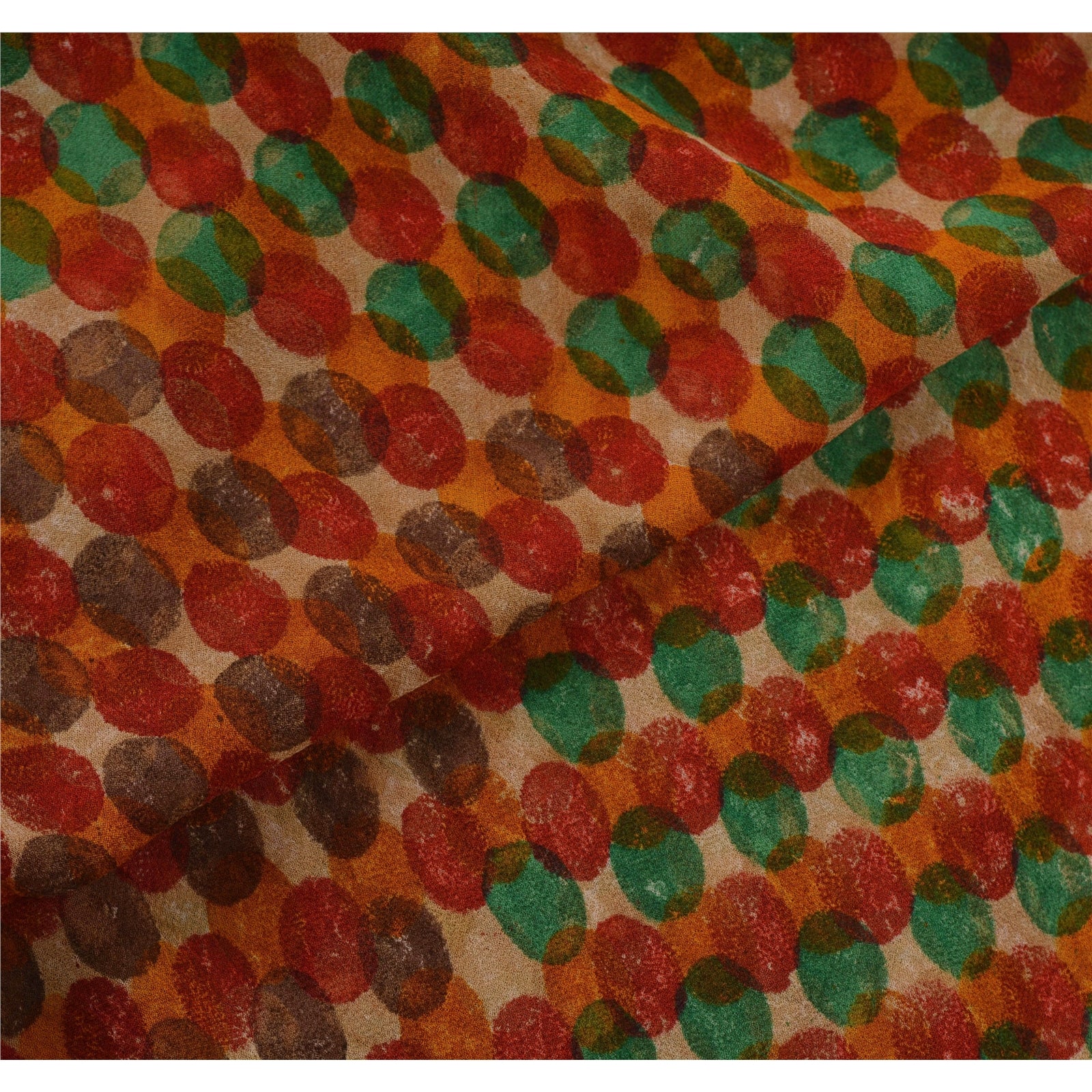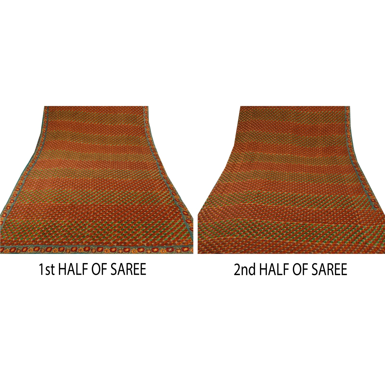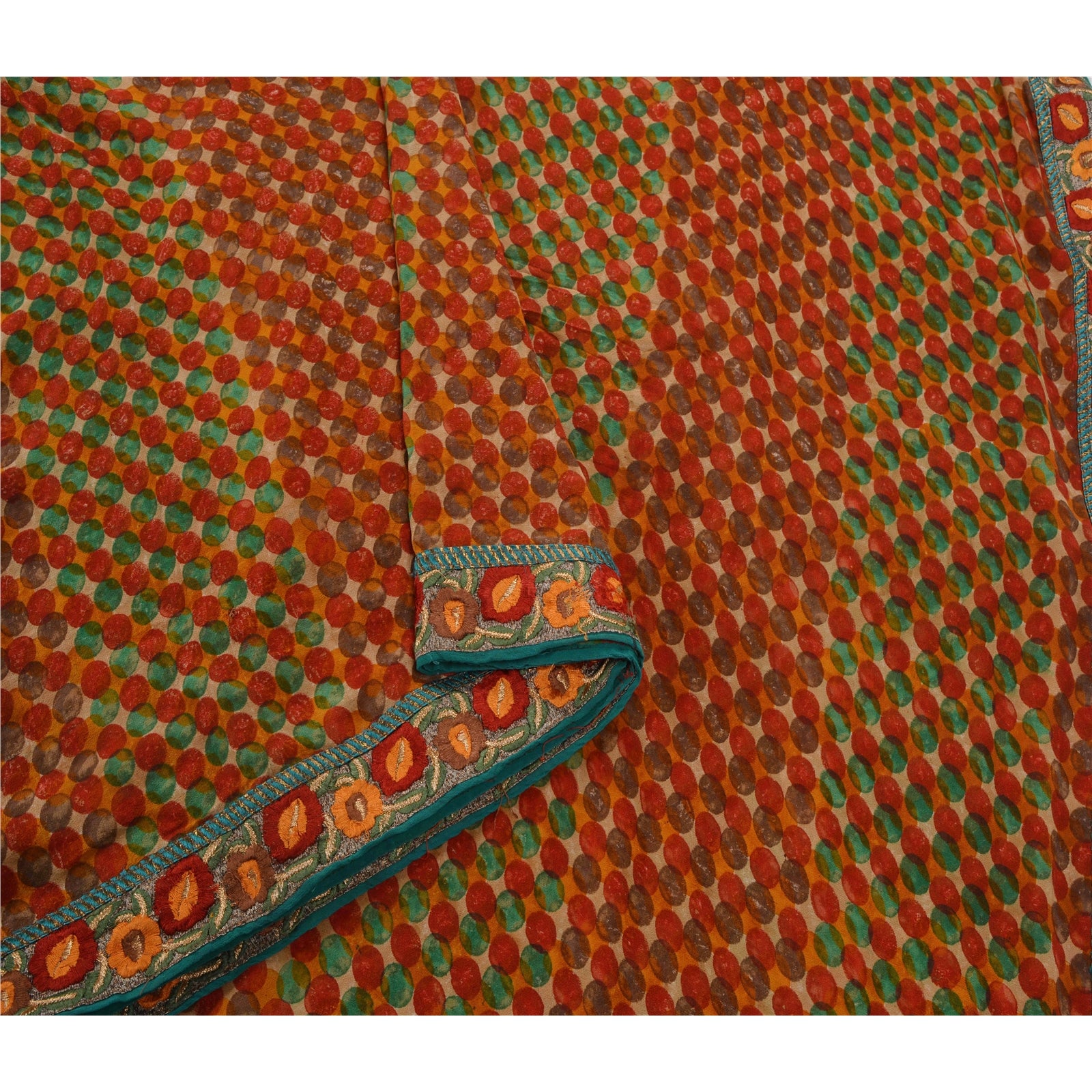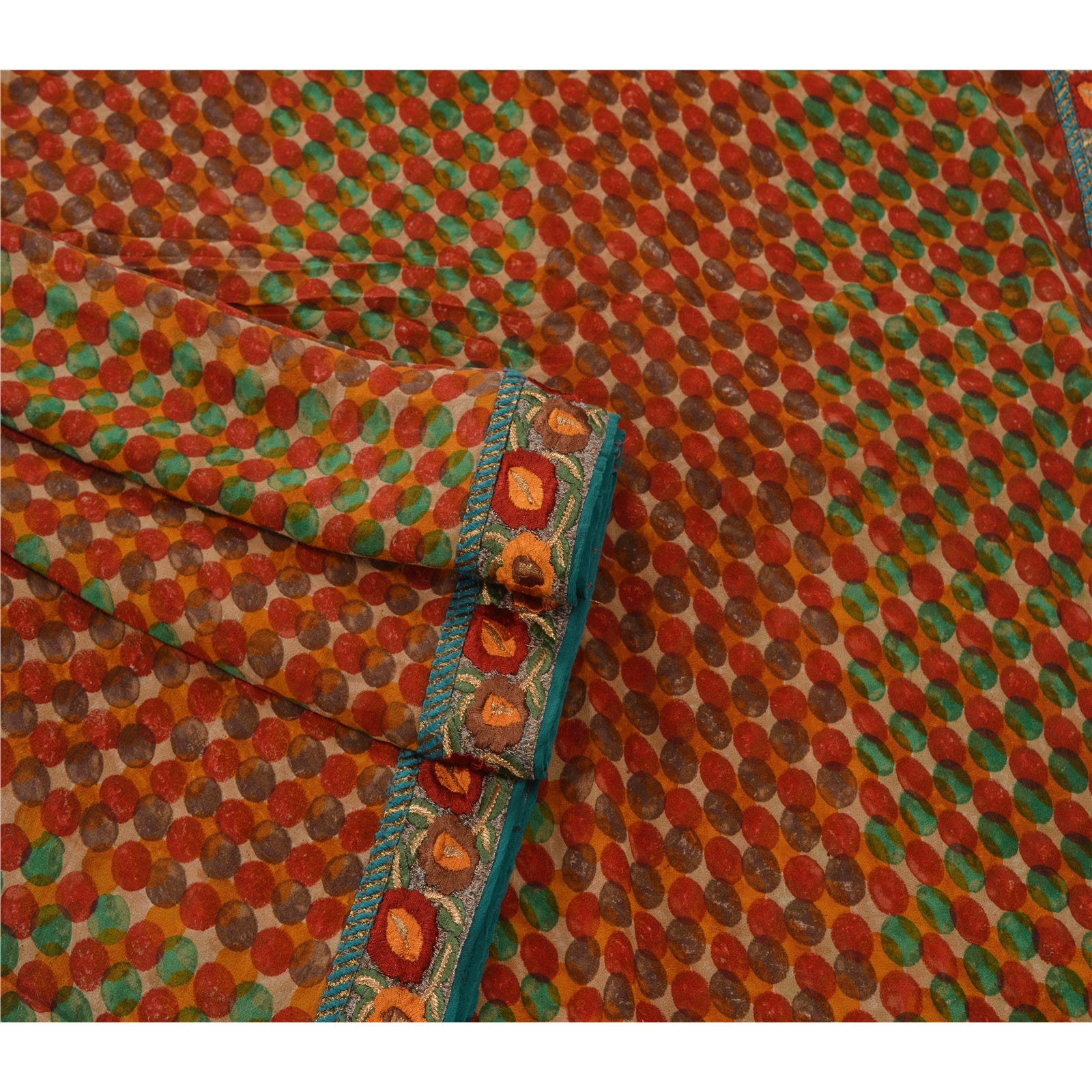 • Marvelous multi colored 100% pure georgette silk embroidered printed sari. • Border features green Sustainable Fabric patch work embroidered with multi color thread work. • Printed polka dots design in center part of saree. What is special about this saree? Colorful print with graceful patch work is really enhancing the beauty of the saree. This unique vintage saree can be used for various crafting ideas even if you don't want to use it as a sari. Design a dress, use it as a throw, as window dressing, upholstery, sarongs, table linen and much more. Let your creative juices flow and use this decorated Sustainable Fabric in multiple fashion.