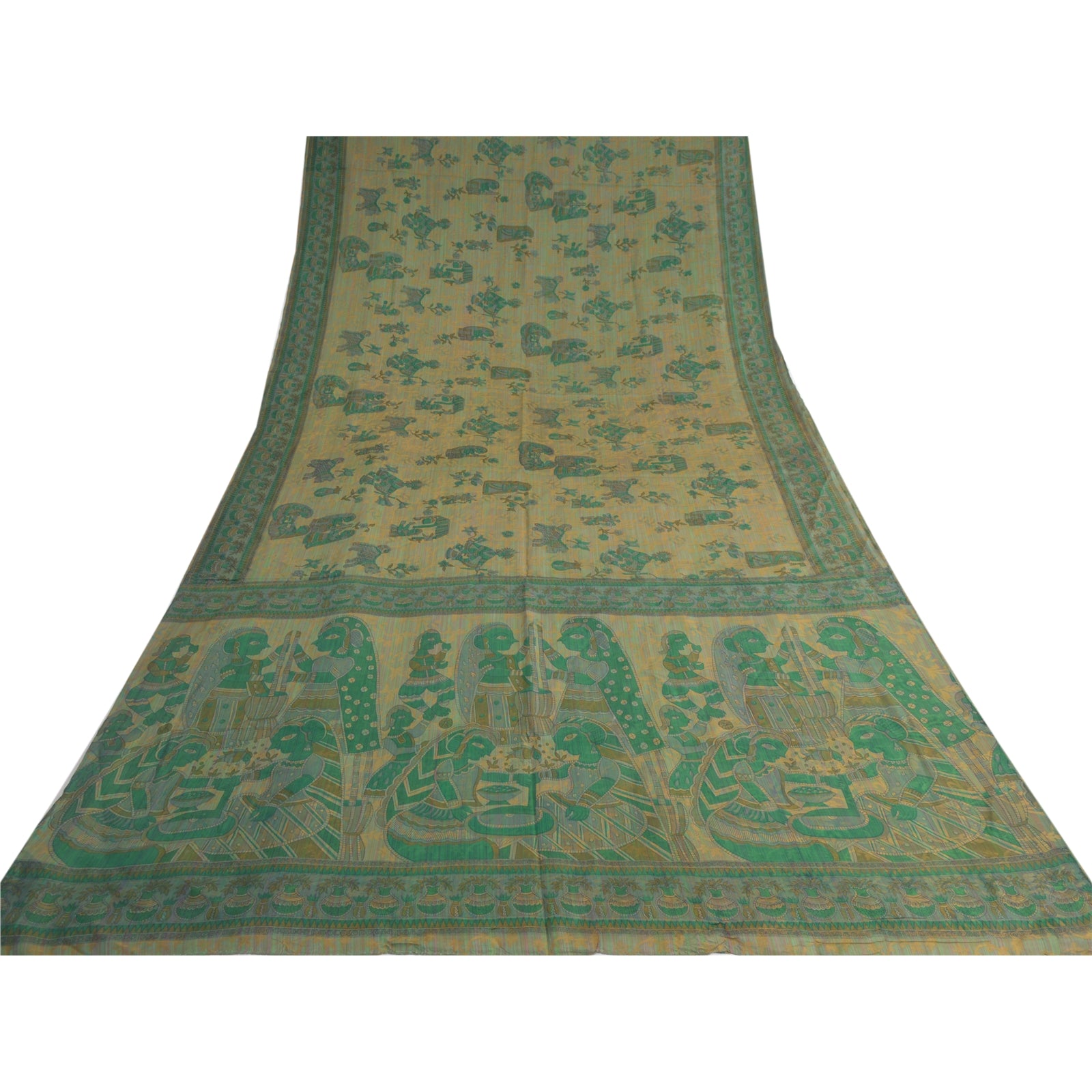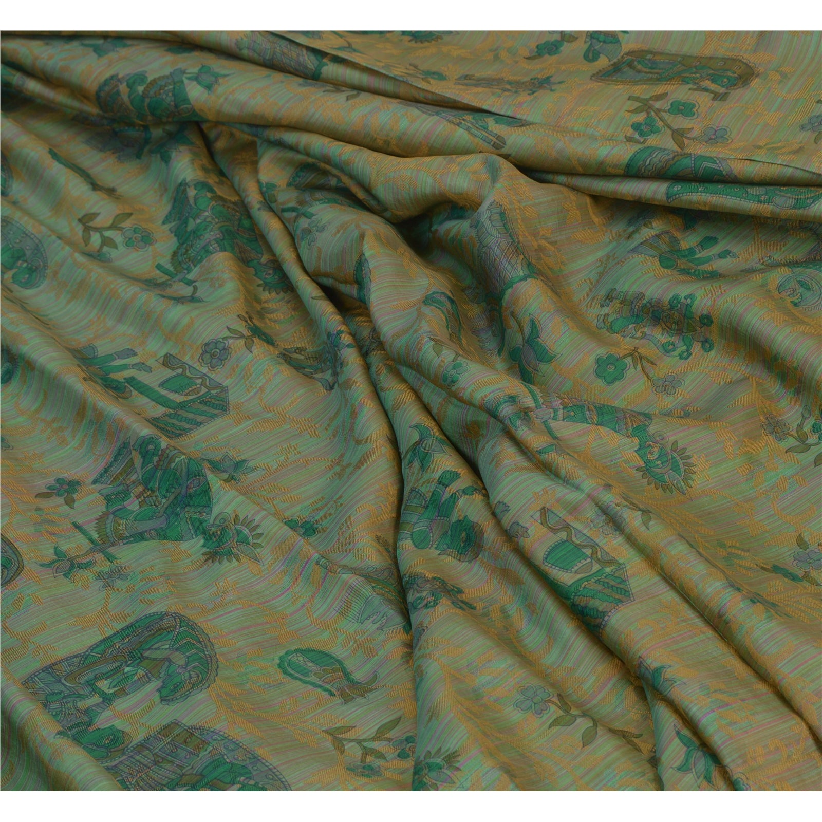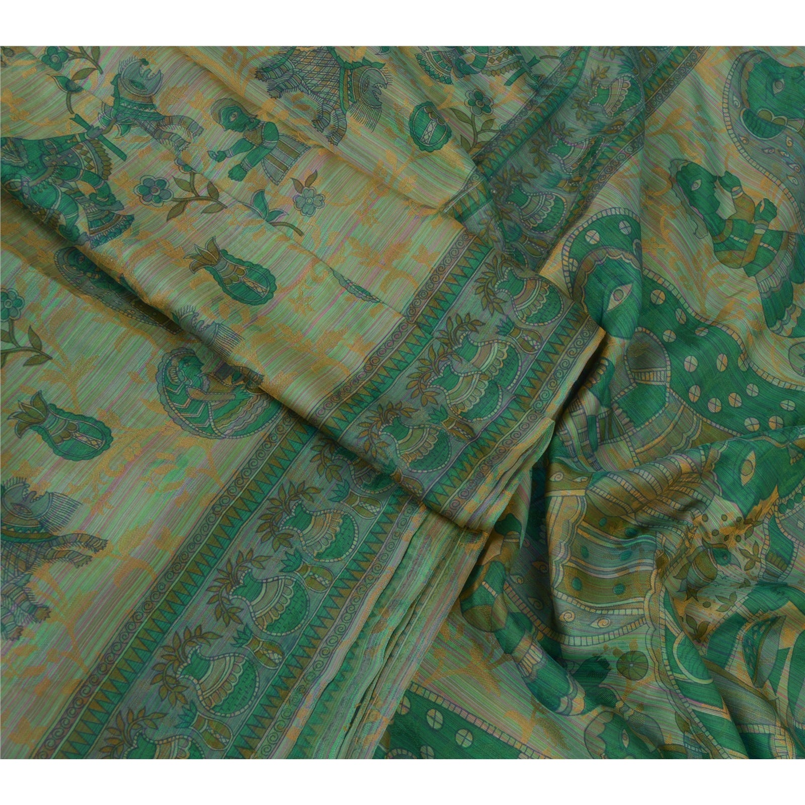 THE ITEM COLOR OR SHADE MAY BE DARKER OR LIGHTER THAN THE PICTURE.' Beautiful Green Colored 100% Pure Silk Printed & Woven Sari/Sustainable Fabric. Pallu & border has multi color printed floral & human design. Also you can see similar printed design in center part of saree. This unique vintage saree can be used for various crafting ideas even if you don't want to use it as a sari. Design a dress, use it as a as window dressing, upholstery, sarongs, throw, dress making and table linen much more. Let your creative juices flow and use this decorated Sustainable Fabric in multiple fashion. International buyers please note: Import duties, taxes, and charges are not included in the item price or postage cost. These charges are the buyer's responsibility. Please check with your country's customs office to determine what these additional costs will be prior to bidding or buying. Buyer will pay custom duty/tax. It is calculated and charged differently by every country. As a seller I do not have any control over it.VAT or sales tax is calculated by the platform at the time of checkout. Customs charge is payable at the time of delivery.