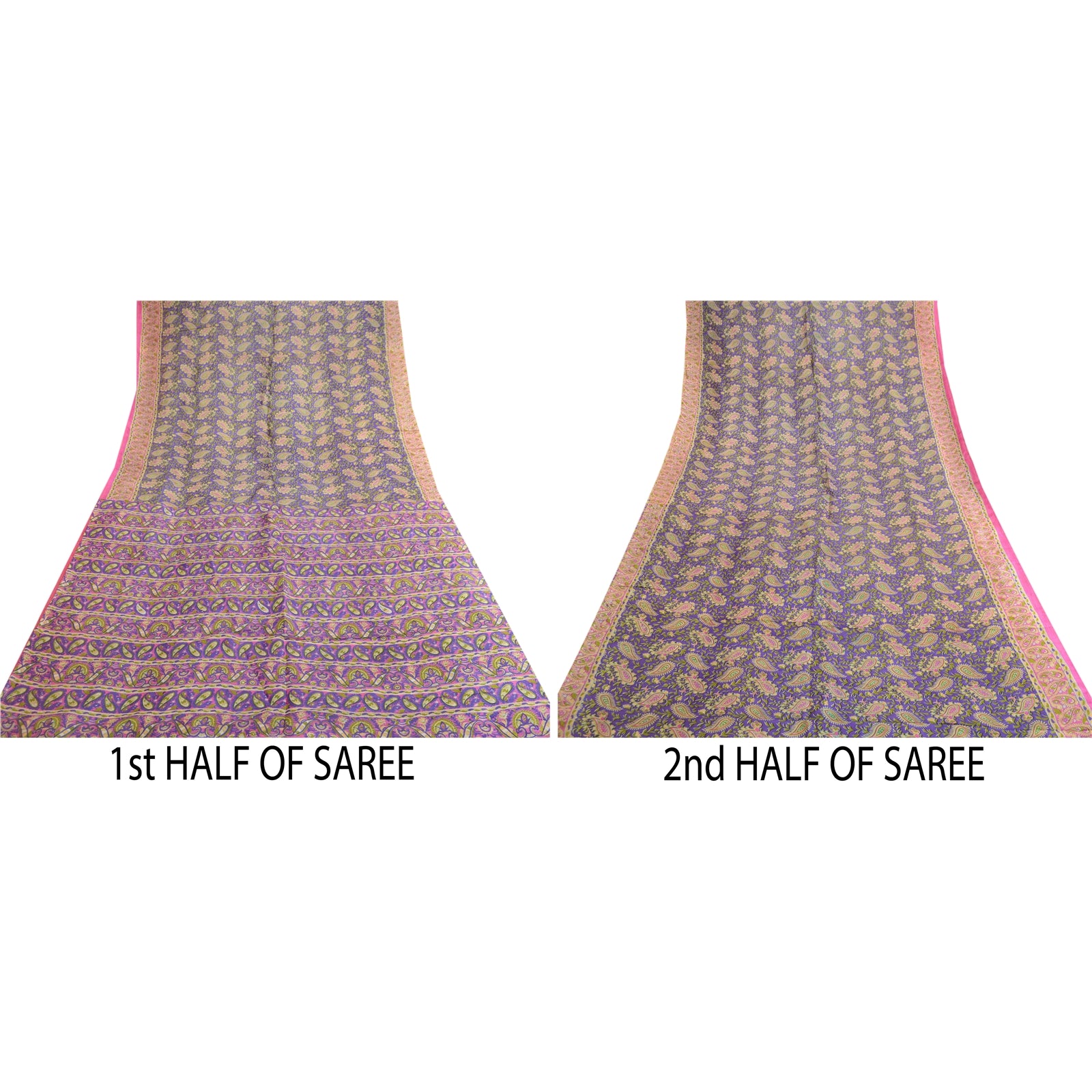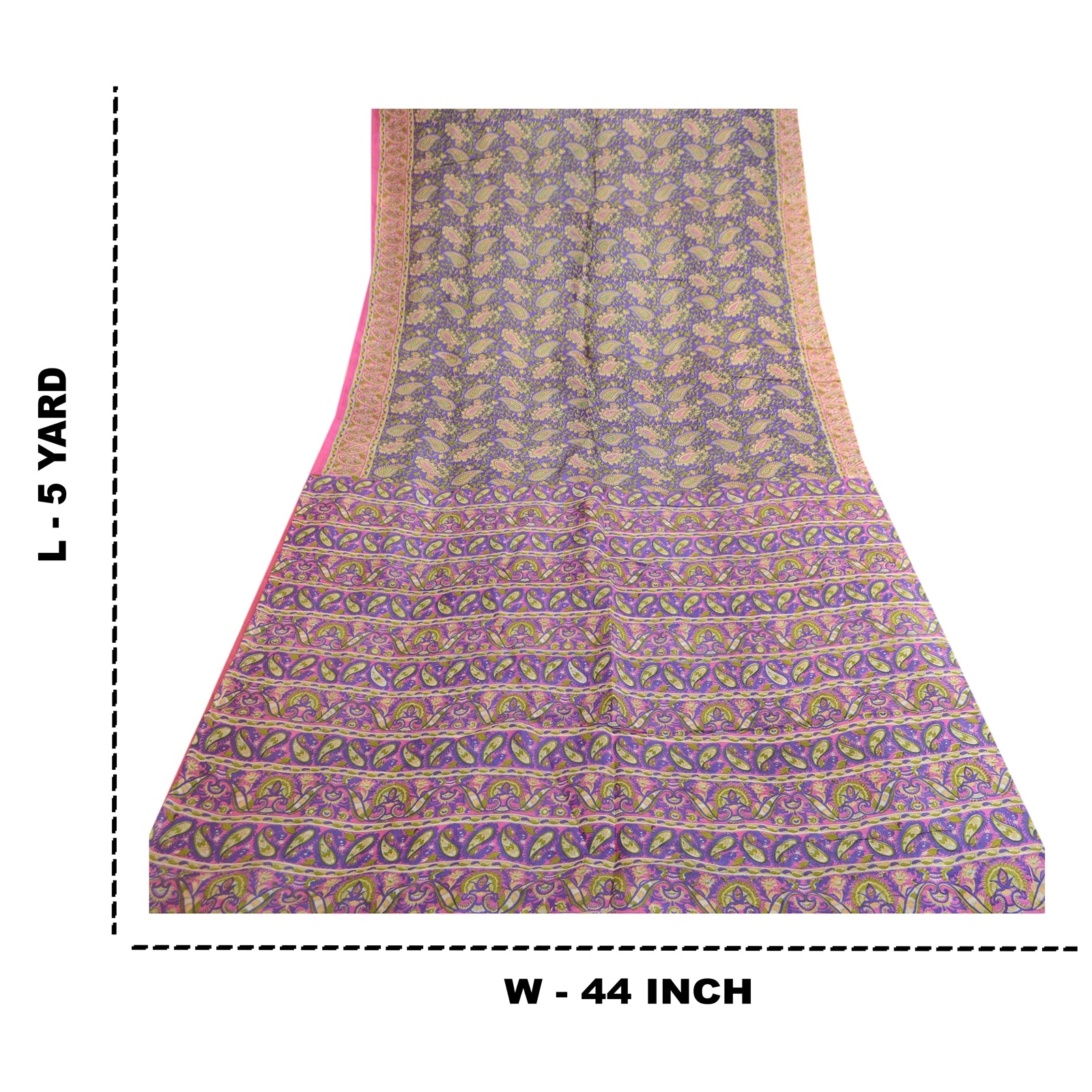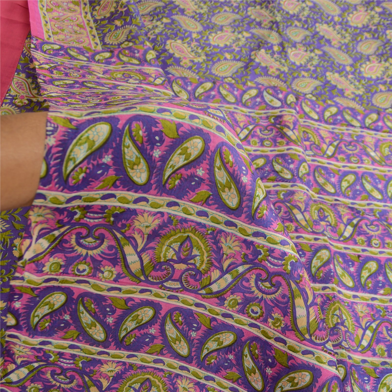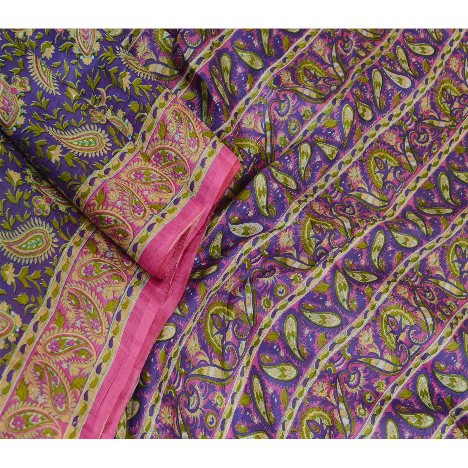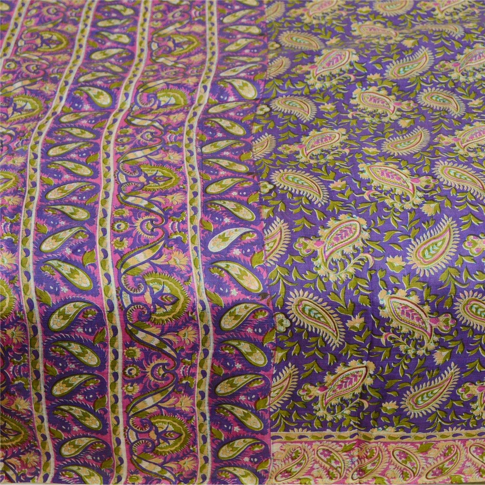 Sanskriti Vintage Sarees Purple Indian Printed Pure Silk Sari Soft Craft Sustainable Fabric