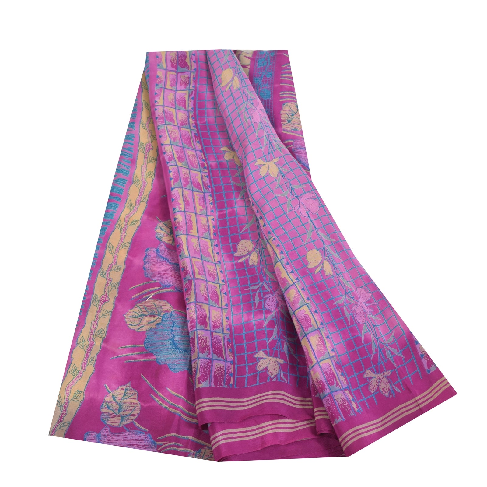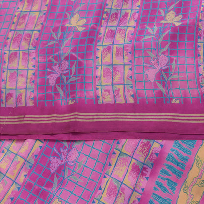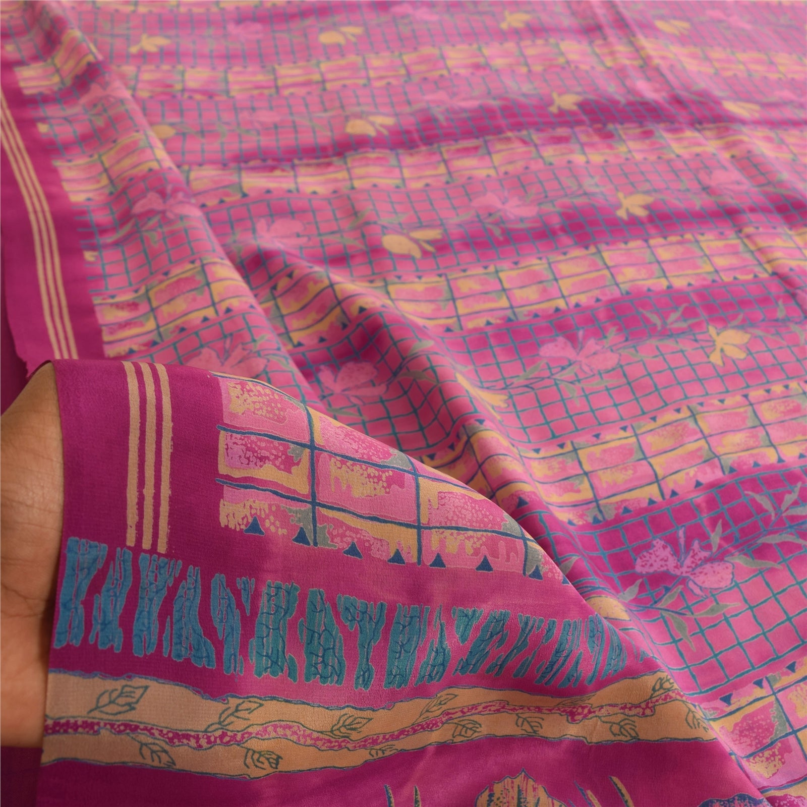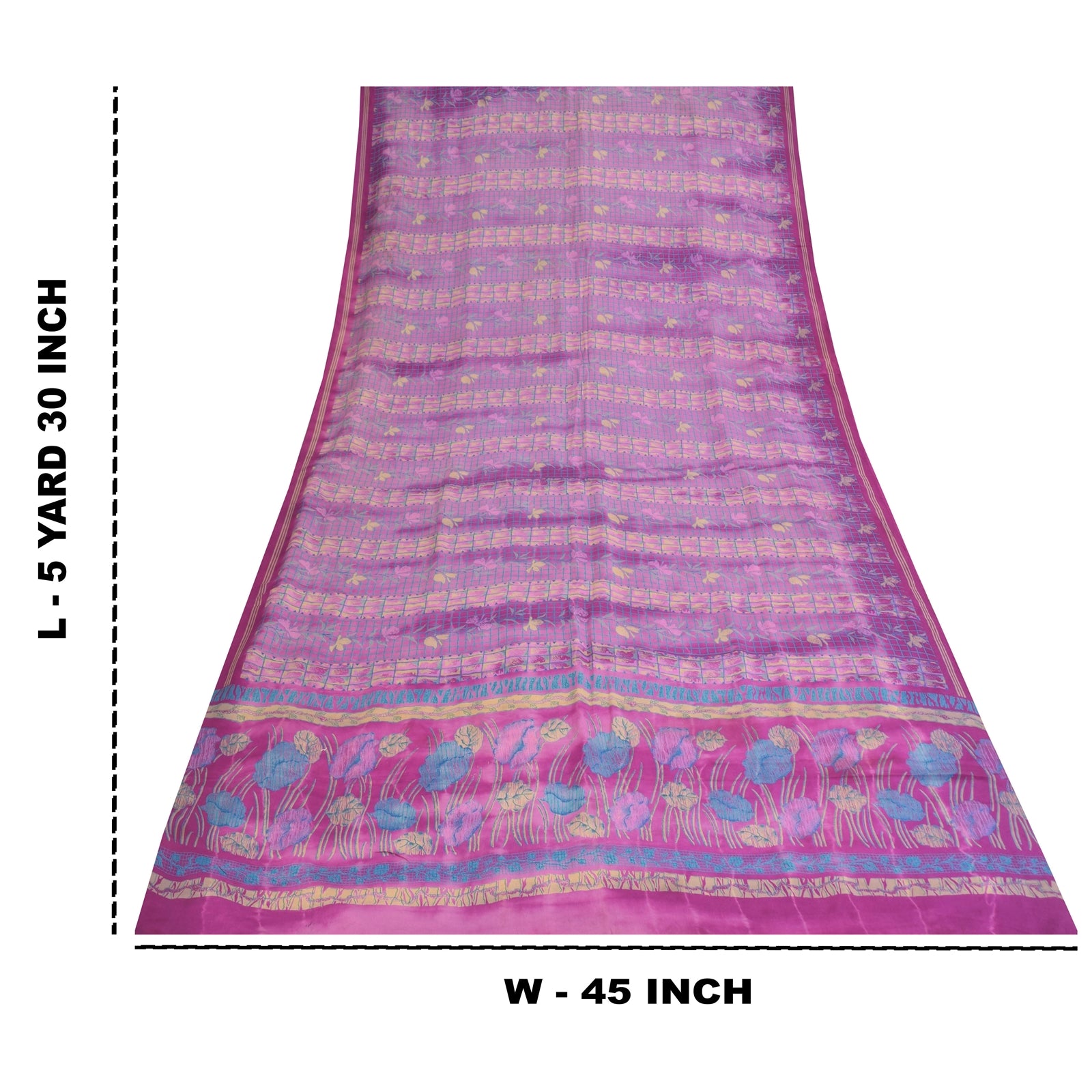 Sanskriti Vintage Sarees Purple Pure Crepe Silk Printed Sari 5+yd Craft Sustainable Fabric