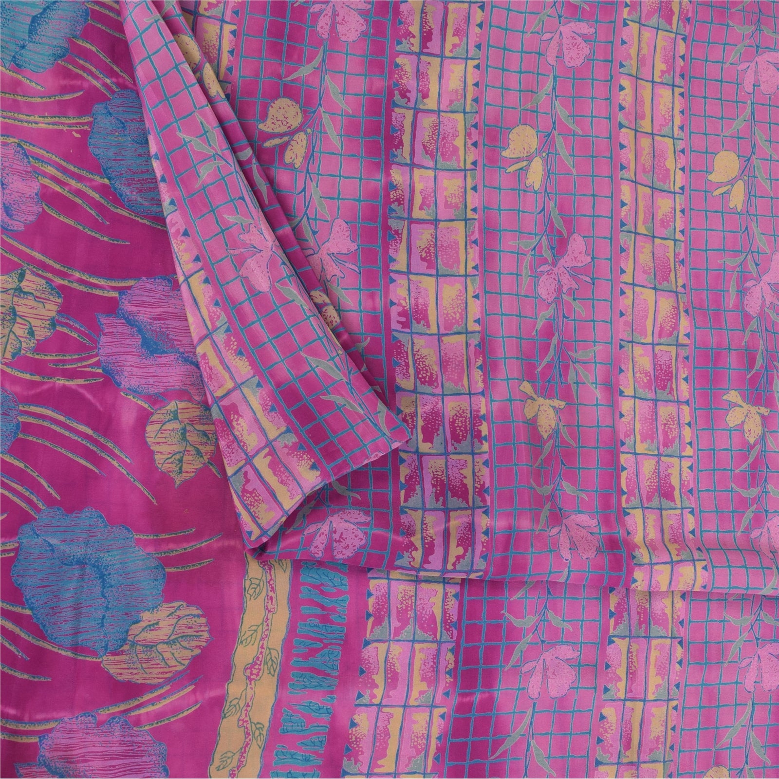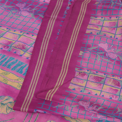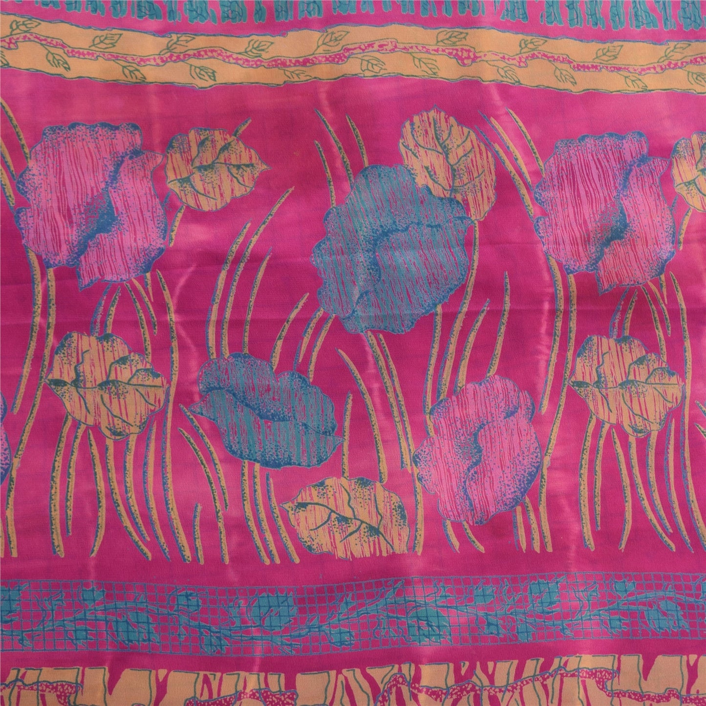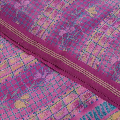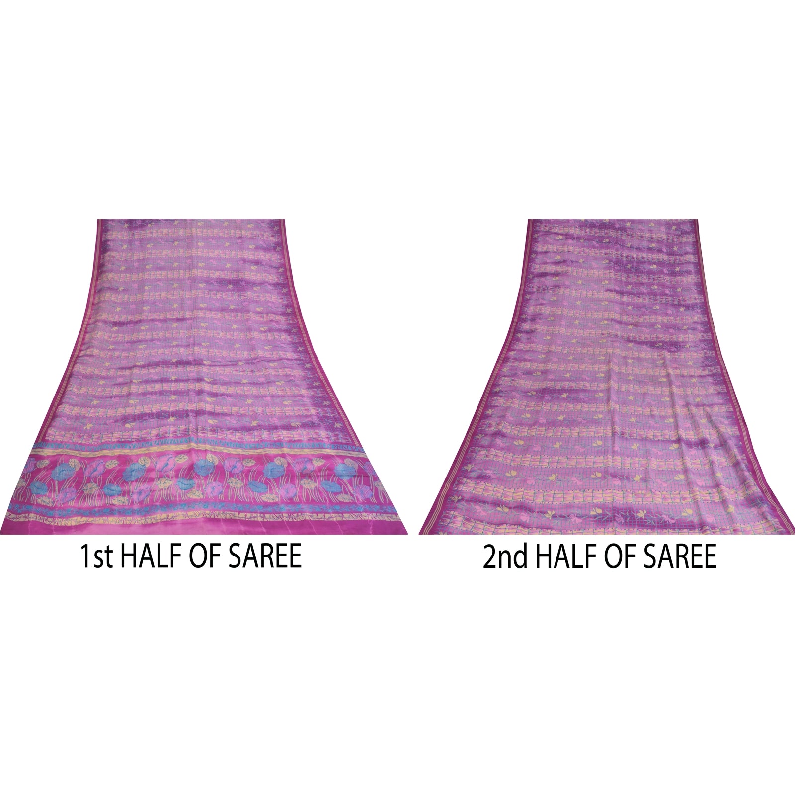 Sanskriti Vintage Sarees Purple Pure Crepe Silk Printed Sari 5+yd Craft Sustainable Fabric