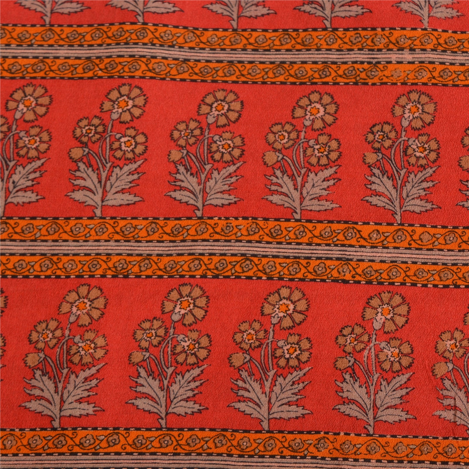 THE ITEM COLOR OR SHADE MAY BE DARKER OR LIGHTER THAN THE PICTURE.' Beautiful red colored pure crepe silk printed saree. Pallu & Border has printed floral design. Floral design in center part of saree. What is special about this saree? Fabulous design is really enhancing the beauty of the saree. This unique vintage saree can be used for various crafting ideas even if you don't want to use it as a sari. Design a dress, use it as window,dressing, upholstery, sarongs, throw, dress making and table linen much more. Let your creative juices flow and use this decorated Sustainable Fabric in multiple fashion. International buyers please note: Import duties, taxes, and charges are not included in the item price or postage cost. These charges are the buyer's responsibility. Please check with your country's customs office to determine what these additional costs will be prior to bidding or buying.Buyer will pay custom duty/tax. It is calculated and charged differently by every country. As a seller I do not have any control over it.VAT or sales tax is calculated by the platform at the time of checkout. Customs charge is payable at the time of delivery.
