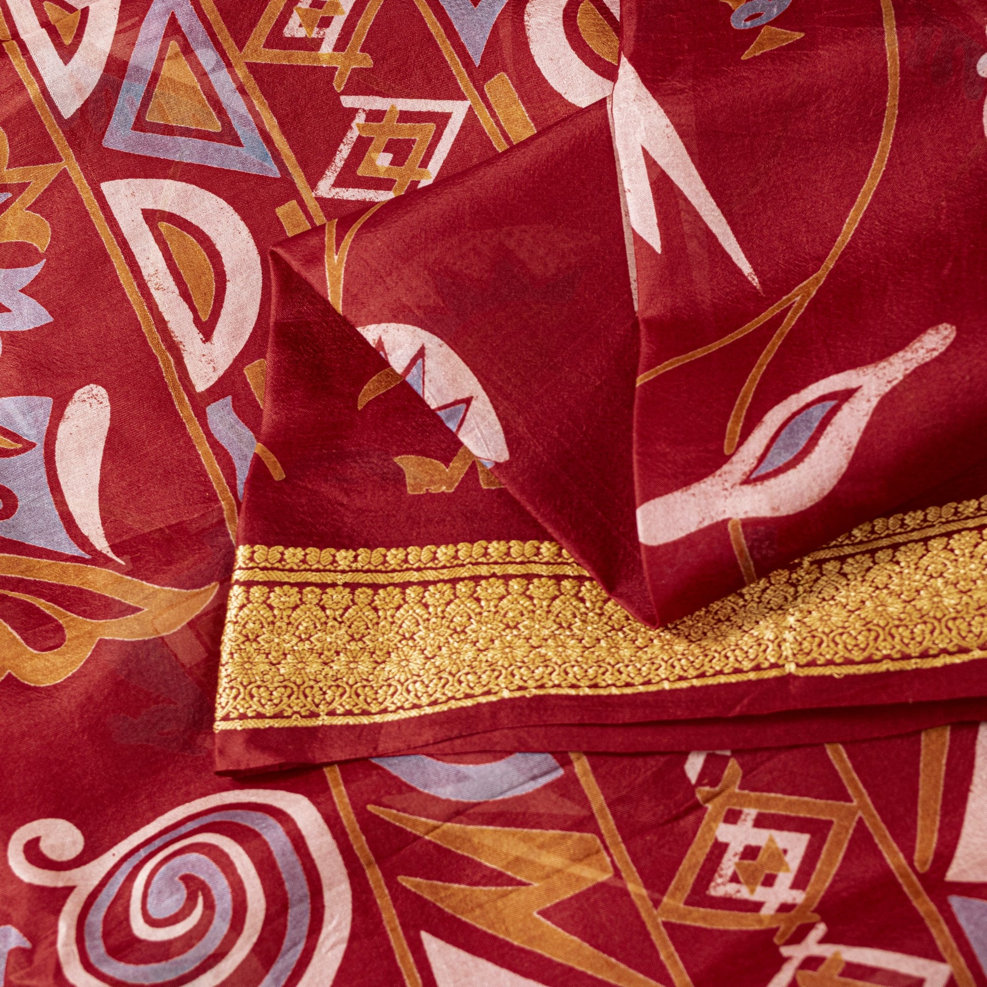 Sanskriti Vintage Sarees Red Animal Pure Silk Printed Sari 5yd Soft Craft Sustainable Fabric