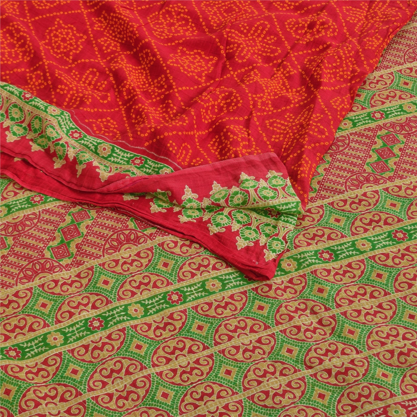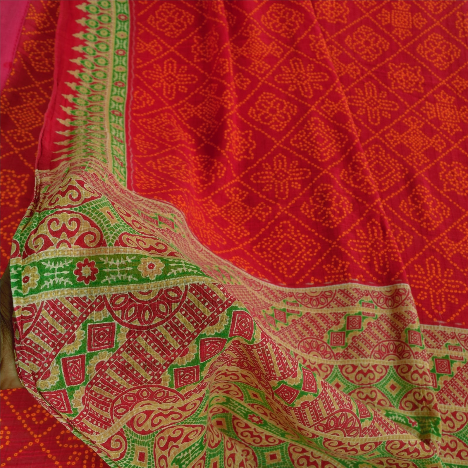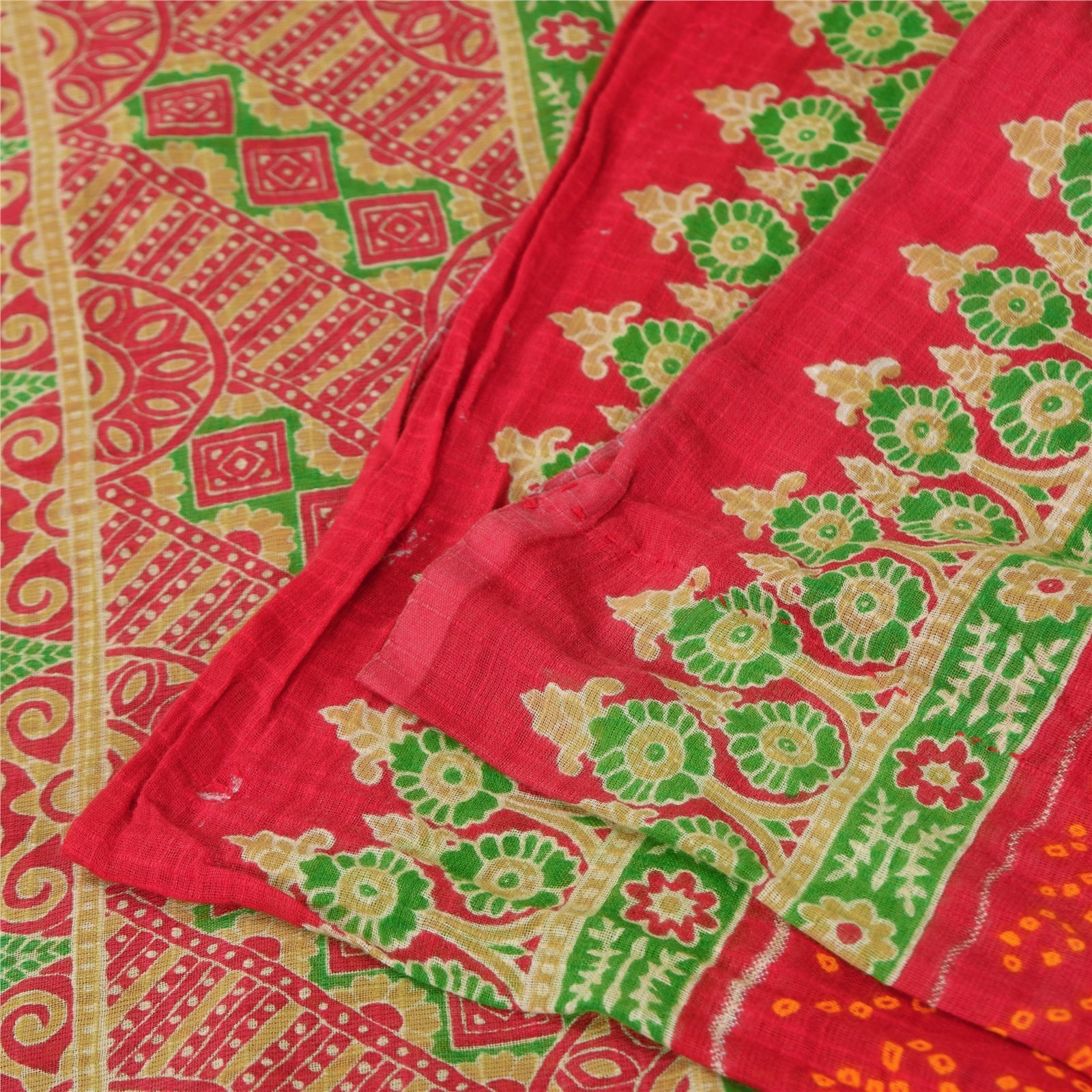 Sanskriti Vintage Sarees Red Bandhani Pure Cotton Printed Sari 5+yd Craft Sustainable Fabric