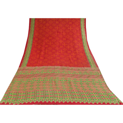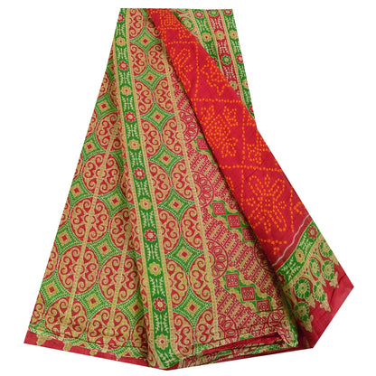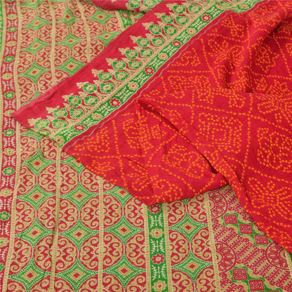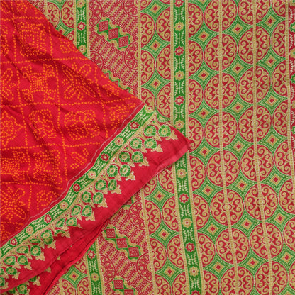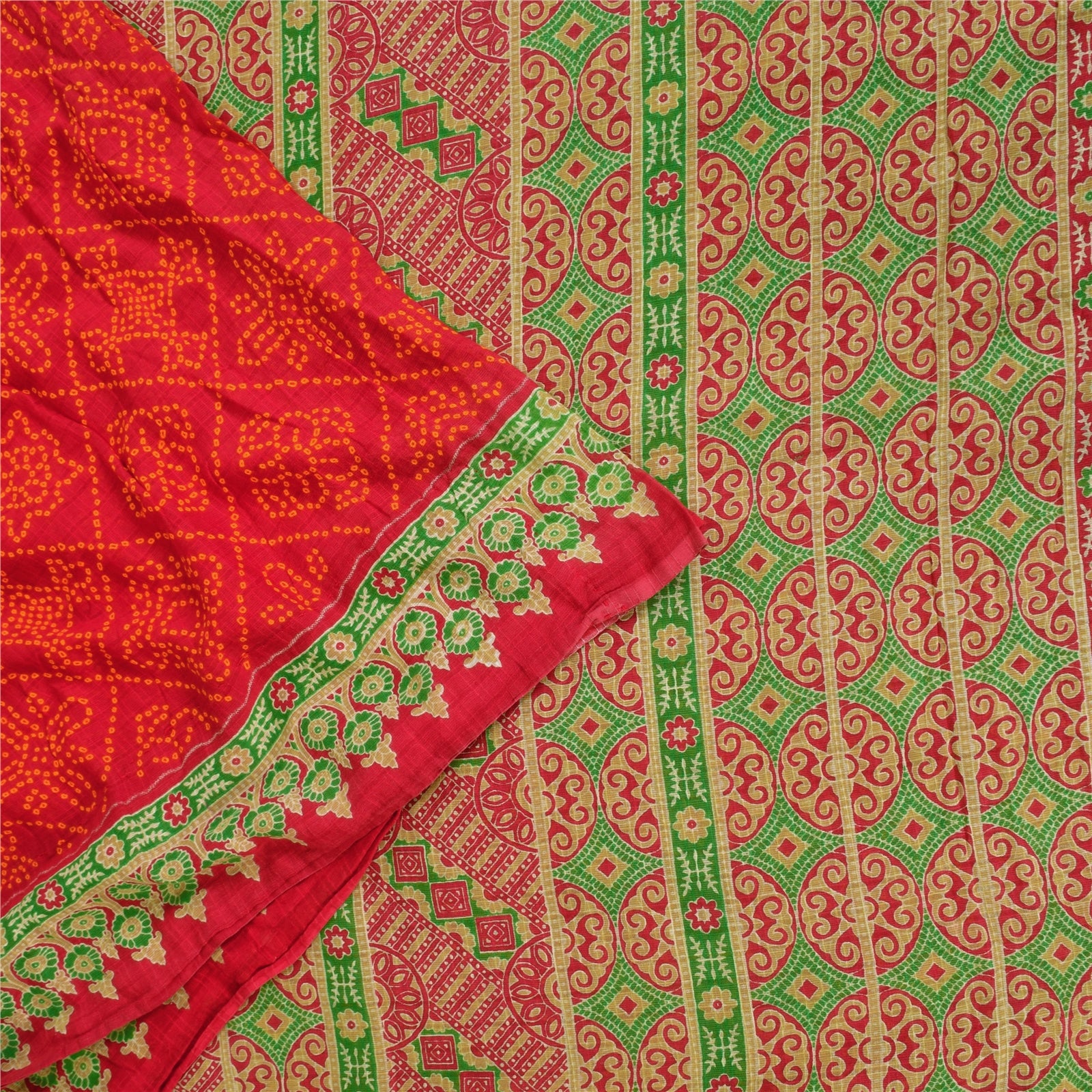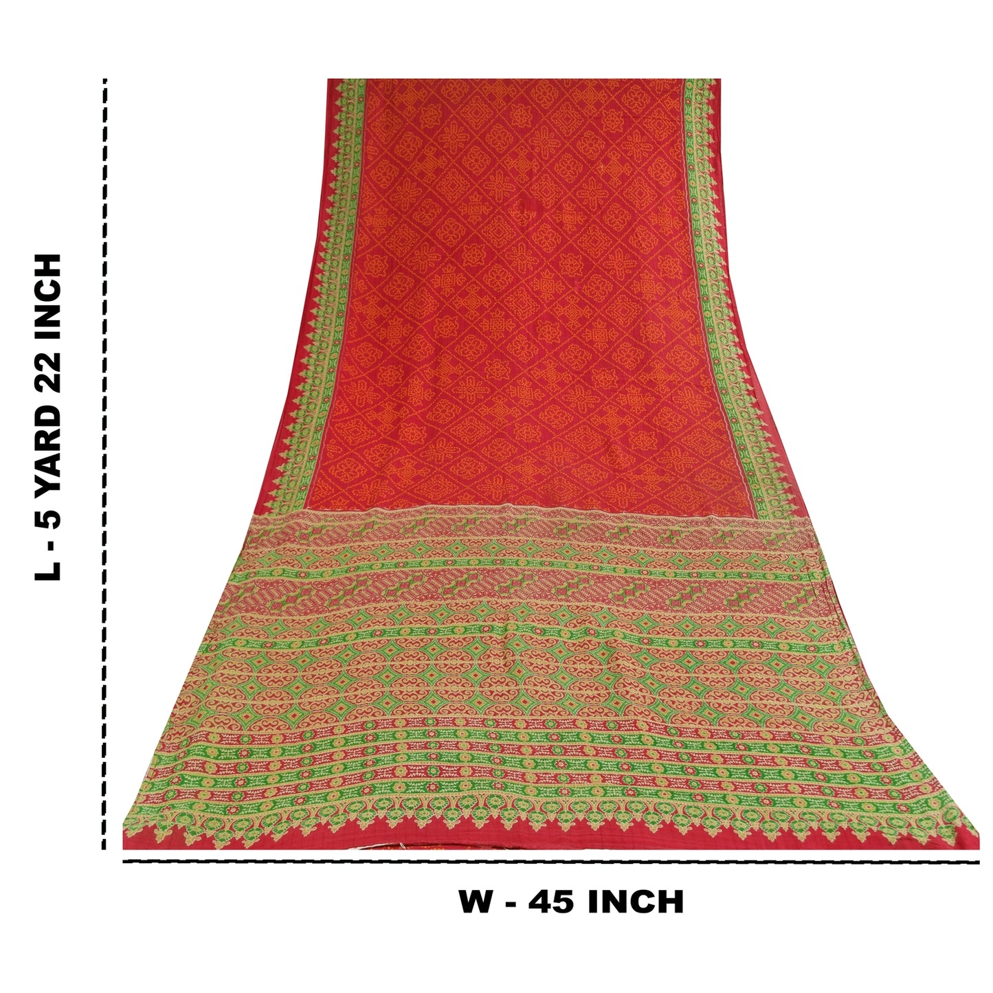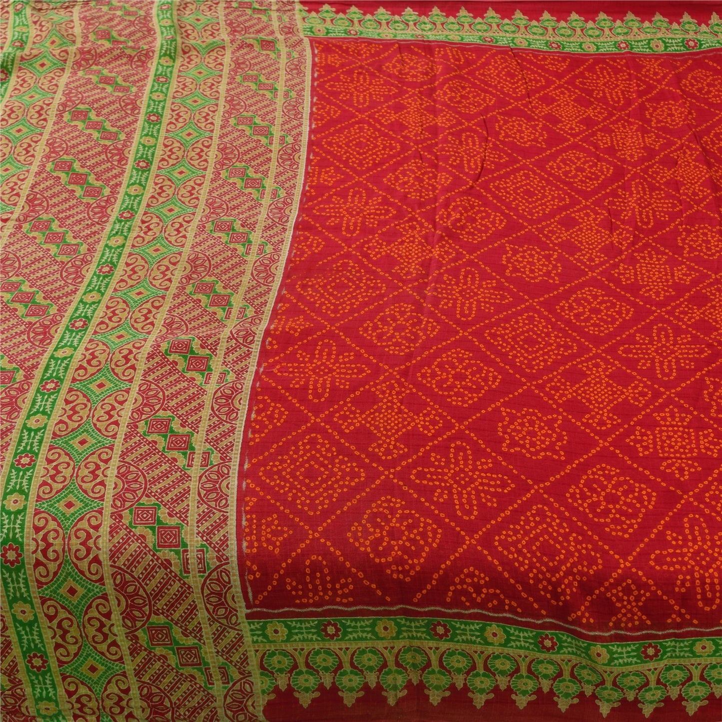 Sanskriti Vintage Sarees Red Bandhani Pure Cotton Printed Sari 5+yd Craft Sustainable Fabric