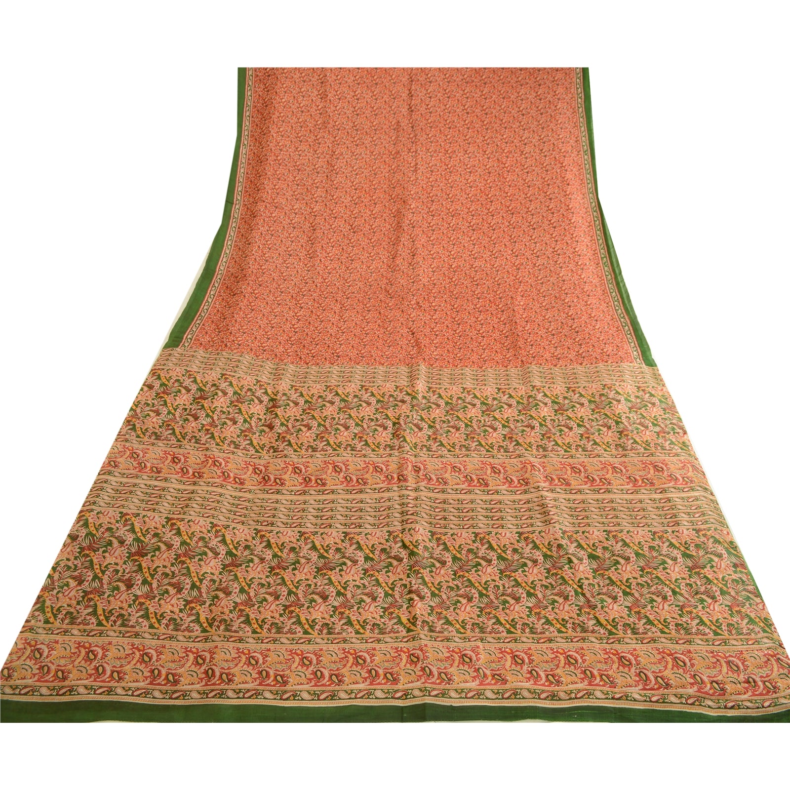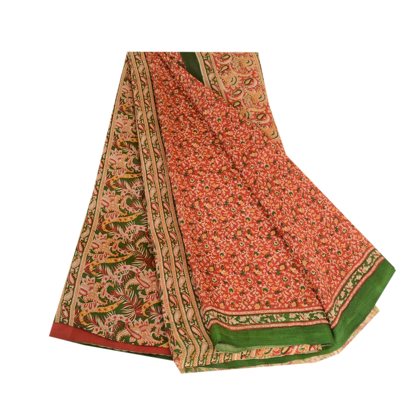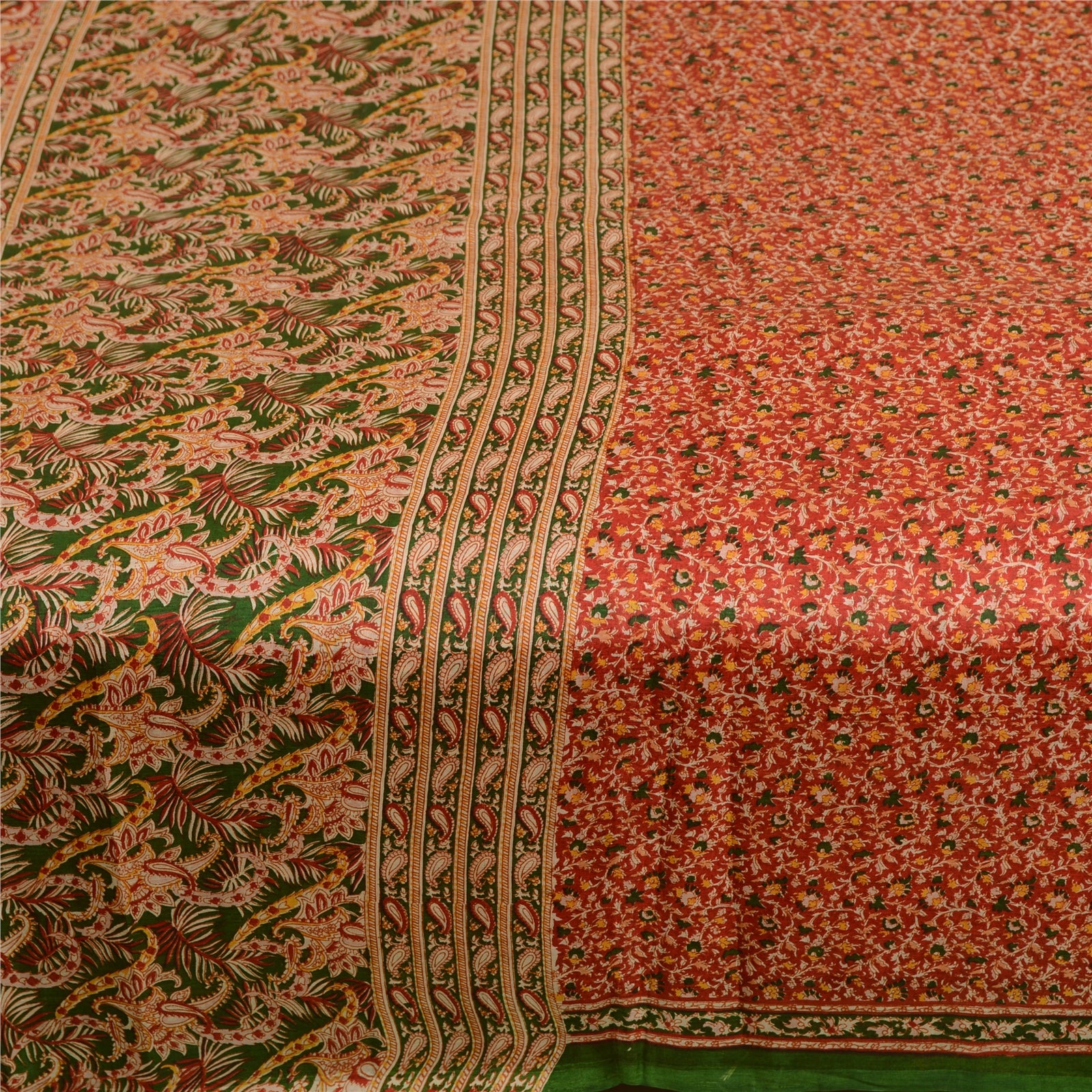 Sanskriti Vintage Sarees Red Indian Printed Pure Silk Sari 5yd Soft Craft Sustainable Fabric