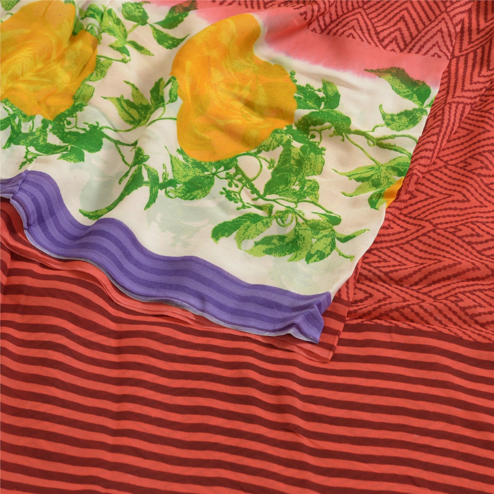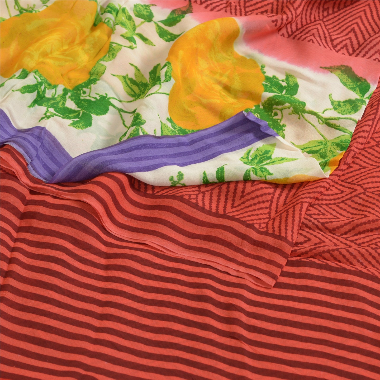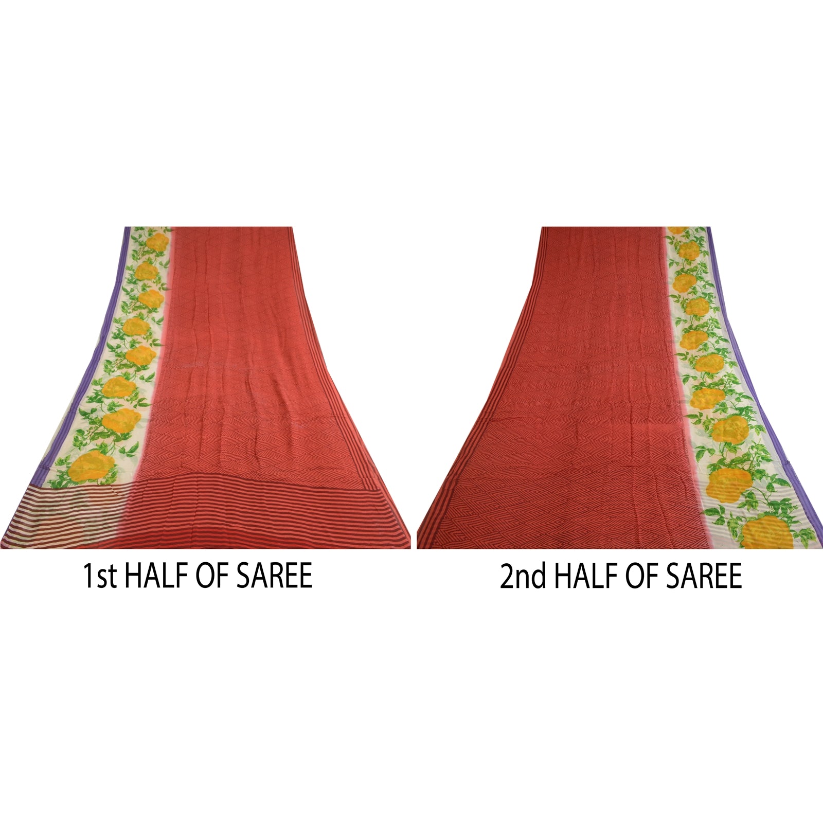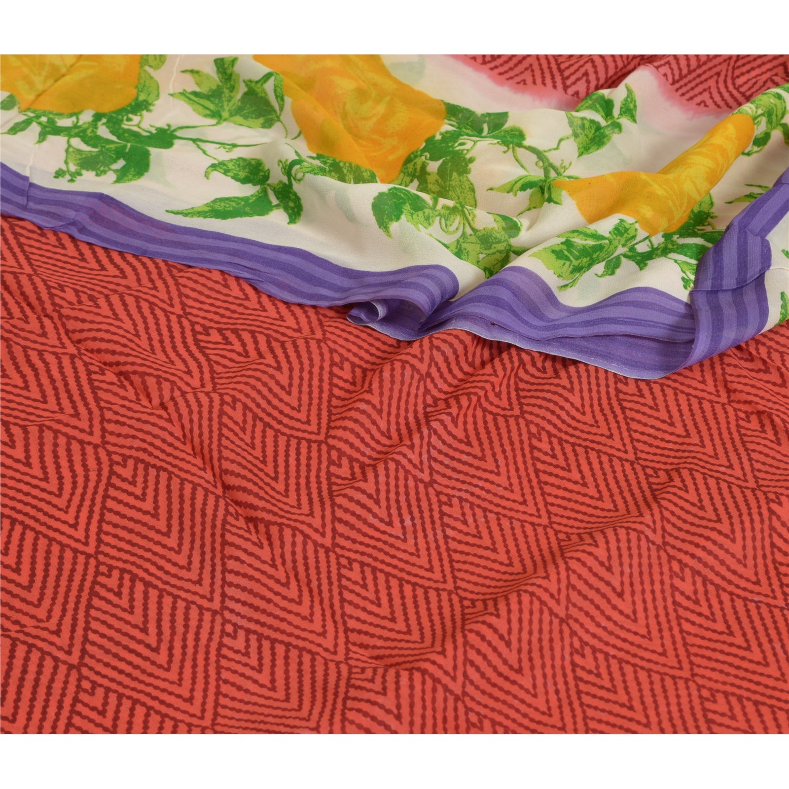 Sanskriti Vintage Sarees Red Pure Georgette Silk Printed Sari 5yd Craft Sustainable Fabric