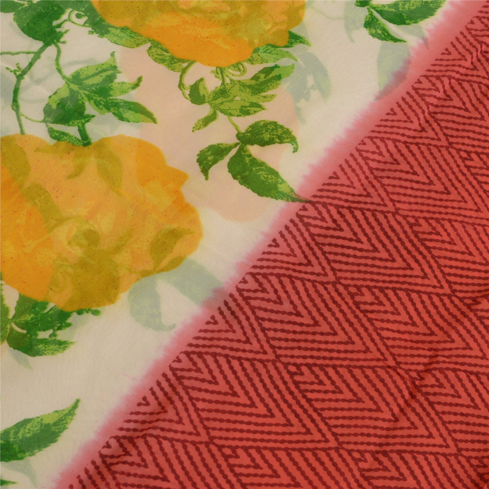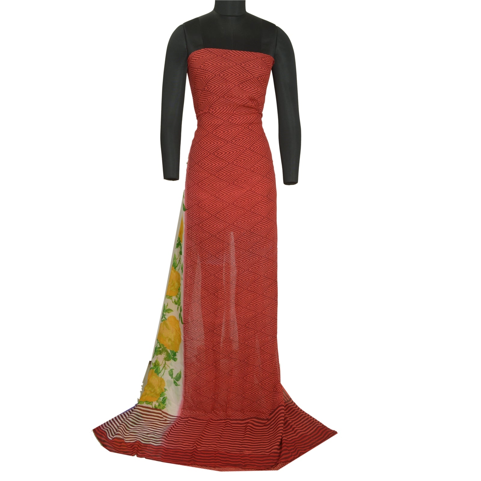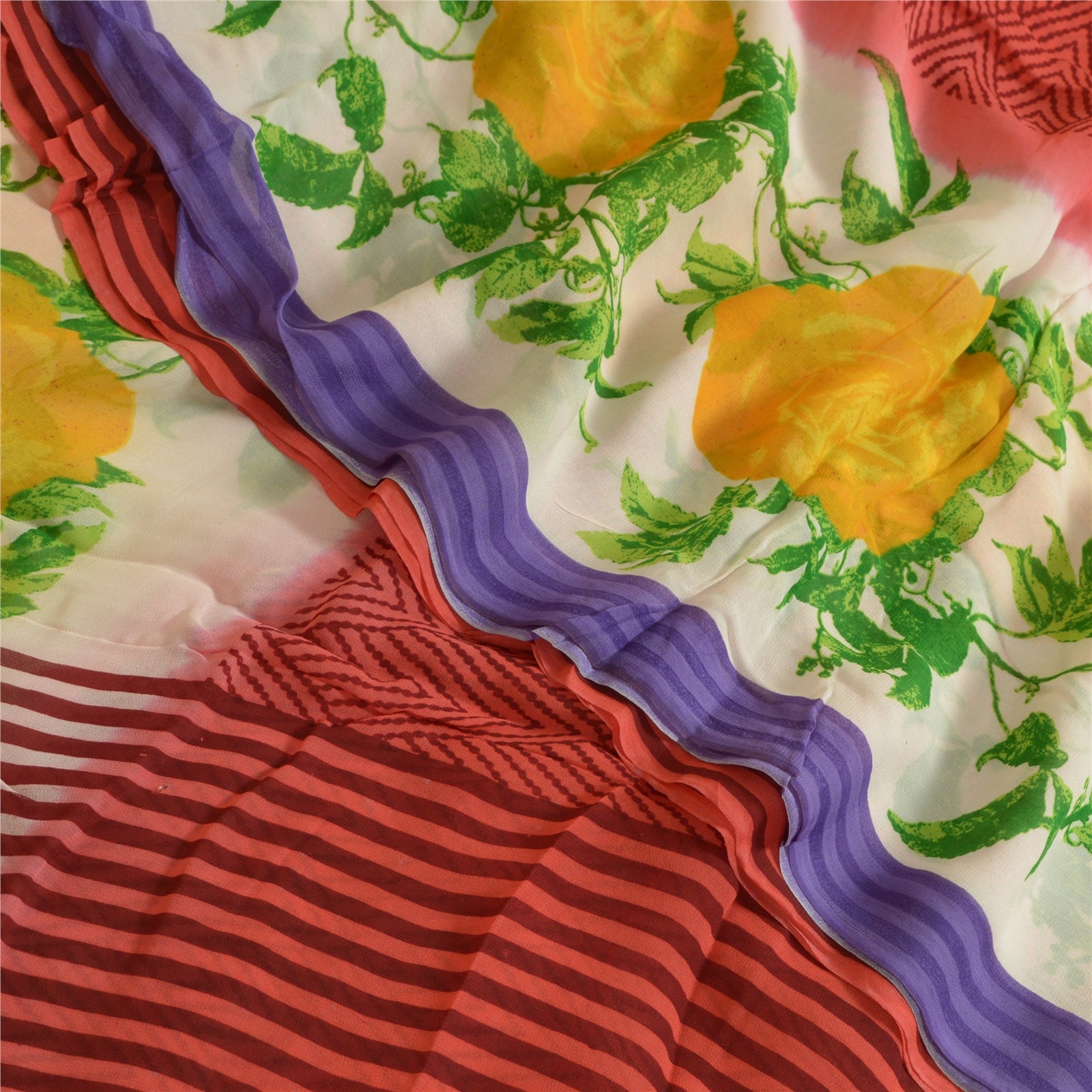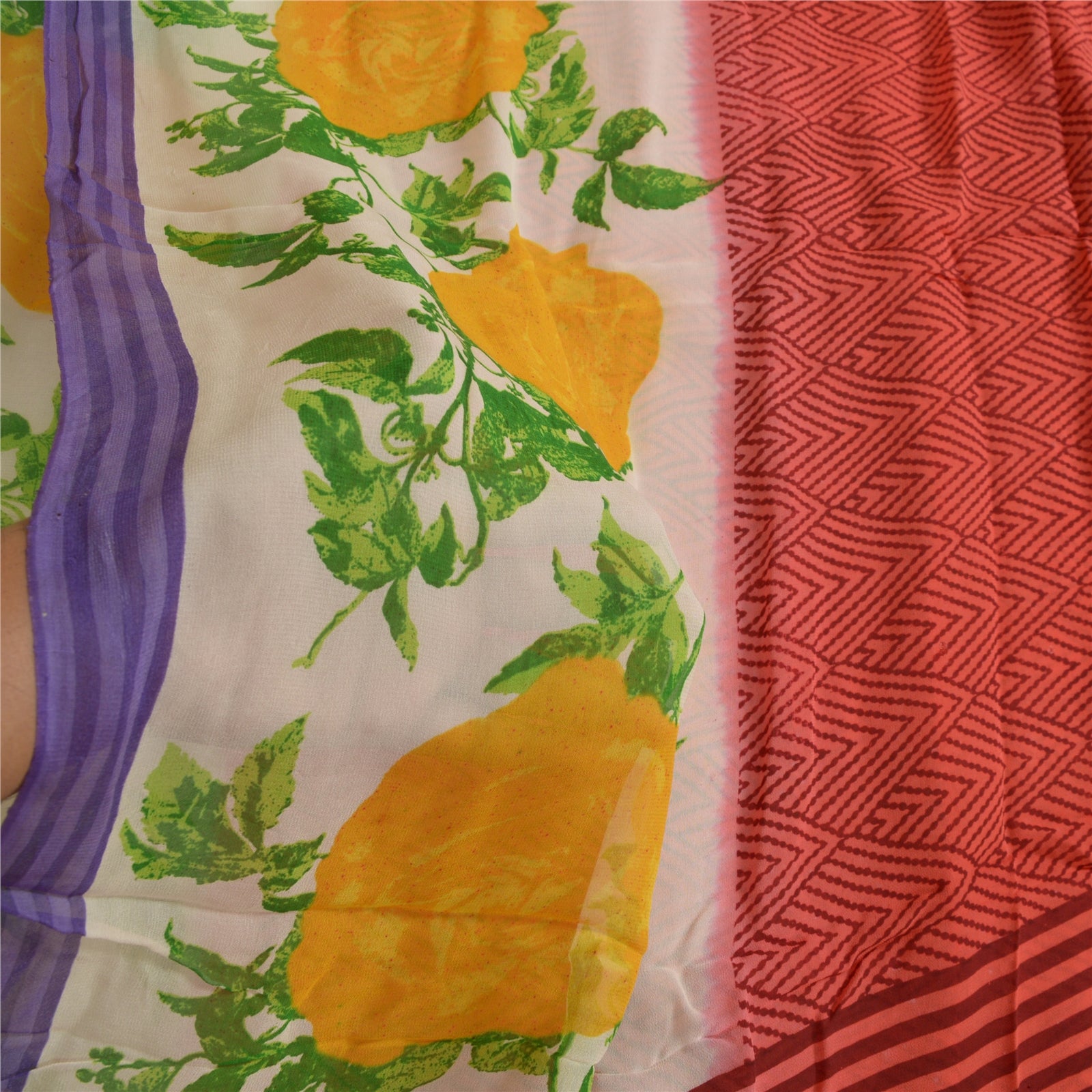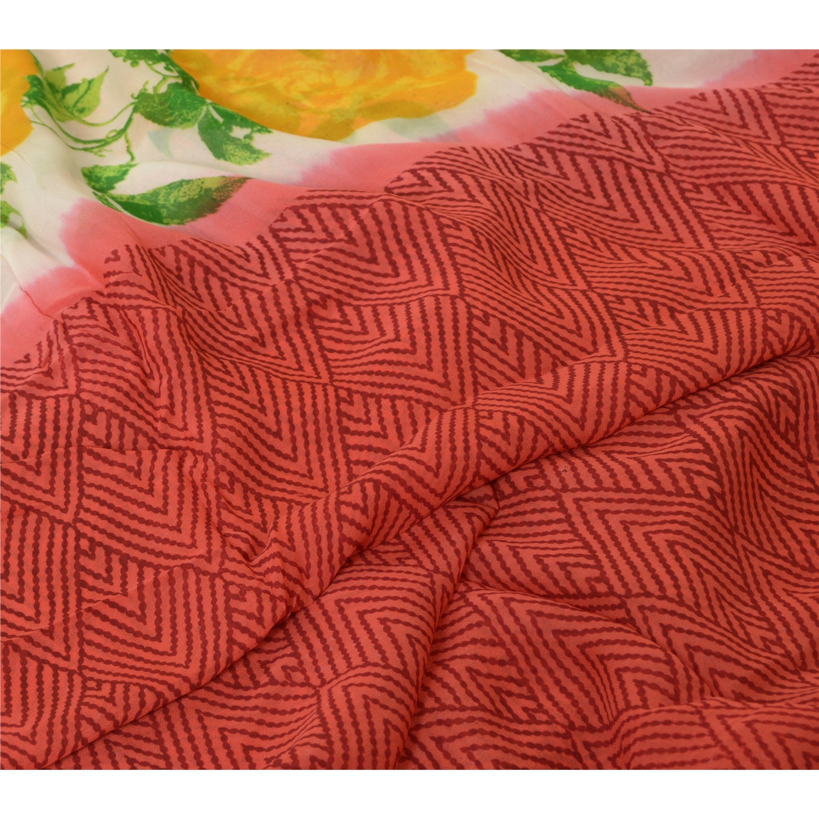 Sanskriti Vintage Sarees Red Pure Georgette Silk Printed Sari 5yd Craft Sustainable Fabric