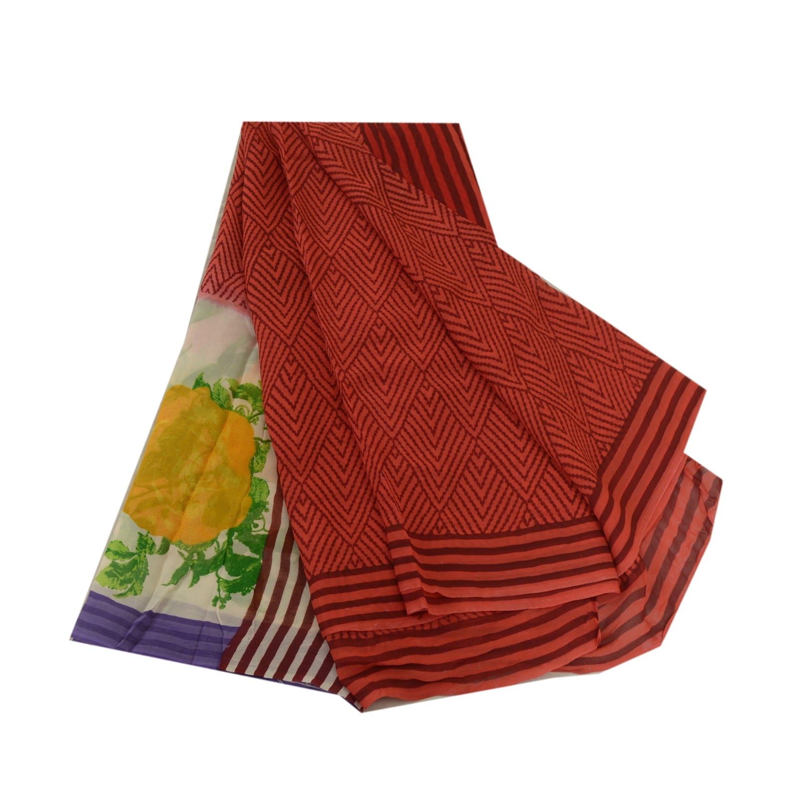 THE ITEM COLOR OR SHADE MAY BE DARKER OR LIGHTER THAN THE PICTURE.' Beautiful red colored pure georgette silk printed saree. Border has printed floral & lines design. Geometric design in center part of saree. Saree has mild stain on it. What is special about this saree? Brilliant design on soft Sustainable Fabric is really enhancing the beauty of the saree. This unique vintage saree can be used for various crafting ideas even if you don't want to use it as a sari. Design a dress, use it as a as window dressing, upholstery, sarongs, throw, dress making and table linen much more. Let your creative juices flow and use this decorated Sustainable Fabric in multiple fashion. International buyers please note: Import duties, taxes, and charges are not included in the item price or postage cost. These charges are the buyer's responsibility. Please check with your country's customs office to determine what these additional costs will be prior to bidding or buying.Buyer will pay custom duty/tax. It is calculated and charged differently by every country. As a seller I do not have any control over it. VAT or sales tax is calculated by the platform at the time of checkout. Customs charge is payable at the time of delivery.