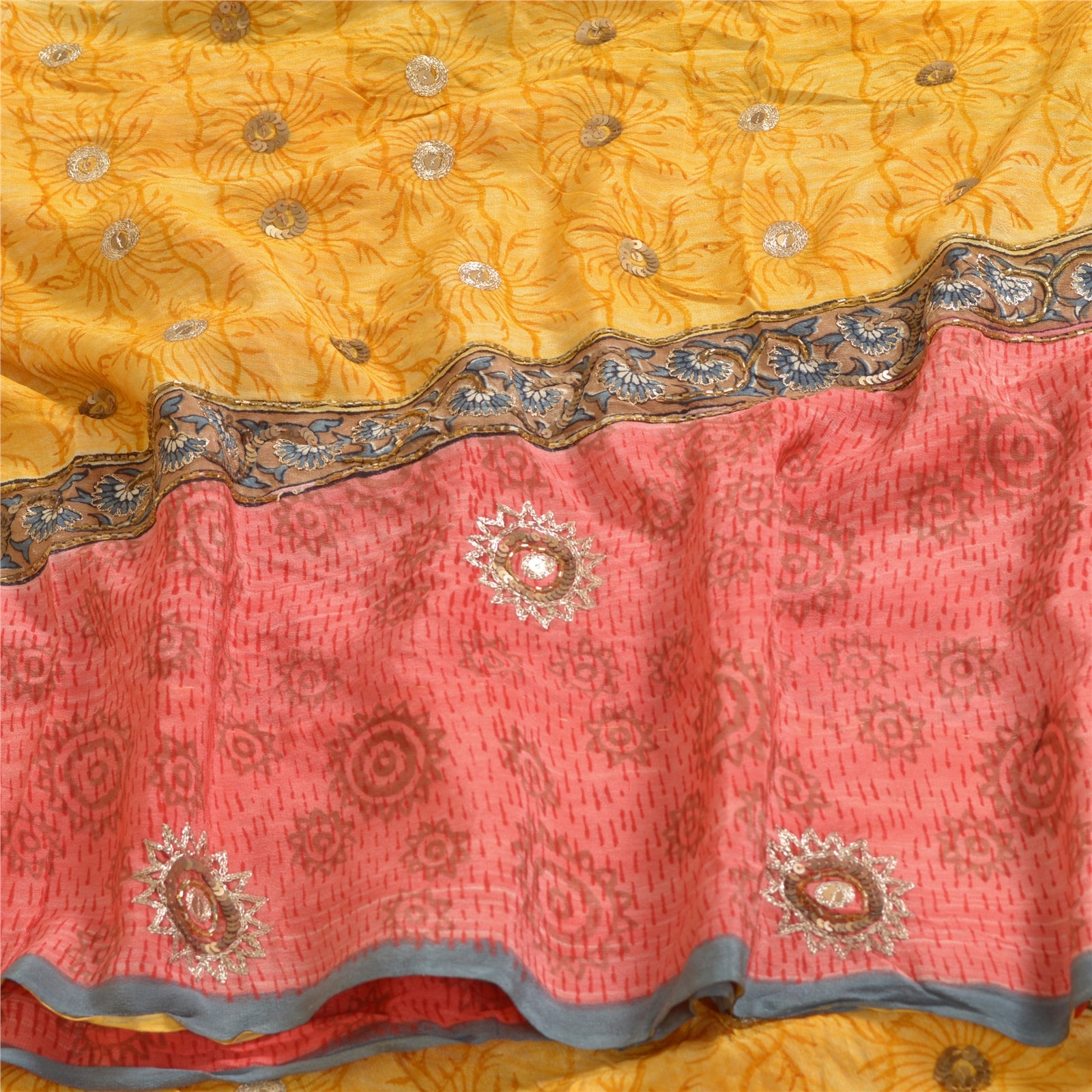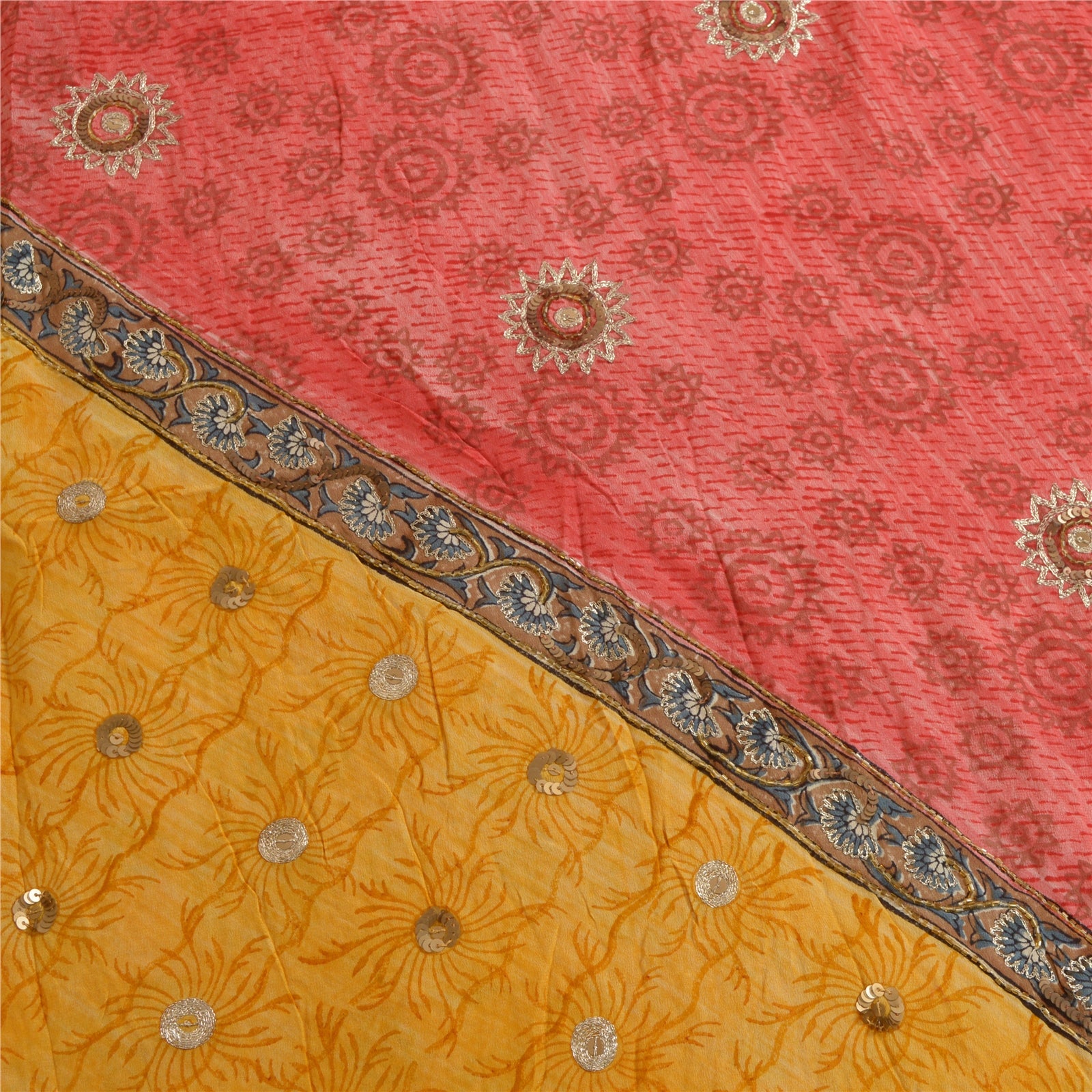 THE ITEM COLOR OR SHADE MAY BE DARKER OR LIGHTER THAN THE PICTURE.' Beautiful red & yellow colored pure crepe silk printed & hand embroidered saree. Pallu & Border has printed floral design with golden zari, sequins & yellow glass beads work. Similar work in center part of saree. What is special about this saree? Fabulous design is really enhancing the beauty of the saree. This unique vintage saree can be used for various crafting ideas even if you don't want to use it as a sari. Design a dress, use it as window,dressing, upholstery, sarongs, throw, dress making and table linen much more. Let your creative juices flow and use this decorated Sustainable Fabric in multiple fashion. International buyers please note: Import duties, taxes, and charges are not included in the item price or postage cost. These charges are the buyer's responsibility. Please check with your country's customs office to determine what these additional costs will be prior to bidding or buying.Buyer will pay custom duty/tax. It is calculated and charged differently by every country. As a seller I do not have any control over it.VAT or sales tax is calculated by the platform at the time of checkout. Customs charge is payable at the time of delivery.
