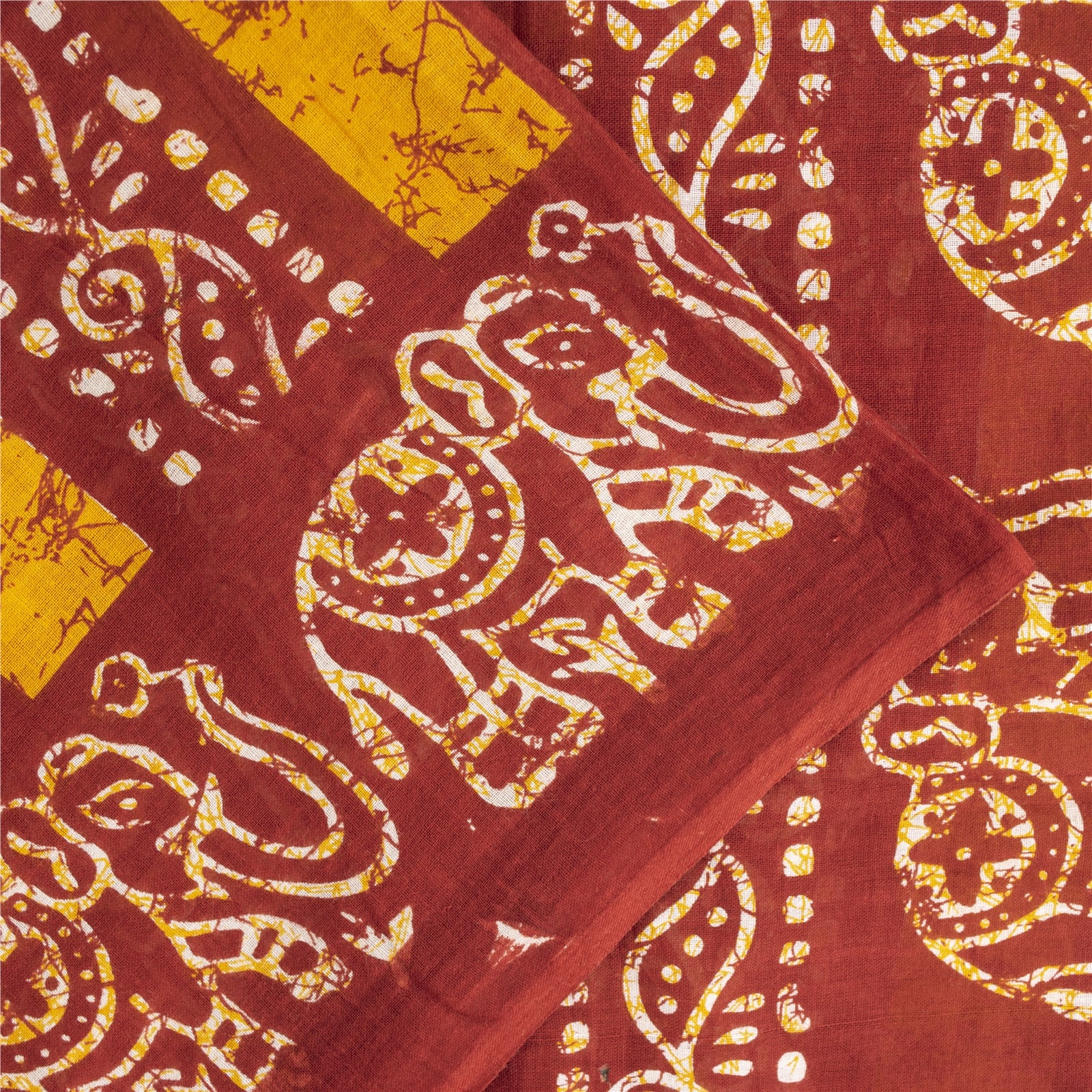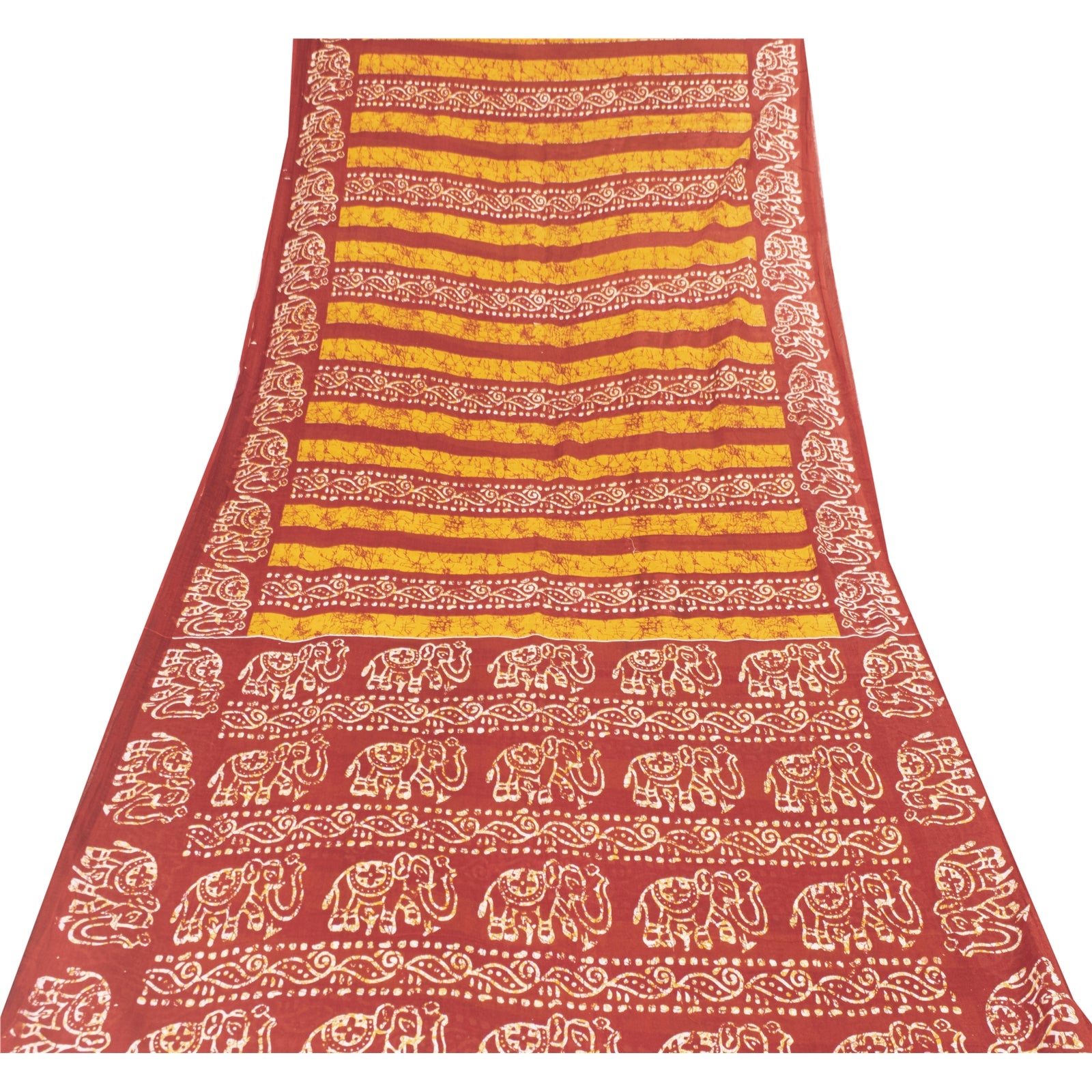 Sanskriti Vintage Sarees Red & Yellow Pure Cotton Batik Printed Sari 5+yd Fabric