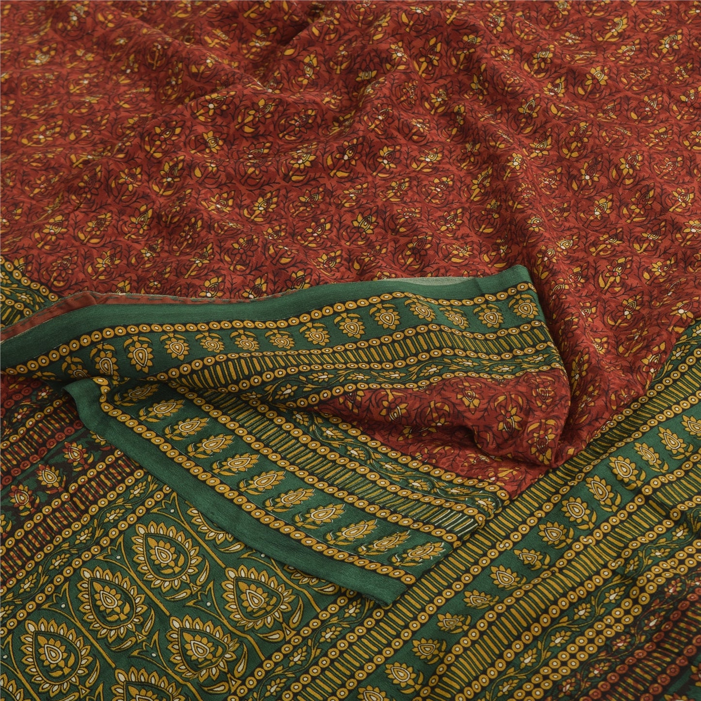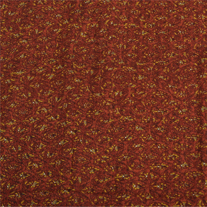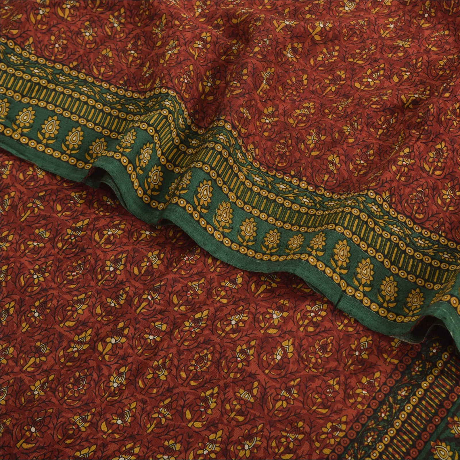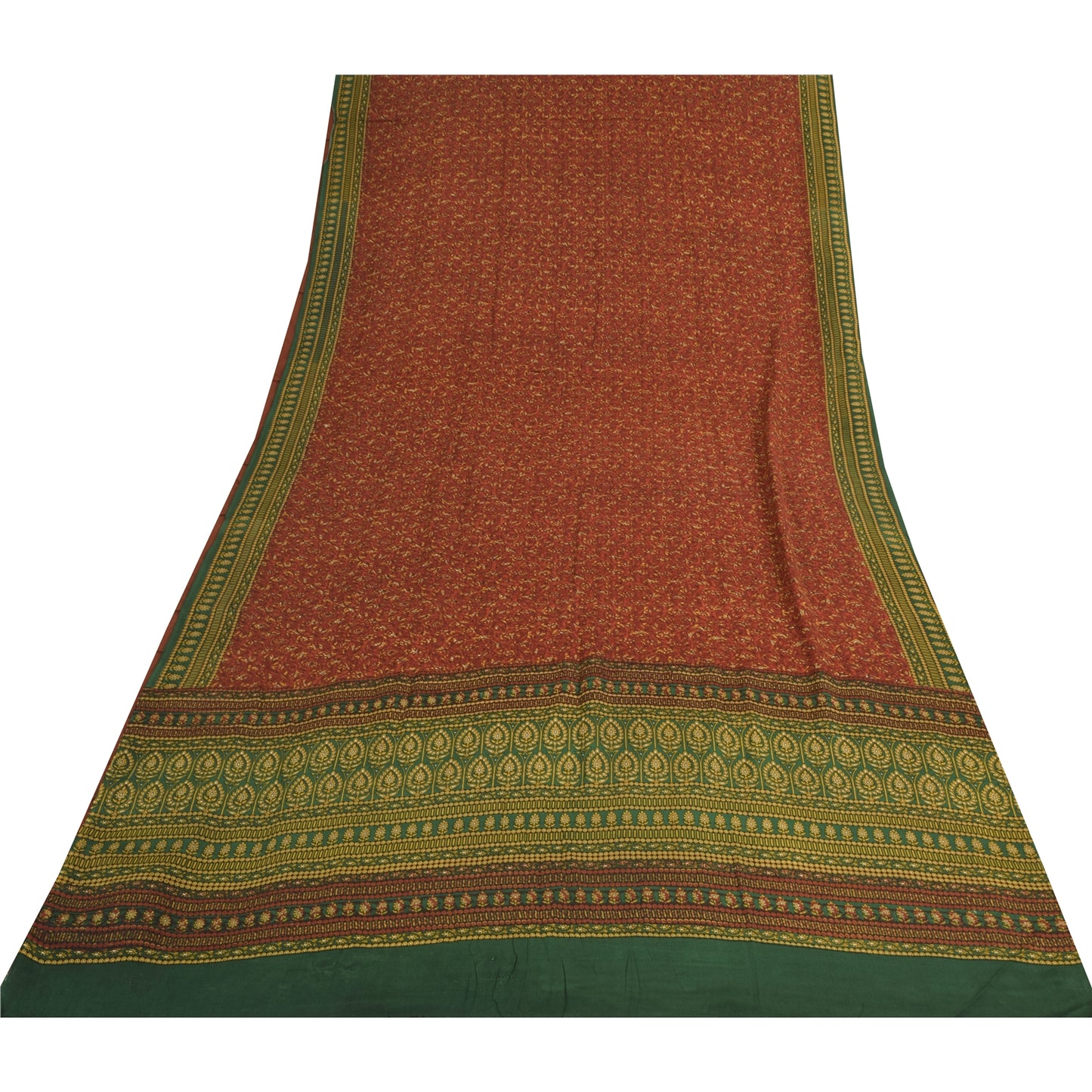 Sanskriti Vintage Sarees Rusty Orange Pure Crepe Printed Sari 5yd Craft Sustainable Fabric