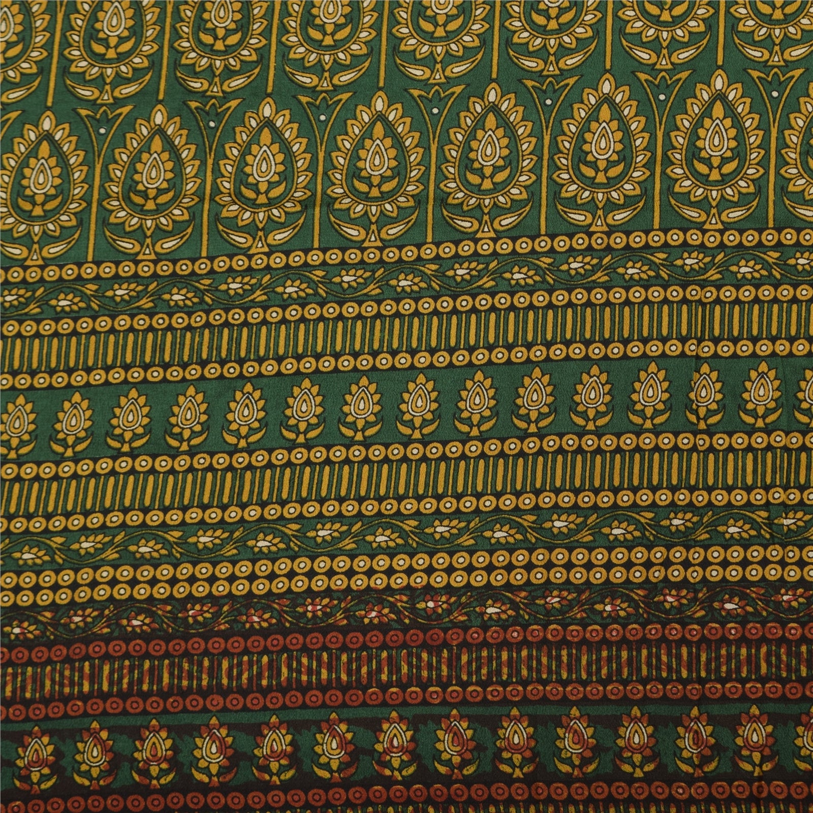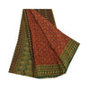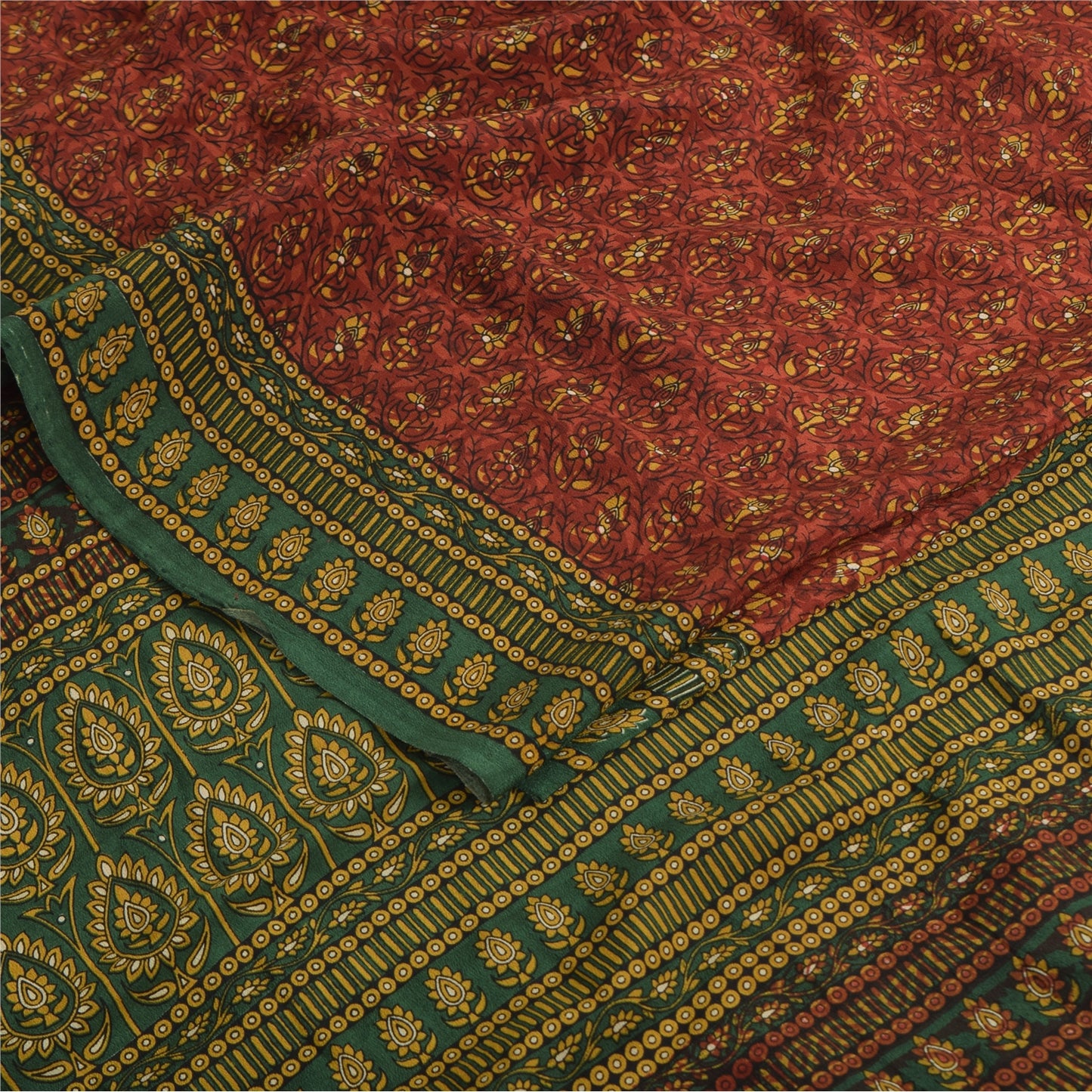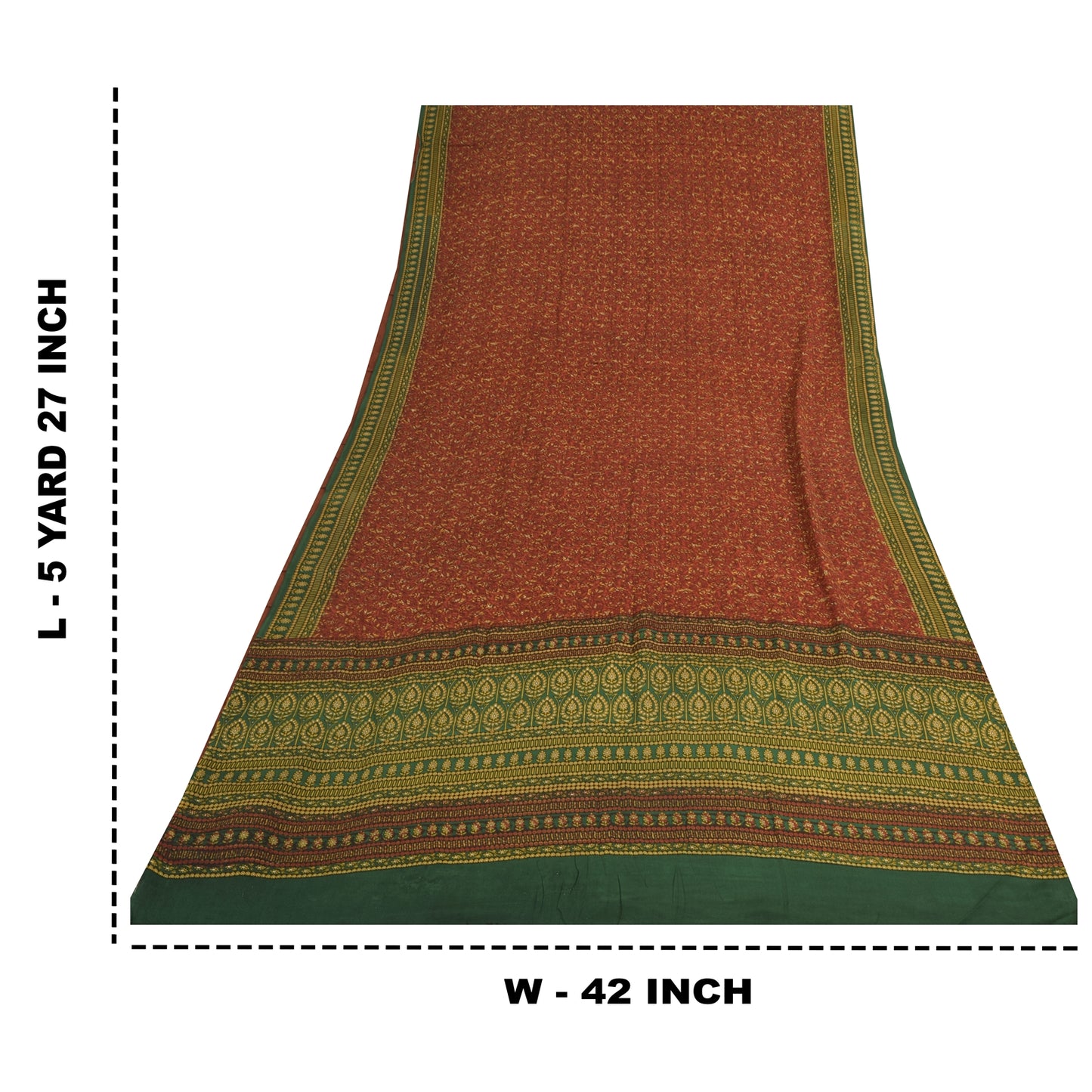 Sanskriti Vintage Sarees Rusty Orange Pure Crepe Printed Sari 5yd Craft Sustainable Fabric