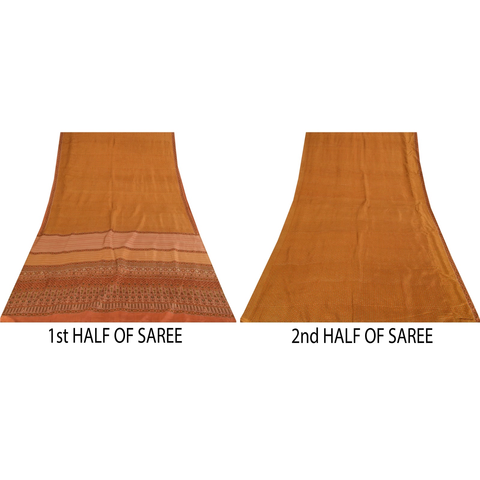 Sanskriti Vintage Sarees Saffron Indian Pure Silk Printed Sari 6+yd Craft Fabric