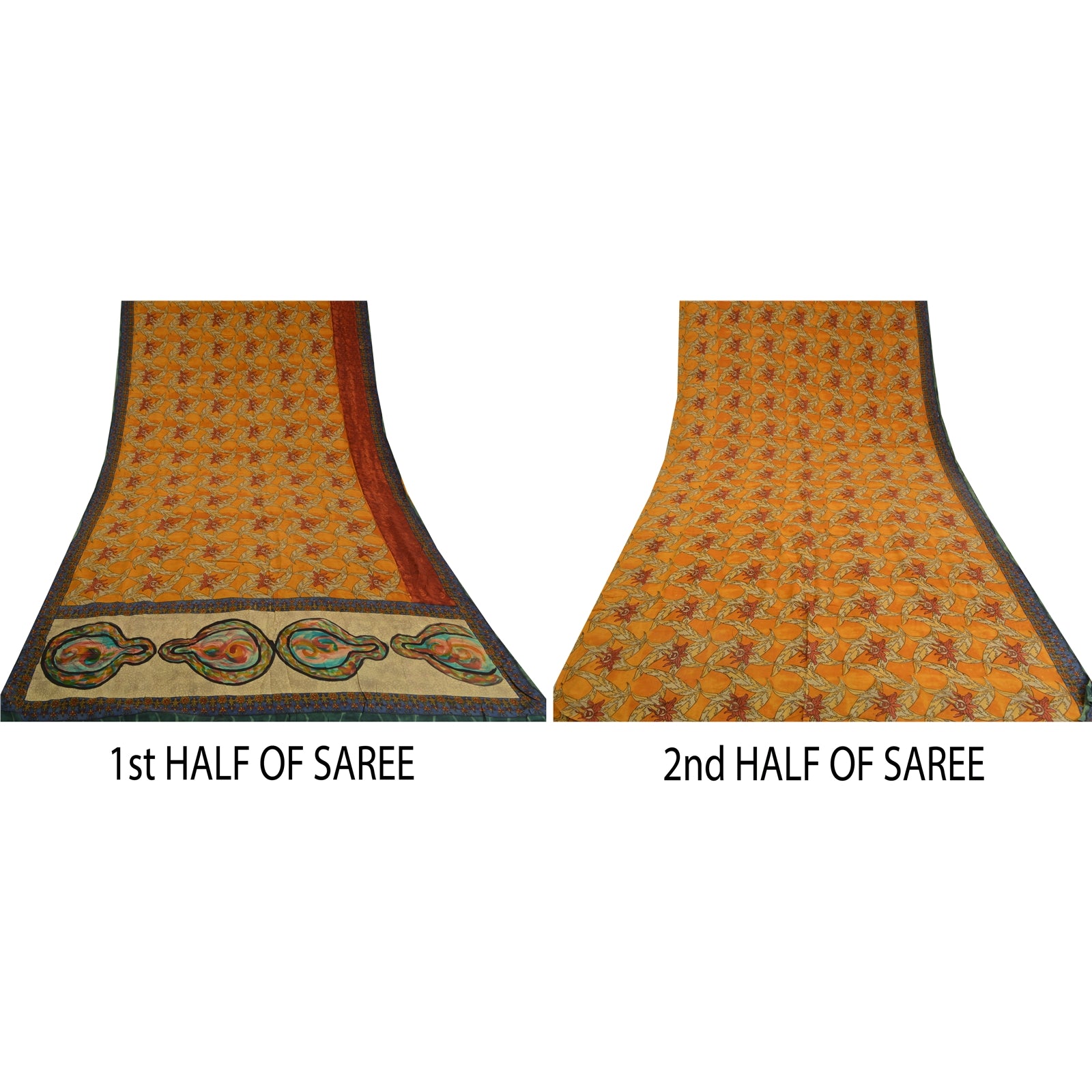 THE ITEM COLOR OR SHADE MAY BE DARKER OR LIGHTER THAN THE PICTURE.' Beautiful saffron colored pure crepe silk printed saree. Pallu & Border has printed floral design. Similar design in center part of saree. What is special about this saree? Fabulous design is really enhancing the beauty of the saree. This unique vintage saree can be used for various crafting ideas even if you don't want to use it as a sari. Design a dress, use it as window,dressing, upholstery, sarongs, throw, dress making and table linen much more. Let your creative juices flow and use this decorated Sustainable Fabric in multiple fashion. International buyers please note: Import duties, taxes, and charges are not included in the item price or postage cost. These charges are the buyer's responsibility. Please check with your country's customs office to determine what these additional costs will be prior to bidding or buying.Buyer will pay custom duty/tax. It is calculated and charged differently by every country. As a seller I do not have any control over it.VAT or sales tax is calculated by the platform at the time of checkout. Customs charge is payable at the time of delivery.