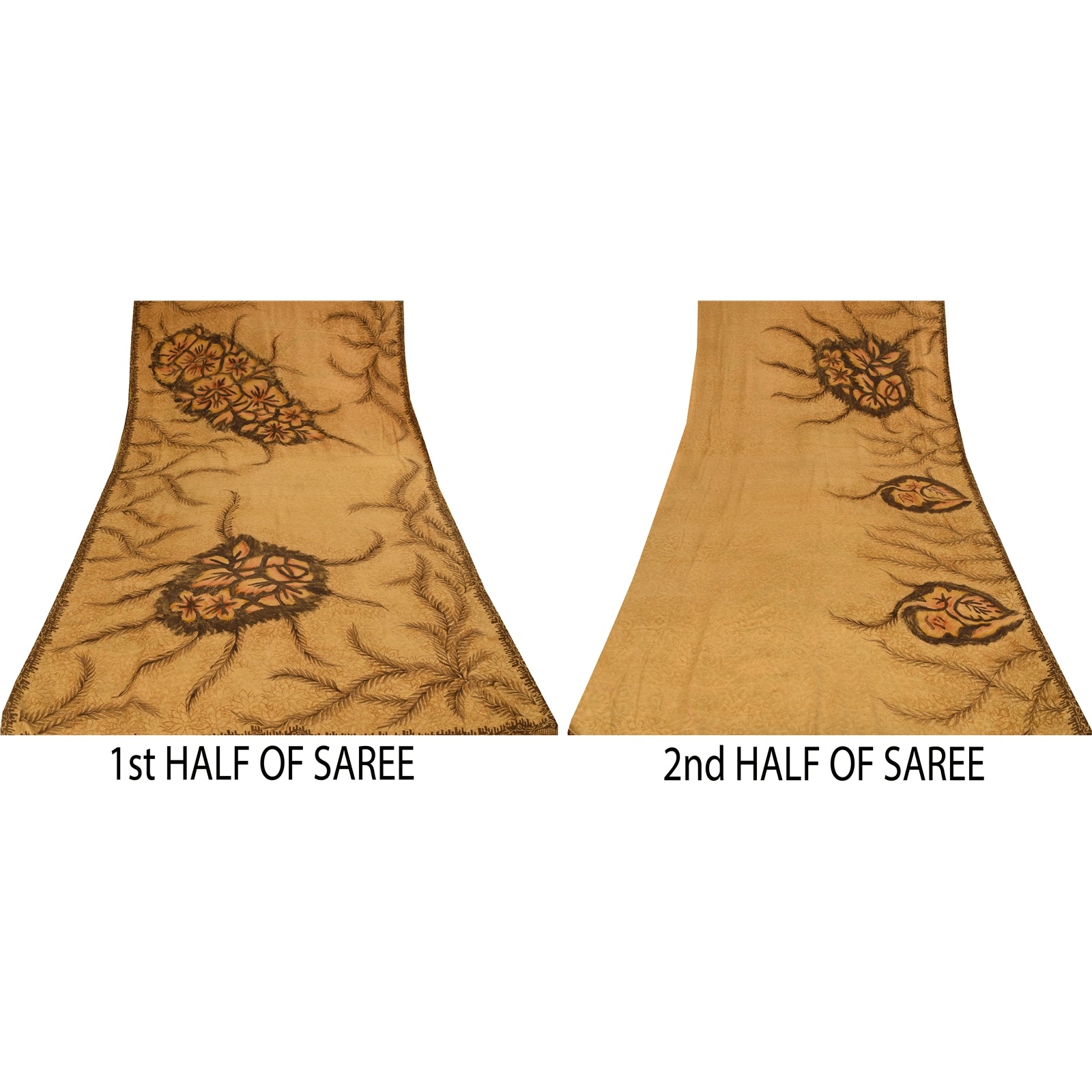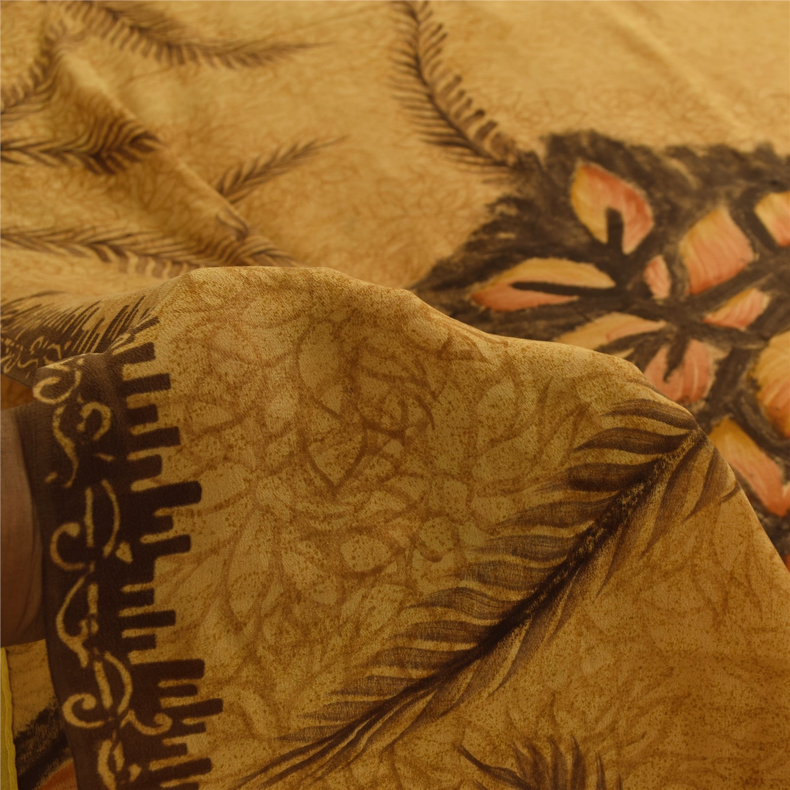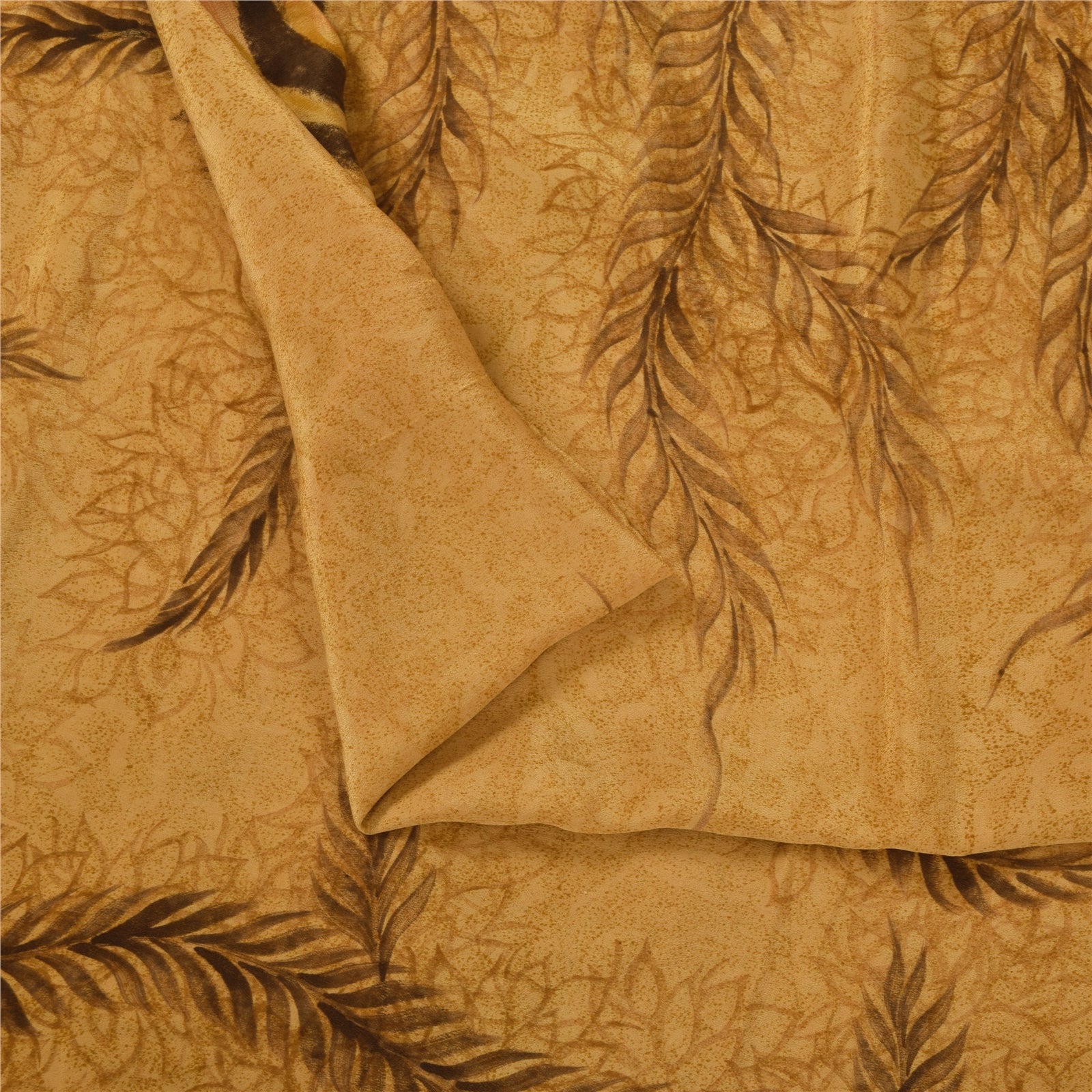 Sanskriti Vintage Sarees Saffron Pure Crepe Silk Printed Sari 5+yd Craft Fabric