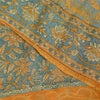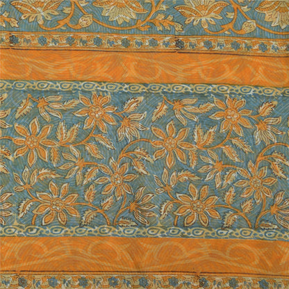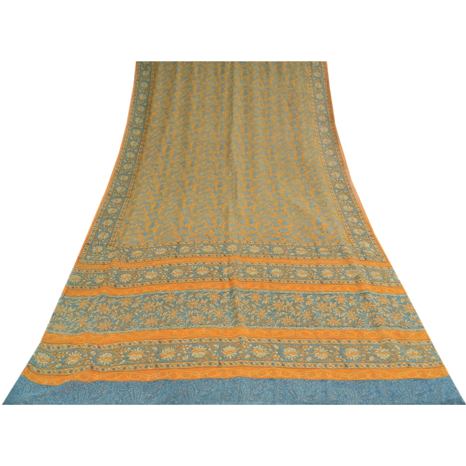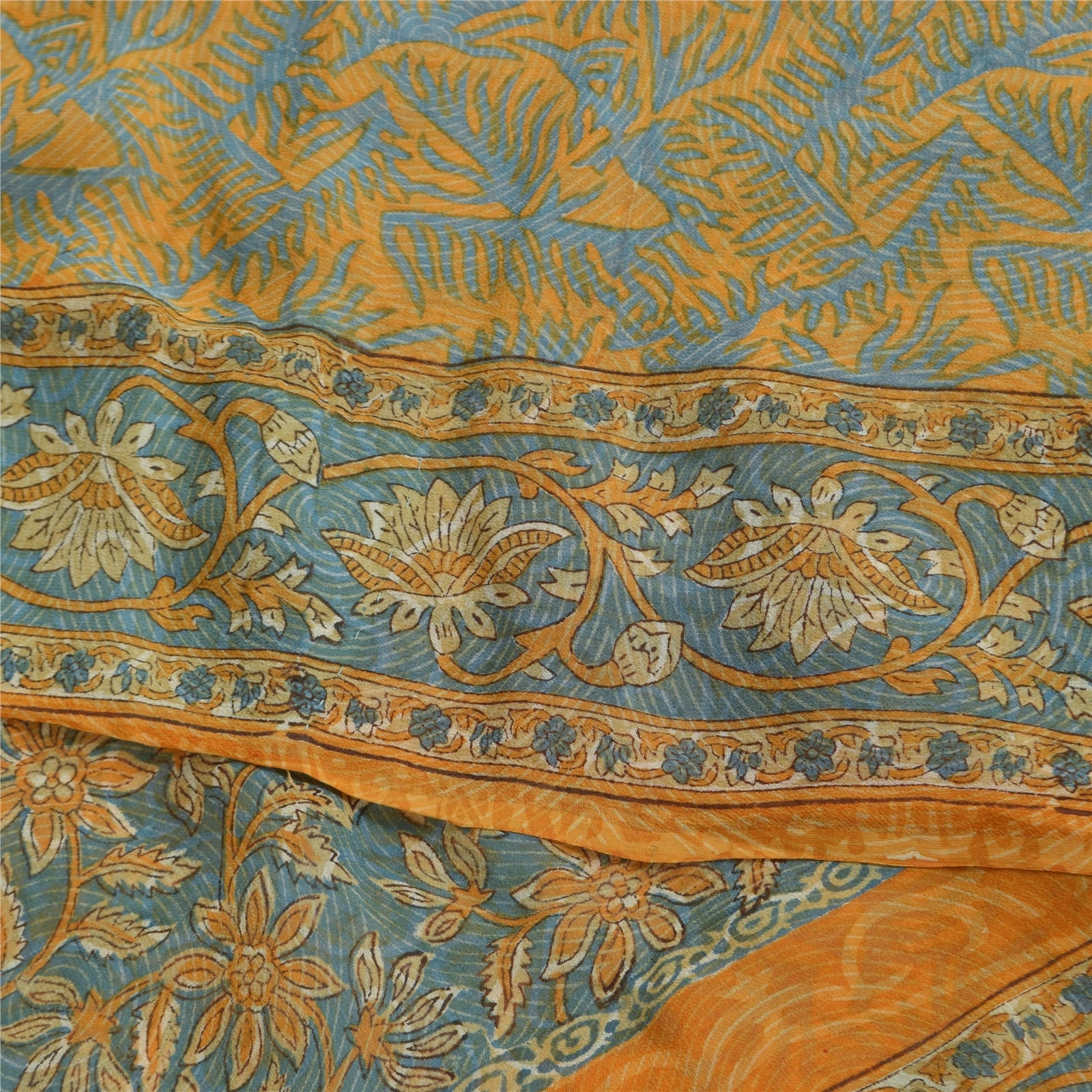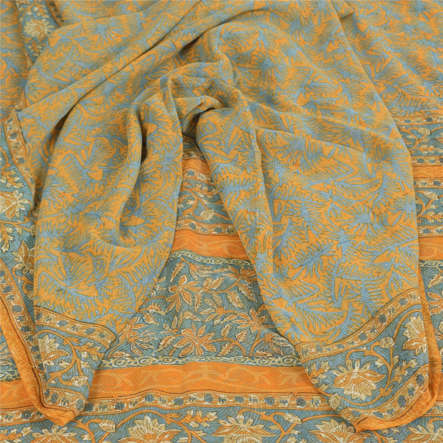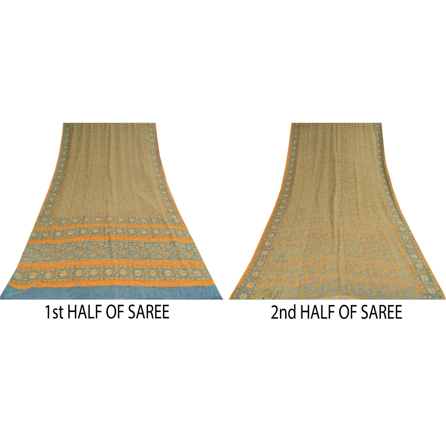 Sanskriti Vintage Sarees Yellow & Blue lPure Georgette Printed Sari 5+yd Sustainable Fabric