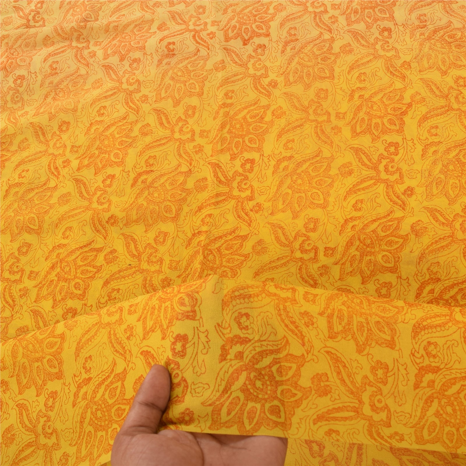 Sanskriti Vintage Sarees Yellow Pure Georgette Silk Printed Sari Craft Sustainable Fabric