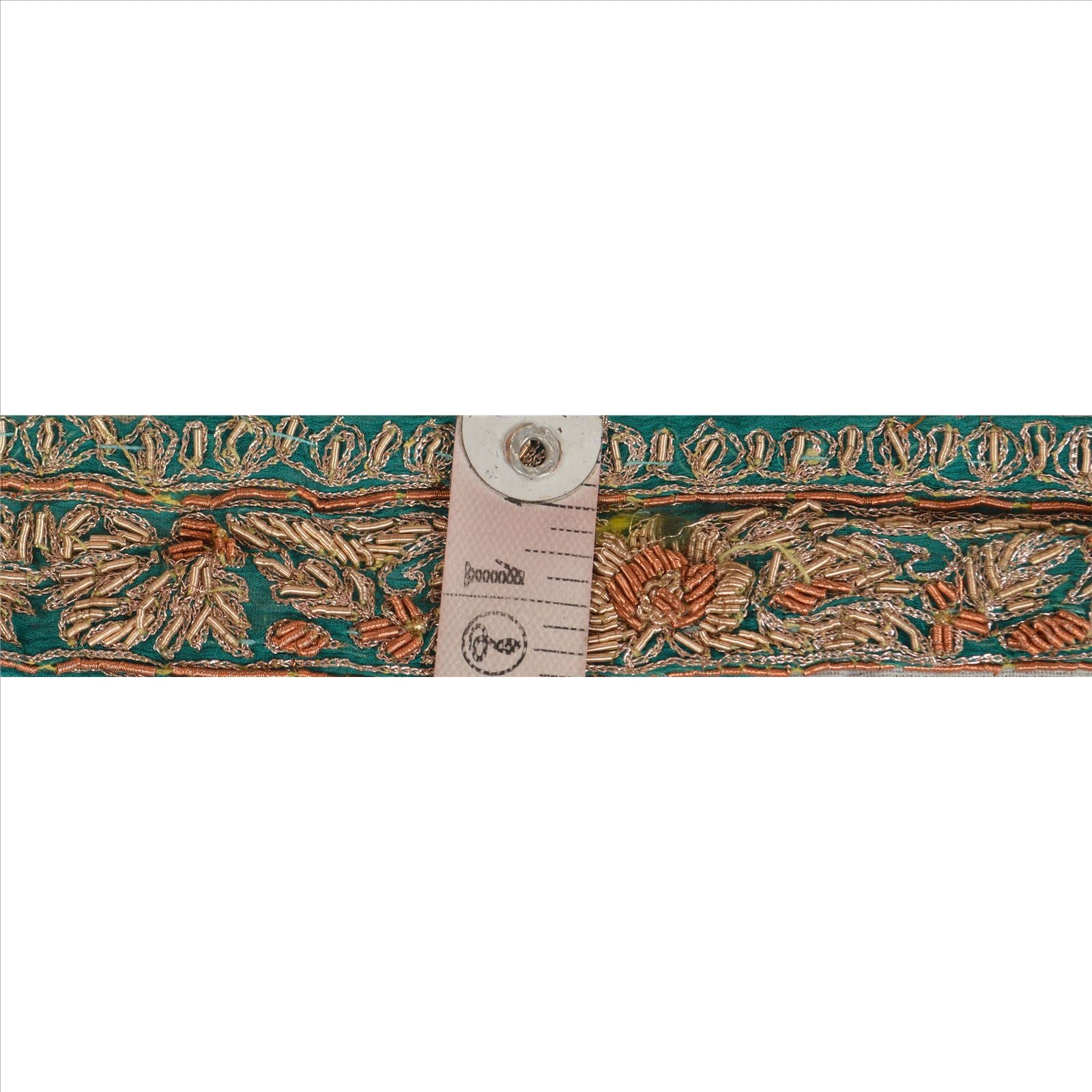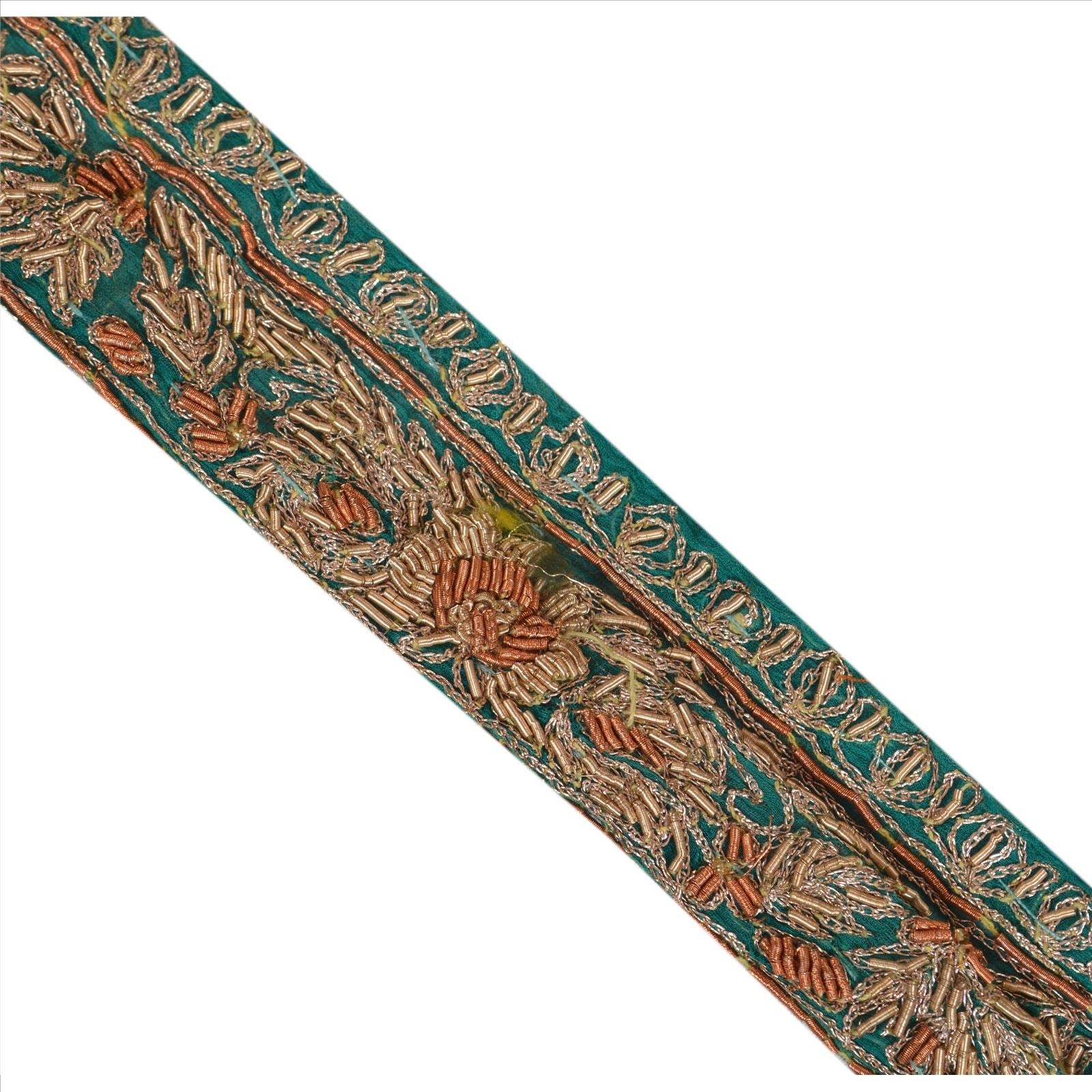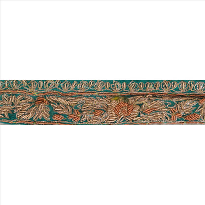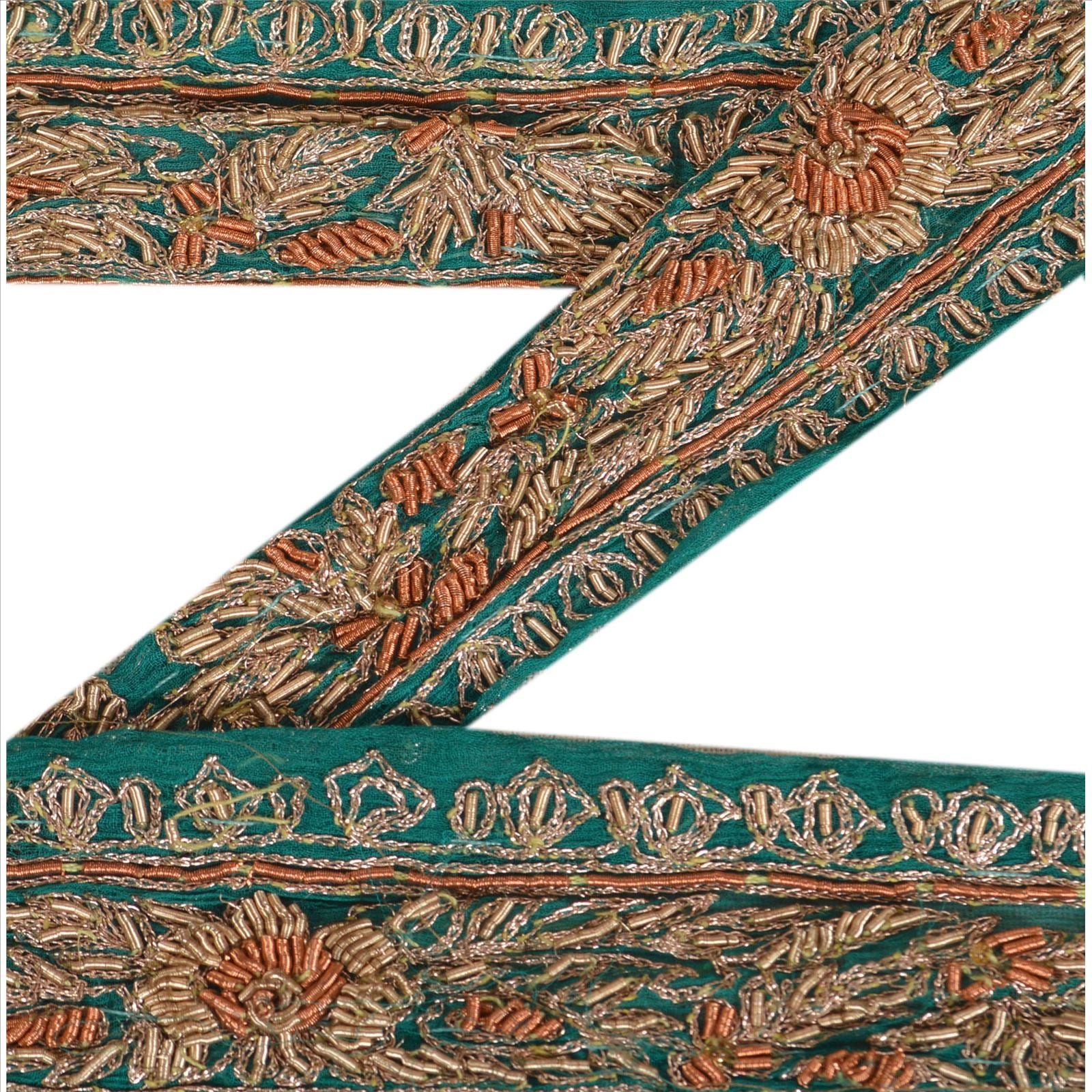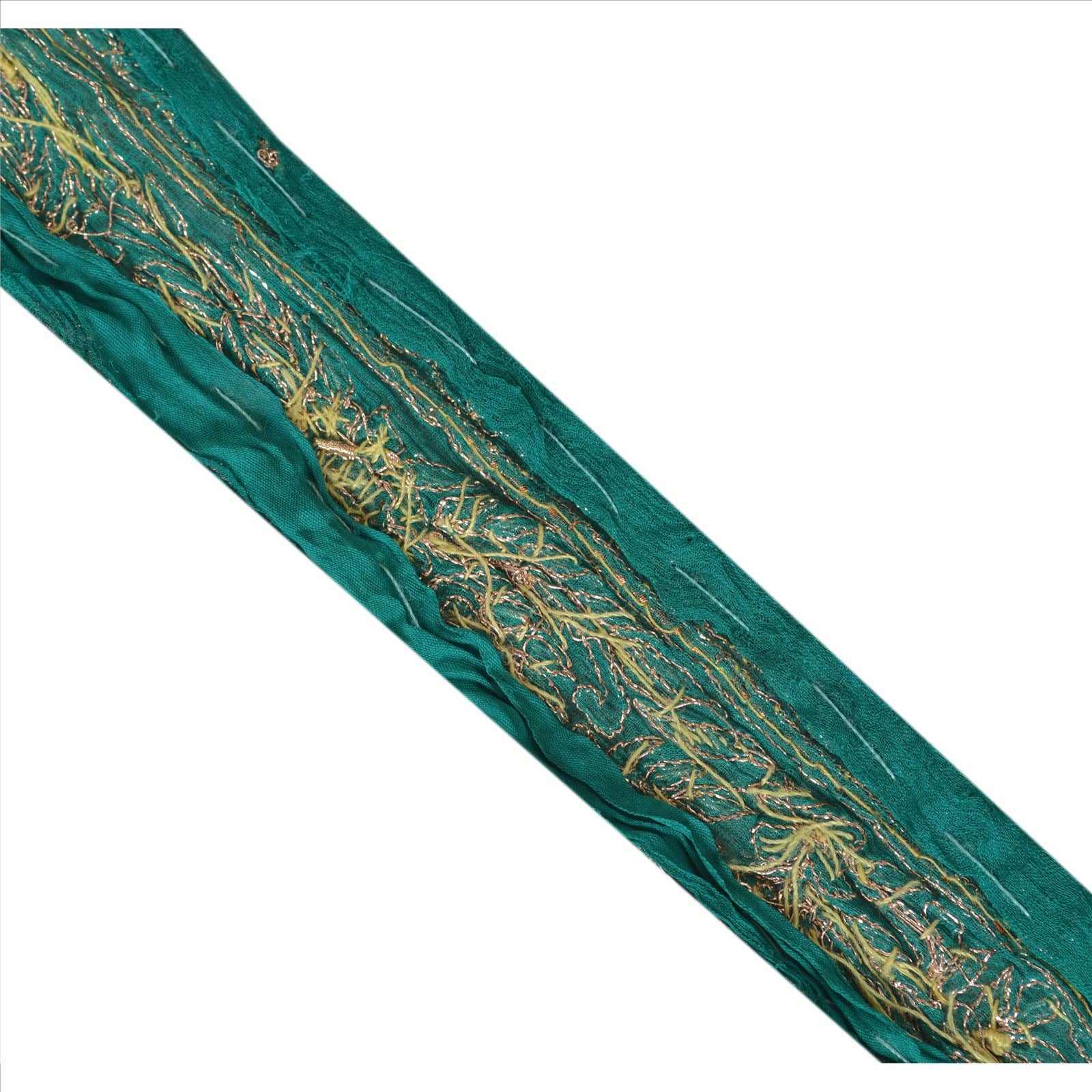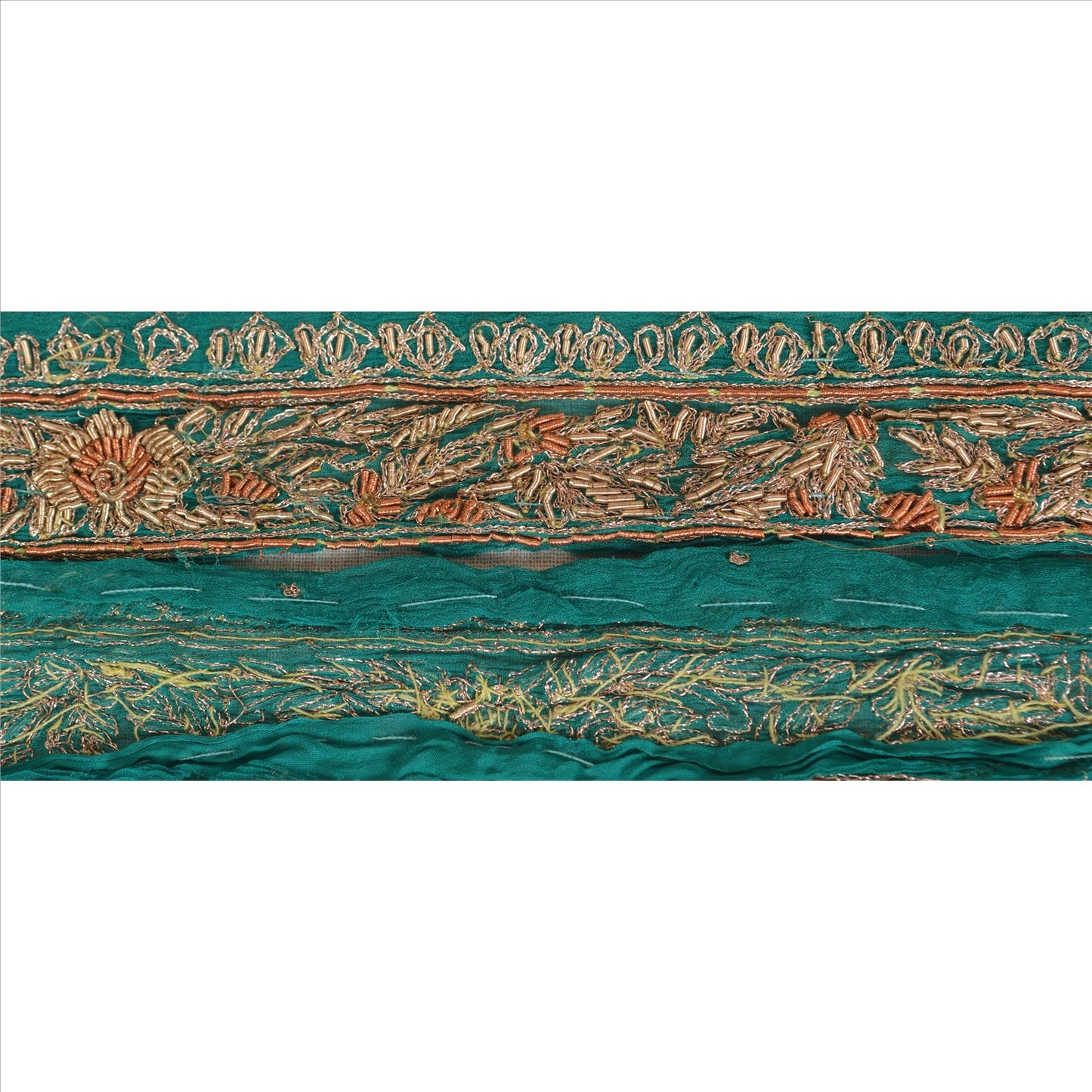 Sanskriti Vintage Sari Border Antique Hand Embroidered 1Yd Indian Trim Green Lace