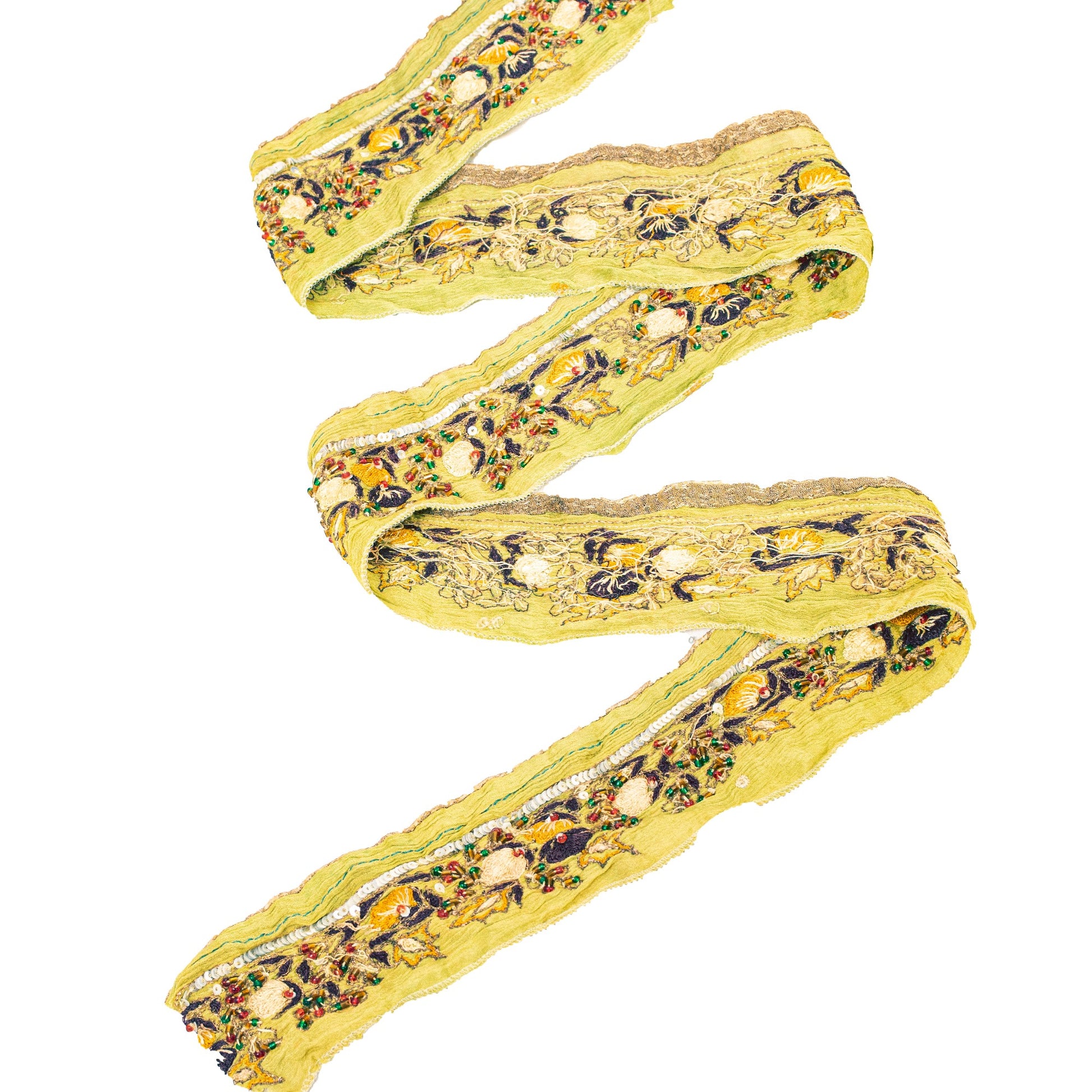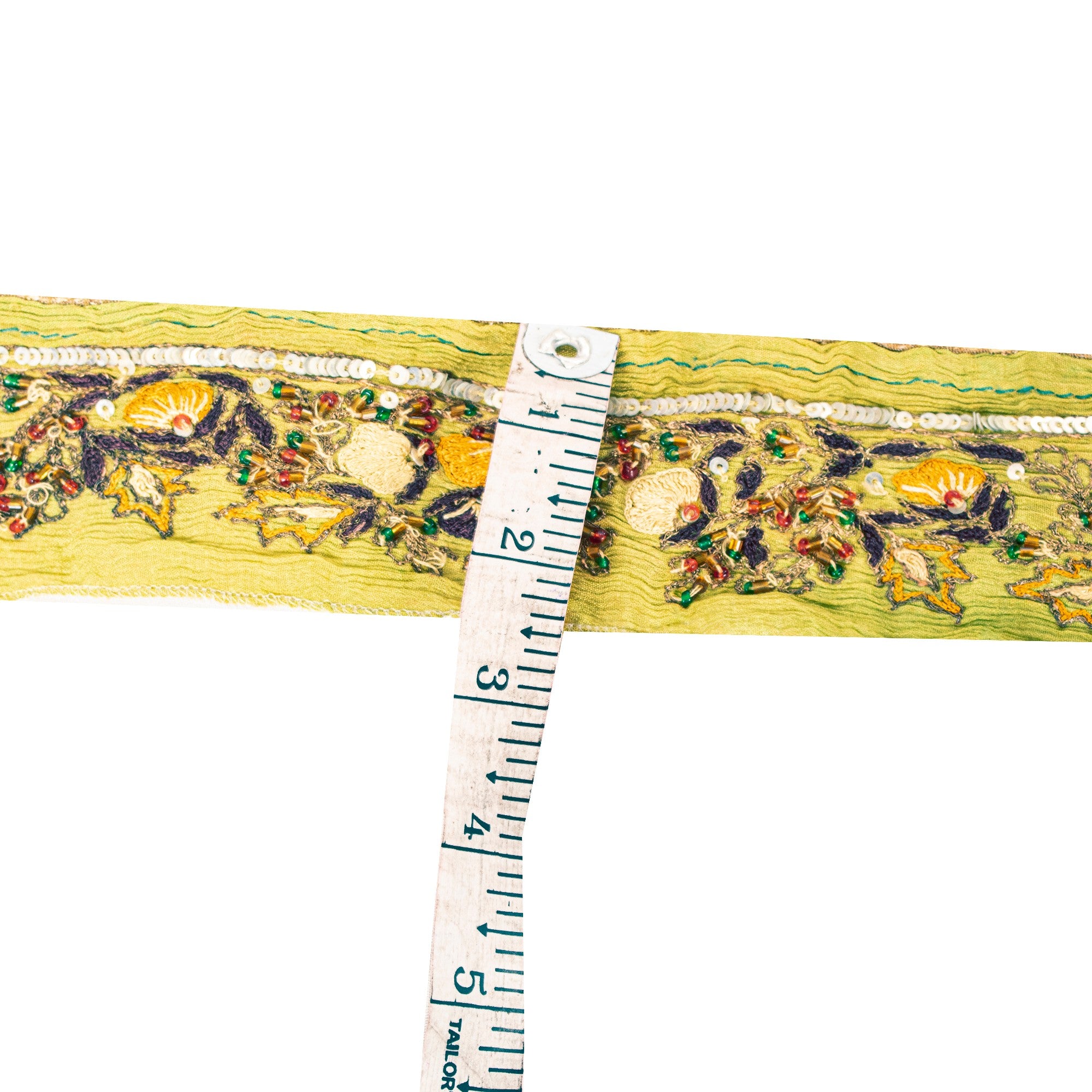 Sanskriti VINTAGE SARI BORDER HAND BEADED 1 yD TRIM LACE 2W PURE SILK GREEN
