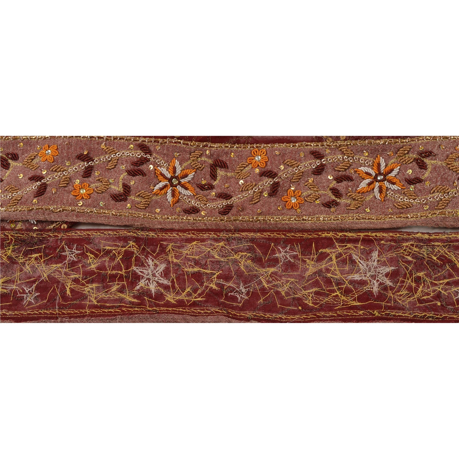 Sanskriti Vintage Sari Border Hand Beaded 1 Yd Trim Sewing Dark Red Craft Lace