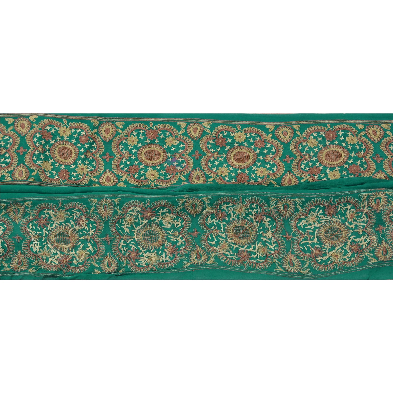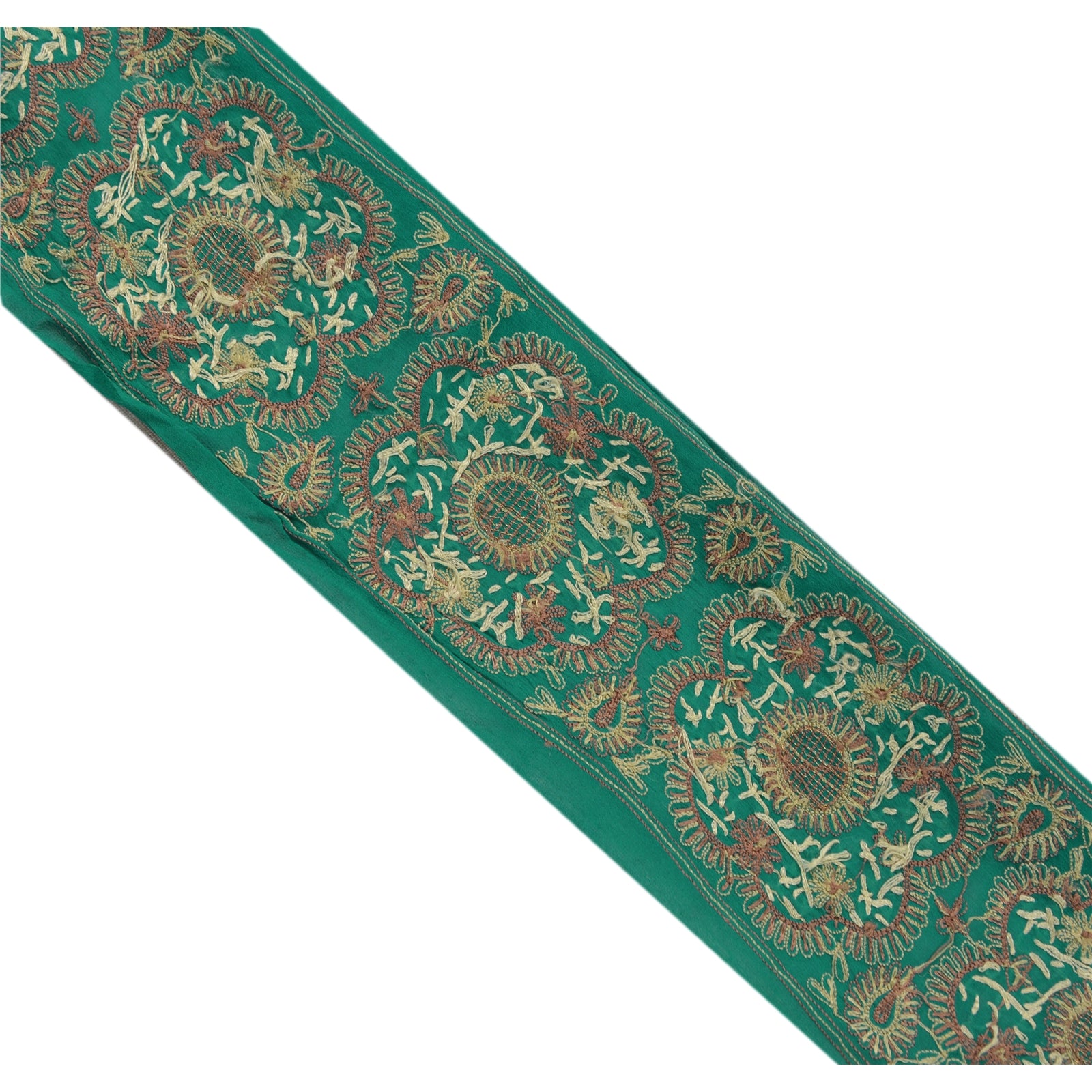 Sanskriti Vintage Sari Border Hand Embroidered 1 Yd Trim Sewing Green Craft Lace