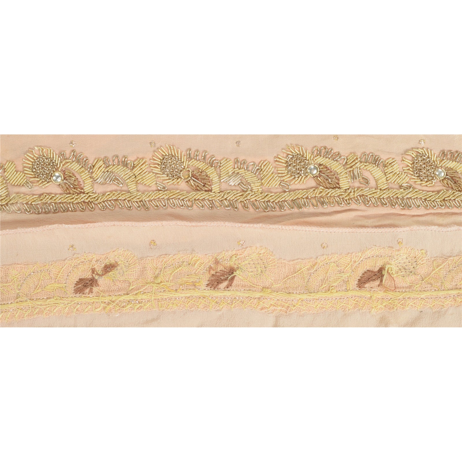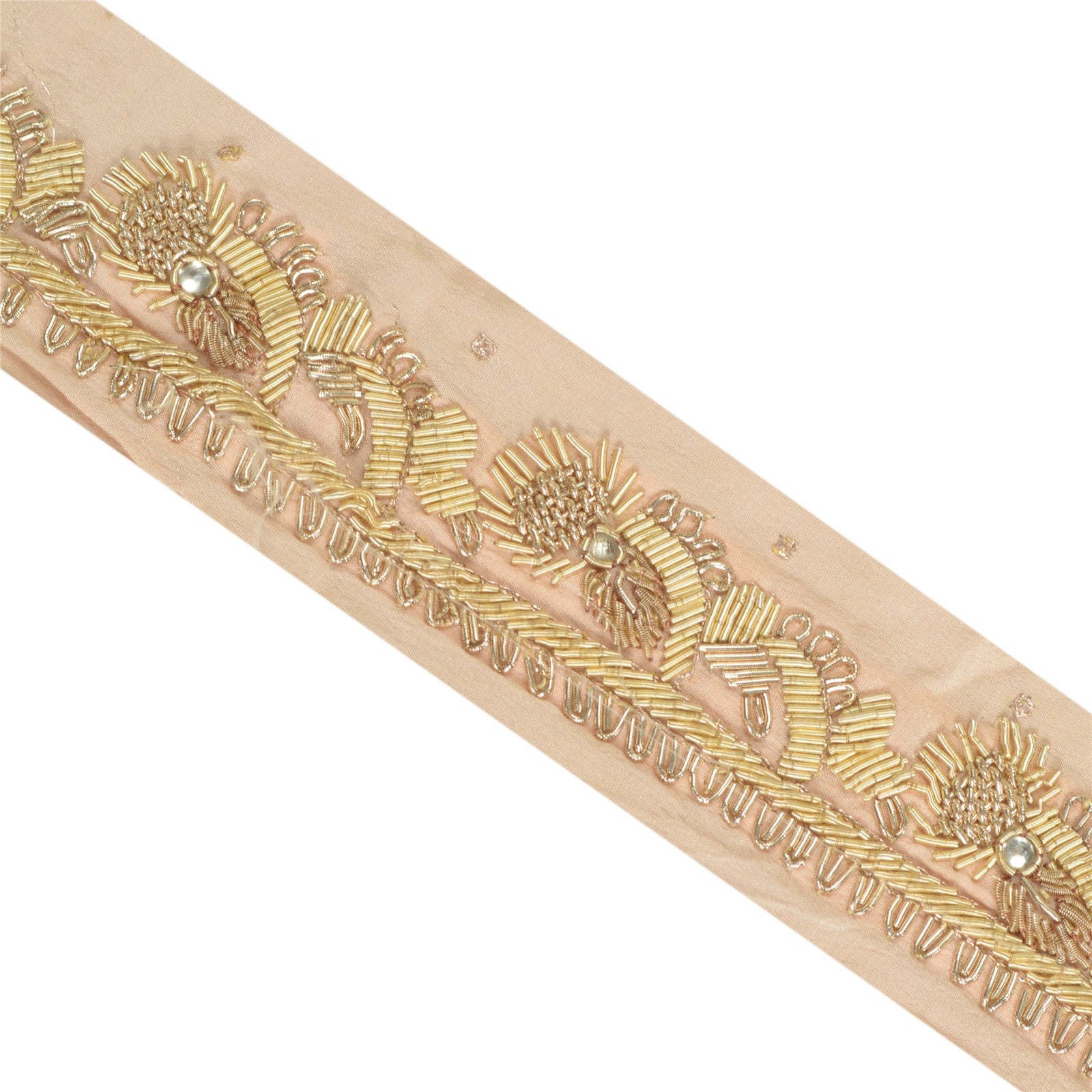 Sanskriti Vintage Sari Border Hand Embroidered Craft 1Yd Sewing Peach Trims Lace