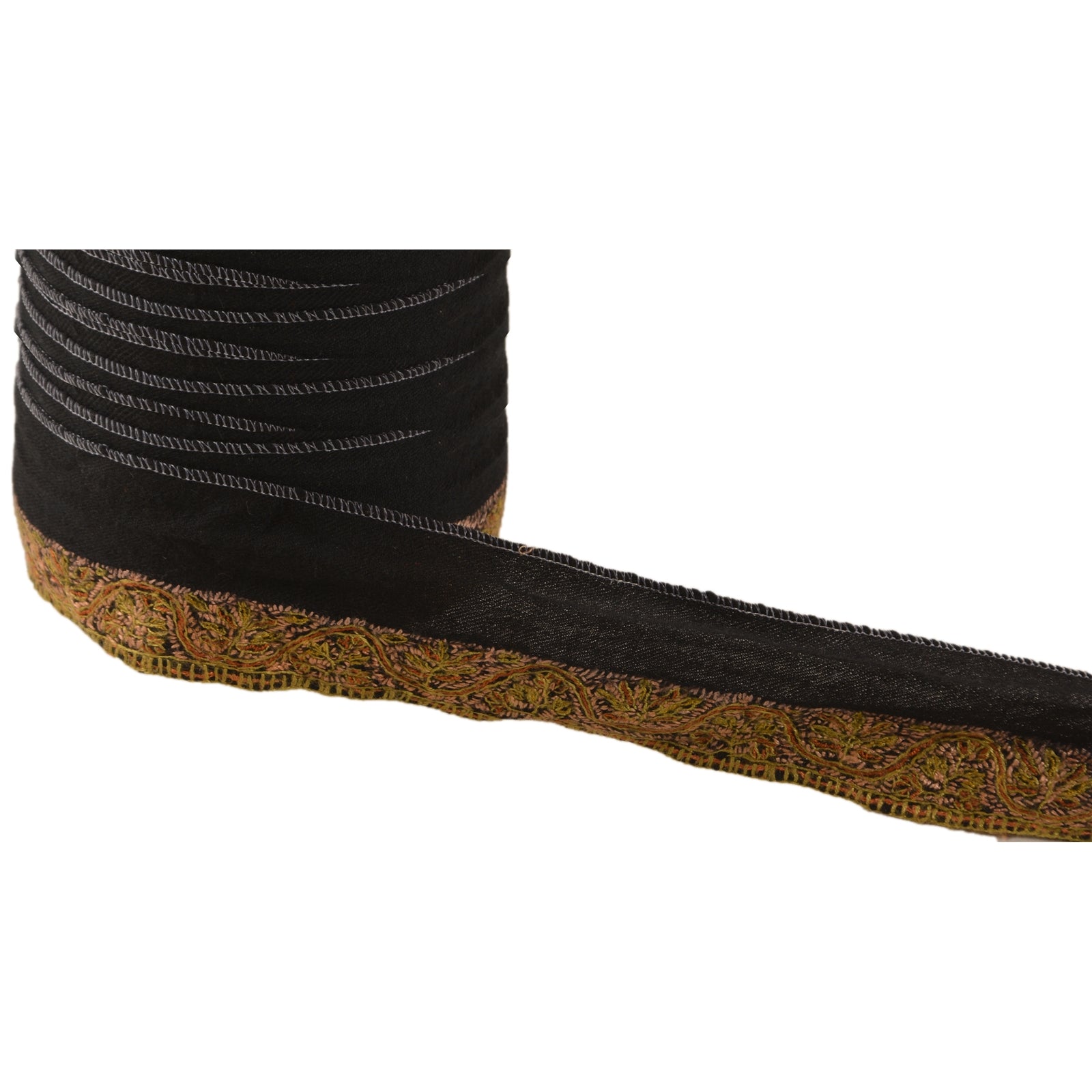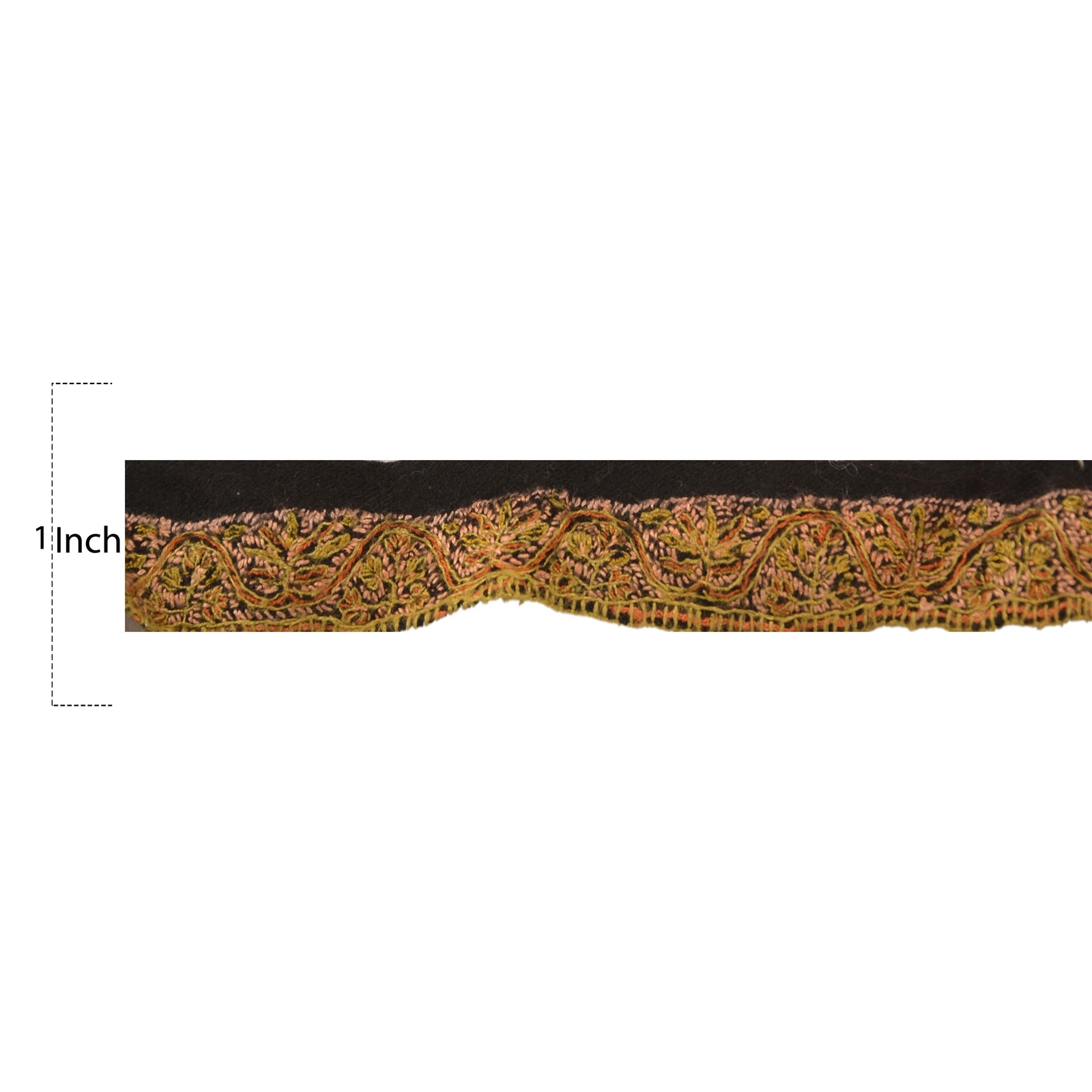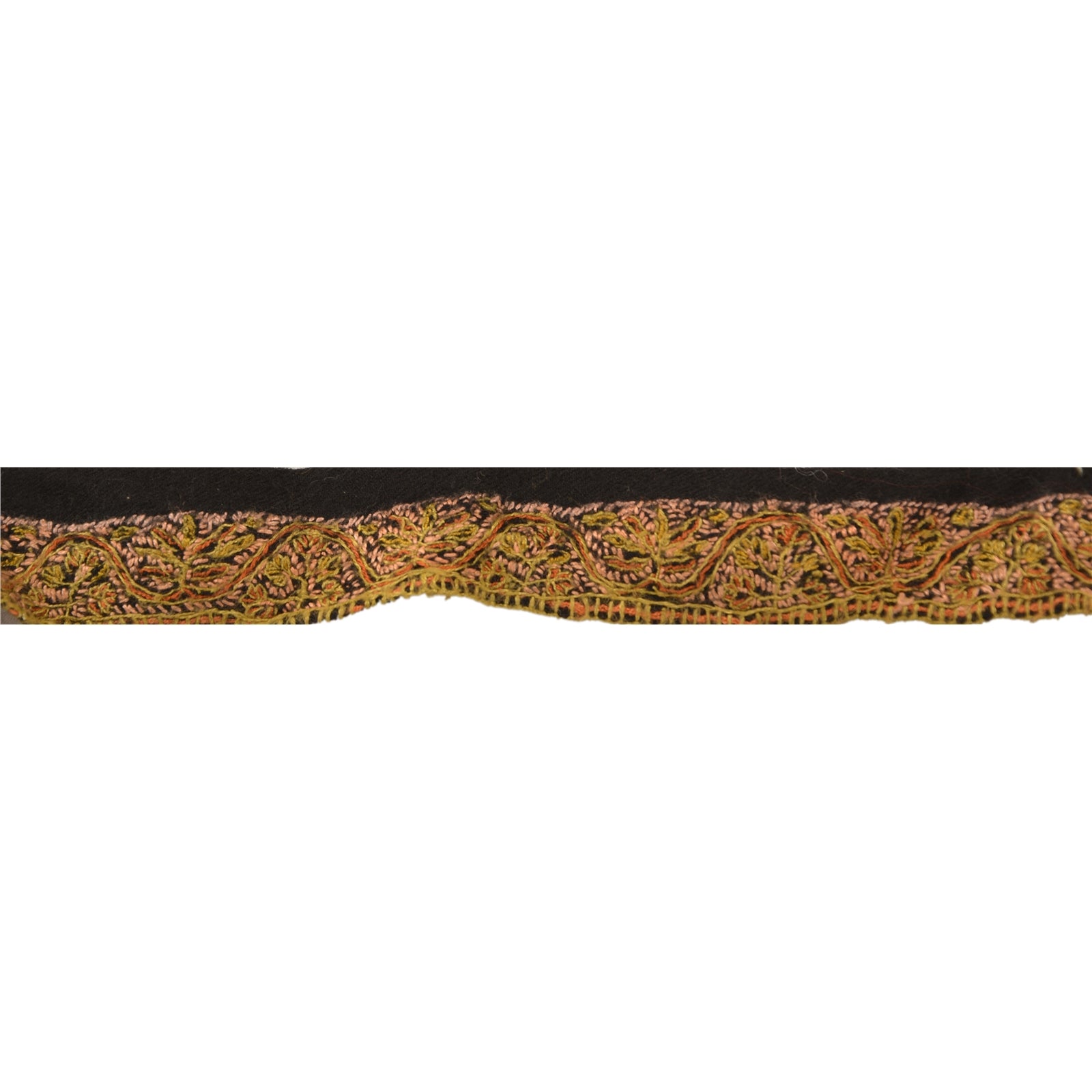 Sanskriti Vintage Sari Border Hand Embroidered Suzani 1Yd Trim Ribbon Black Lace