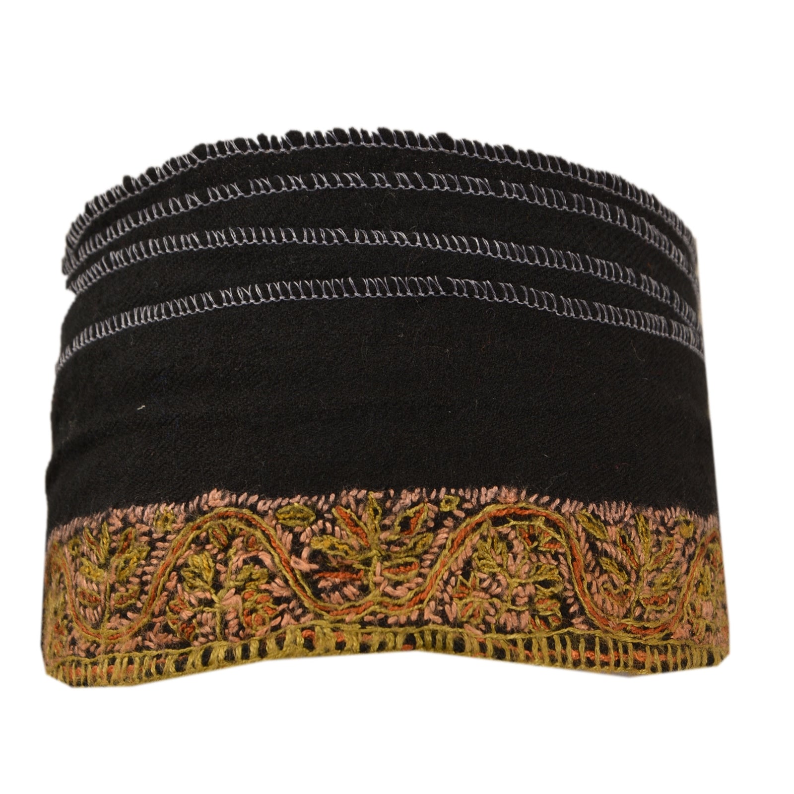 Fabulous woolen hand embroidered suzani sari border in black color highlighting thread work. Border has beautiful floral & paisley patterns painstakingly hand embroidered with green, peach, saffron thread work. WOW!! an awesome one of a kind versatile border. 1 Quantity = 1 Yard