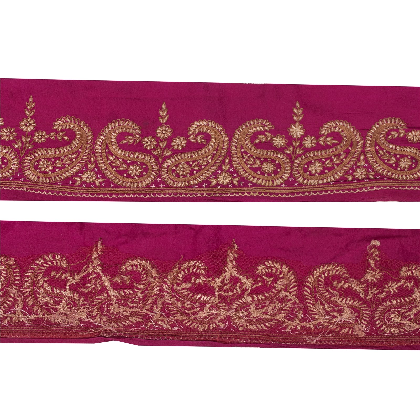 Sanskriti Vintage Sari Border Hand Embroidery 1YD Trims 3.7W Paisley Purple Lace