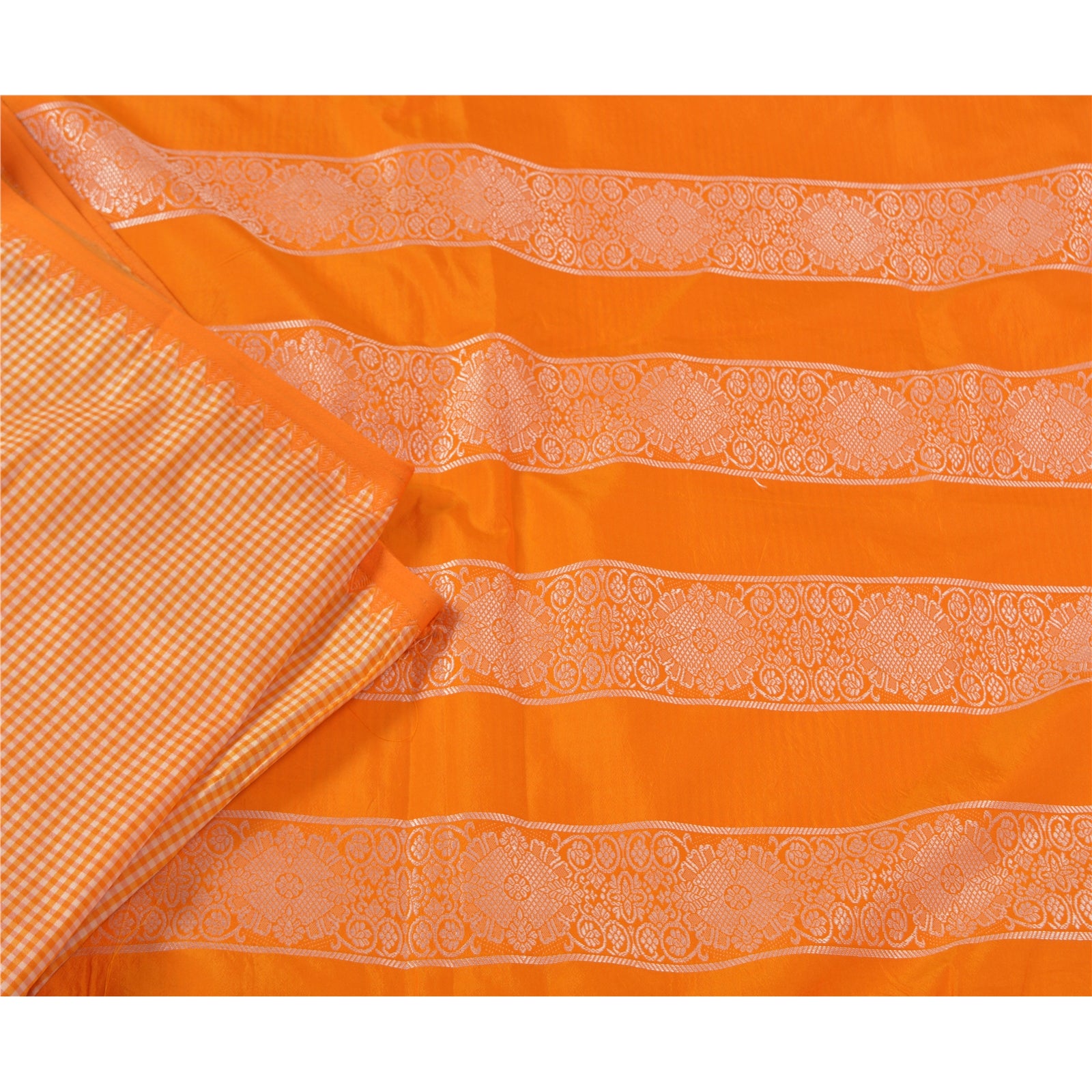 'THE ITEM COLOR OR SHADE MAY BE DARKER OR LIGHTER THAN THE PICTURE.' Beautiful yellow colored art (artificial) silk woven sari. Pallu & border features are cream woven thread work with floral design. The center of the saree has woven checkered design. As the item is Vintage, some minor stains and defects are expected. his saree can be used for various crafting ideas too. Use it for dress designing, as a throw, as window dressing, upholstery, table linen and much more. Let your creative juices flow. 'International buyers please note: Import duties, taxes, and charges are not included in the item price or postage cost. These charges are the buyer's responsibility. Please check with your country's customs office to determine what these additional costs will be prior to bidding or buying. Buyer will pay custom duty/tax. It is calculated and charged differently by every country. As a seller I do not have any control over it. VAT or sales tax is calculated by the platform at the time of checkout. Customs charge is payable at the time of delivery.'