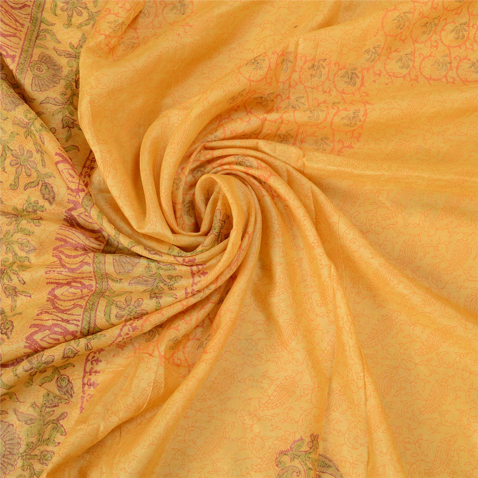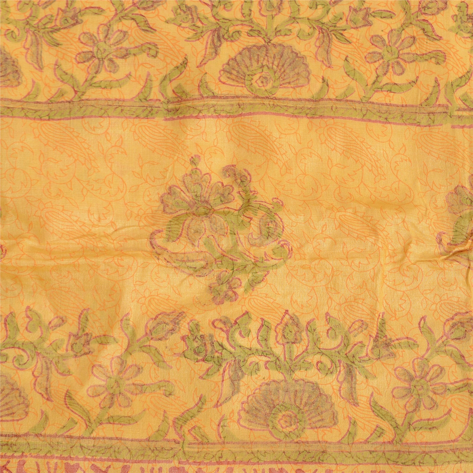 Sanskriti Vintage Yellow Sarees Pure Silk Hand-Block Printed Sari Craft Sustainable Fabric