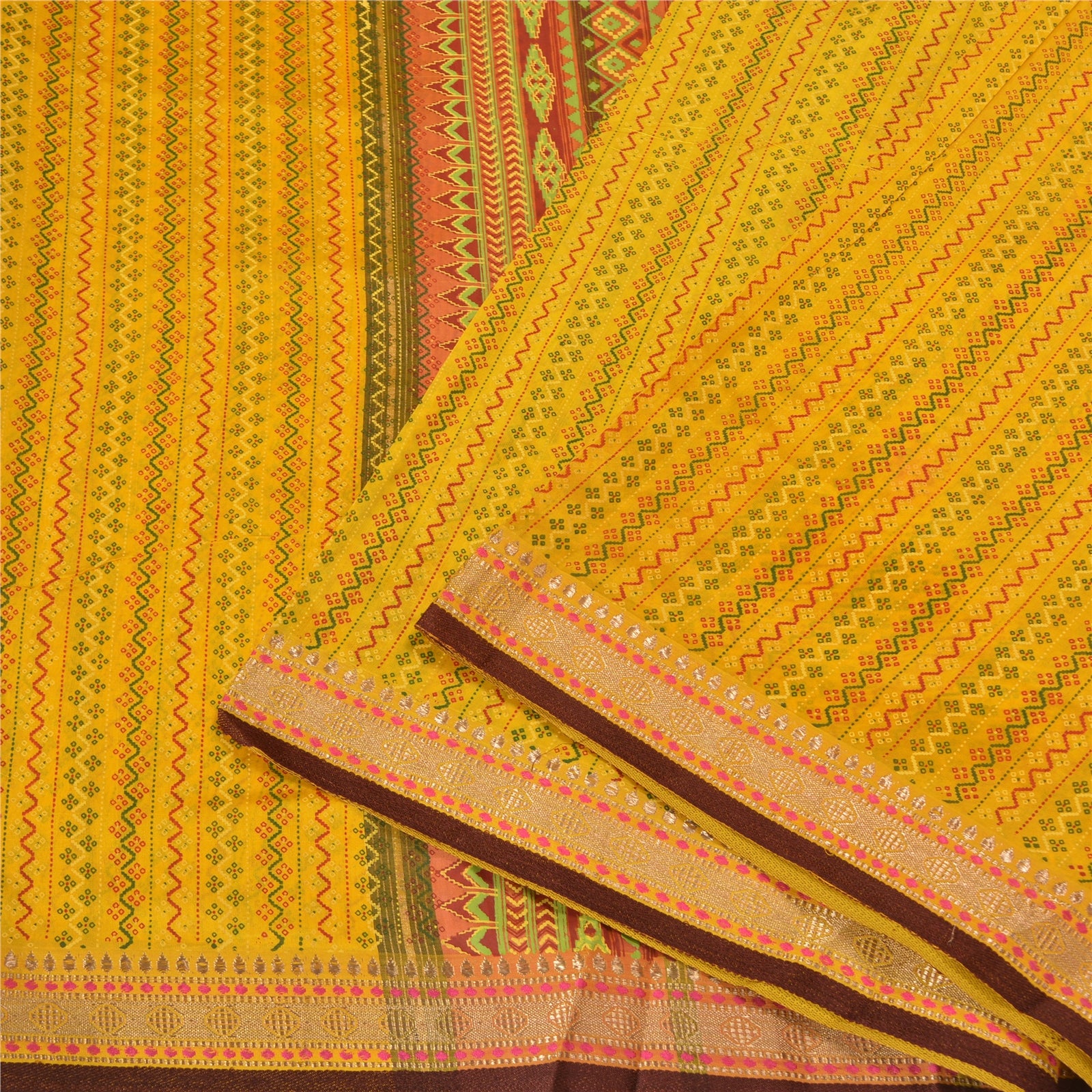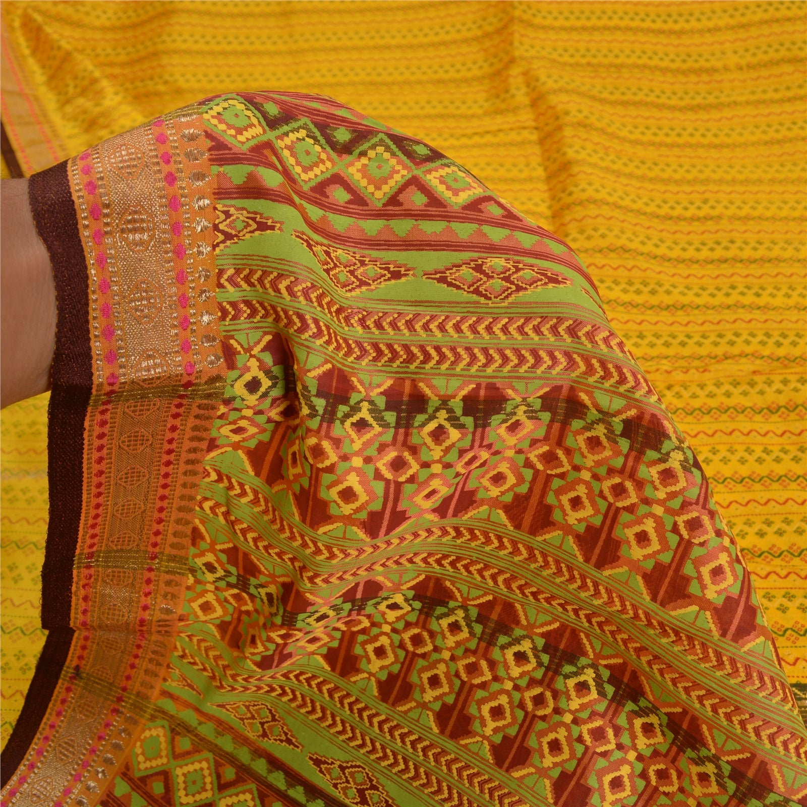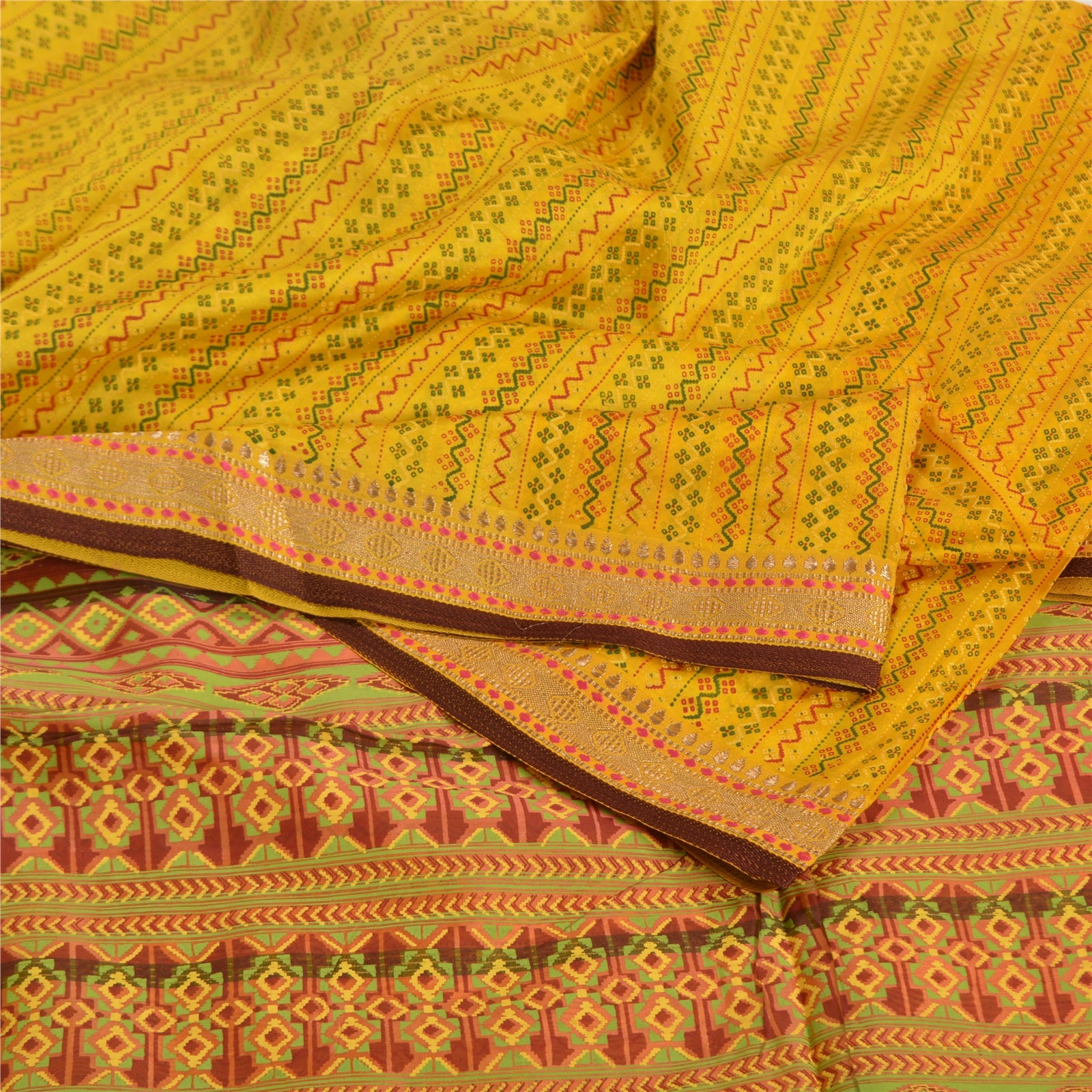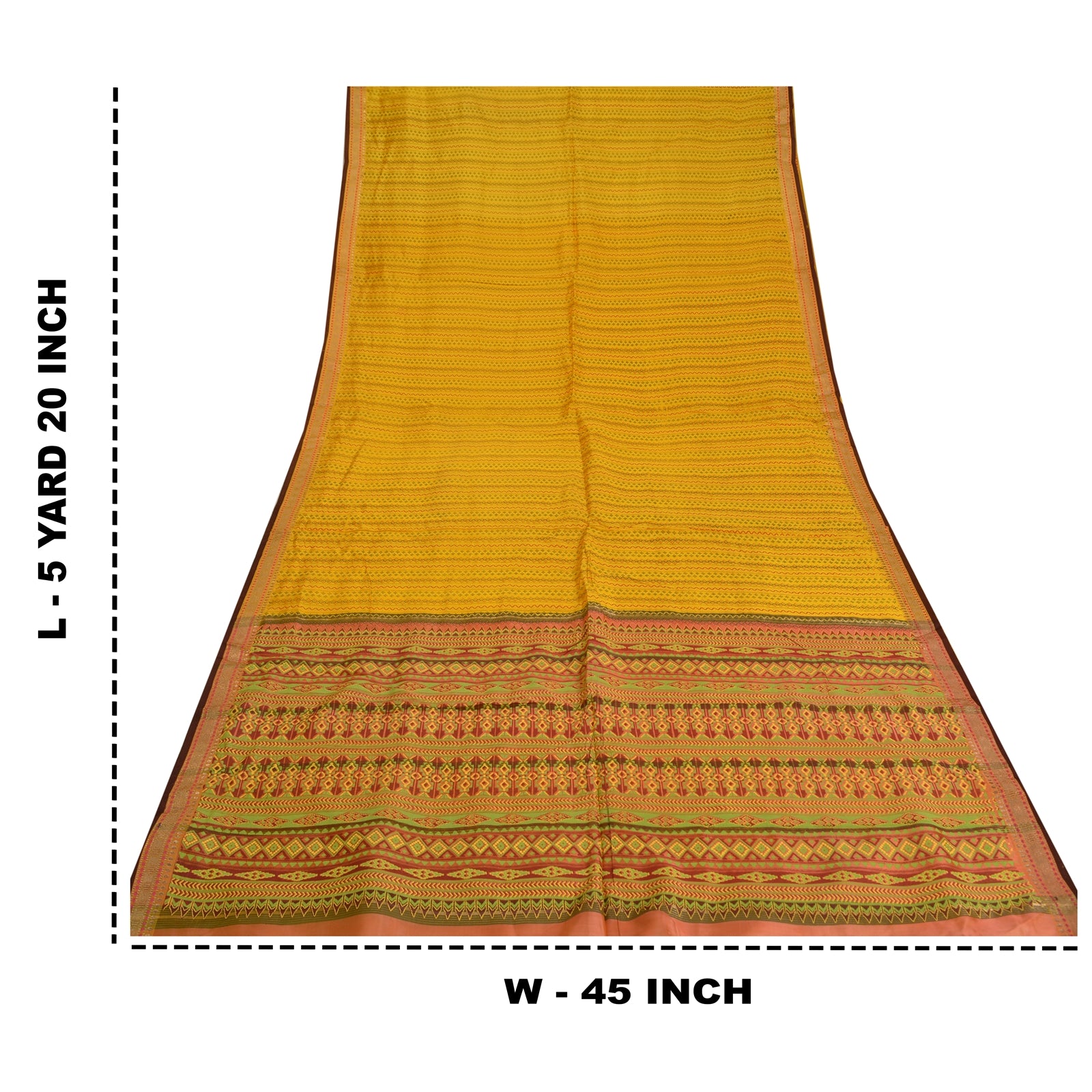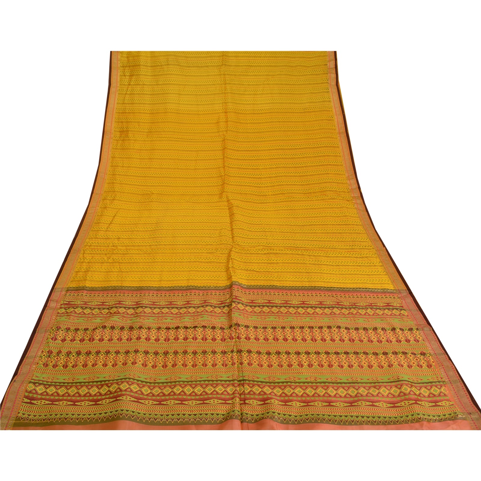 Sanskriti Vintage Yellow Sarees Pure Silk Painted Woven Zari Premium Sari Sustainable Fabric