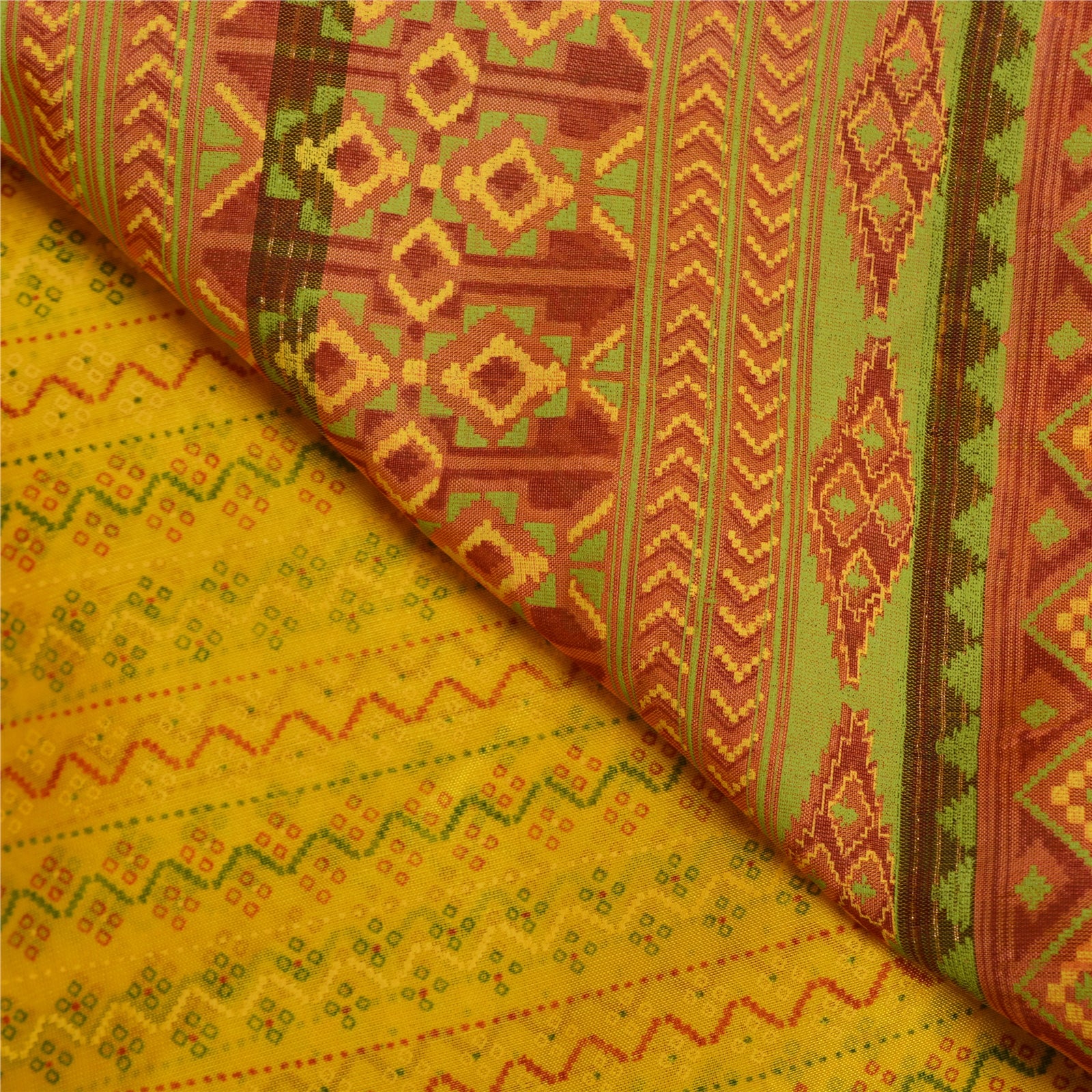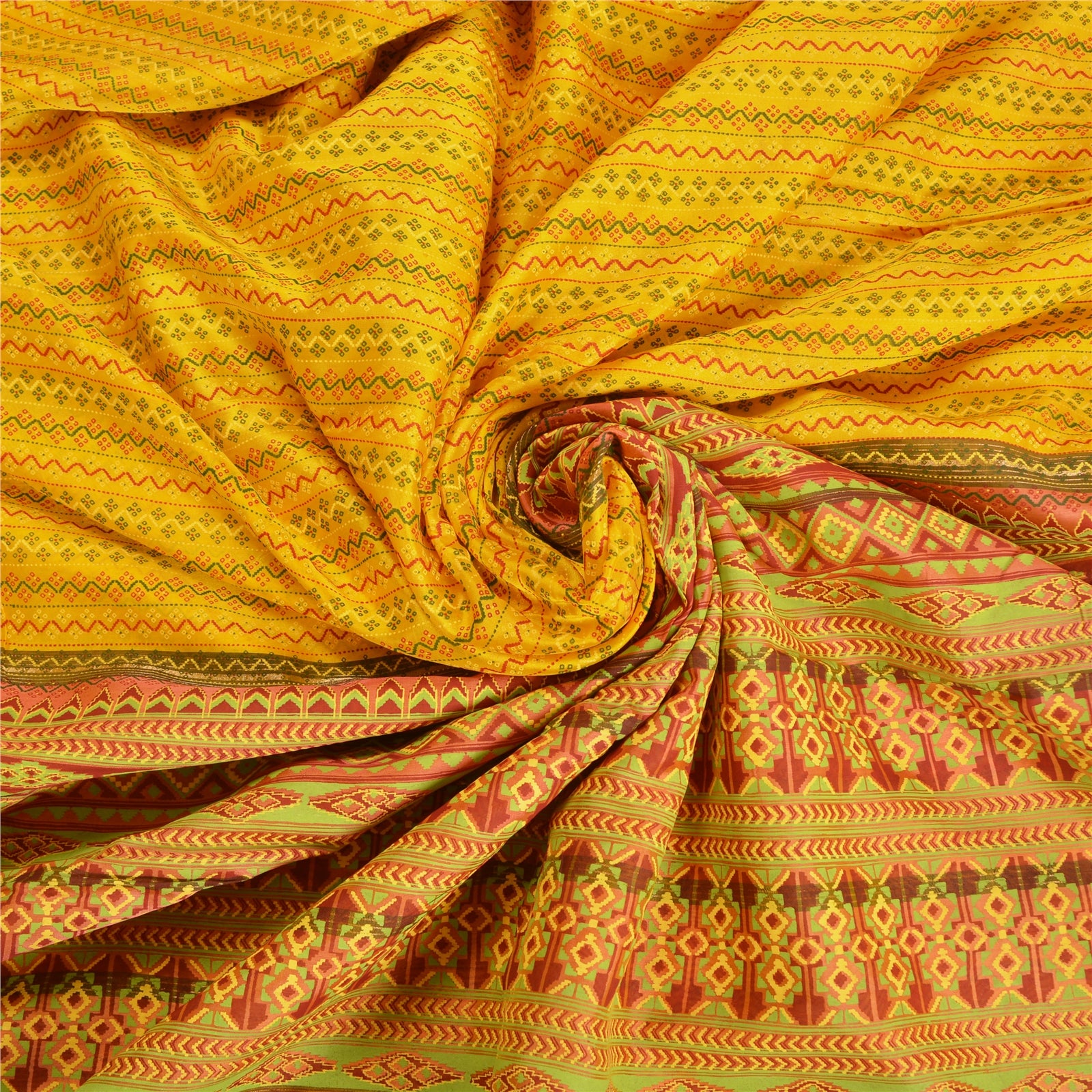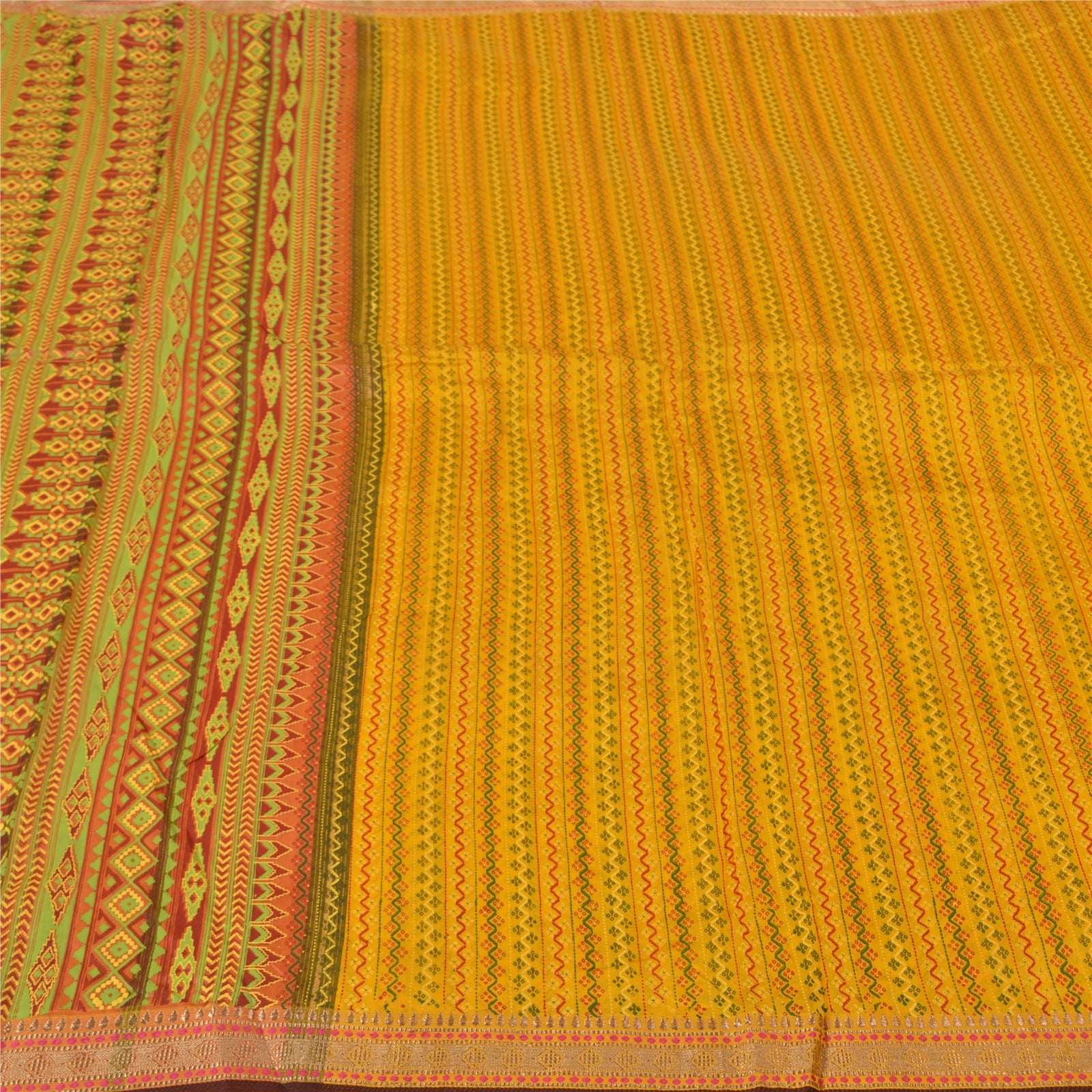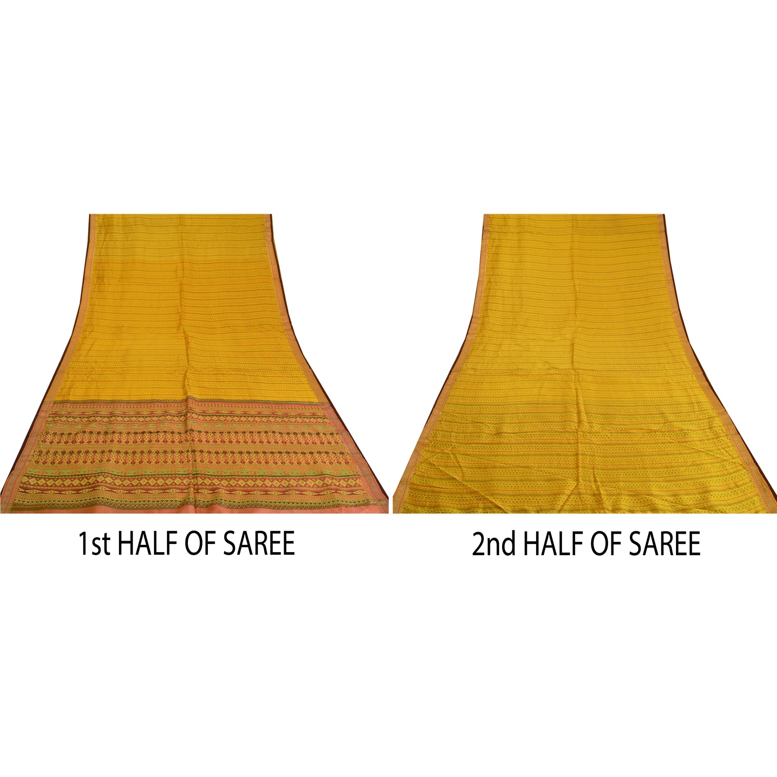 'THE ITEM COLOR OR SHADE MAY BE DARKER OR LIGHTER THAN THE PICTURE.' Beautiful yellow colored pure silk painted woven sari/Sustainable Fabric. Pallu has multi color painted work with geometric design. Also you can see golden zari & pink woven thread work on borders. The center of the saree has similar painted floral design. This saree can be used for various crafting ideas too. Use it for dress designing, as a throw, as window dressing, upholstery, table linen and much more. Let your creative juices flow. 'International buyers please note: Import duties, taxes, and charges are not included in the item price or postage cost. These charges are the buyer's responsibility. Please check with your country's customs office to determine what these additional costs will be prior to bidding or buying. Buyer will pay custom duty/tax. It is calculated and charged differently by every country. As a seller I do not have any control over it. VAT or sales tax is calculated by the platform at the time of checkout. Customs charge is payable at the time of delivery.'