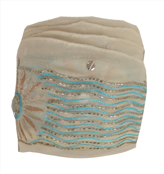 Sanskriti Vintage Sari Border Hand Beaded 1 Yd Trim Sewing Cream Craft Lace