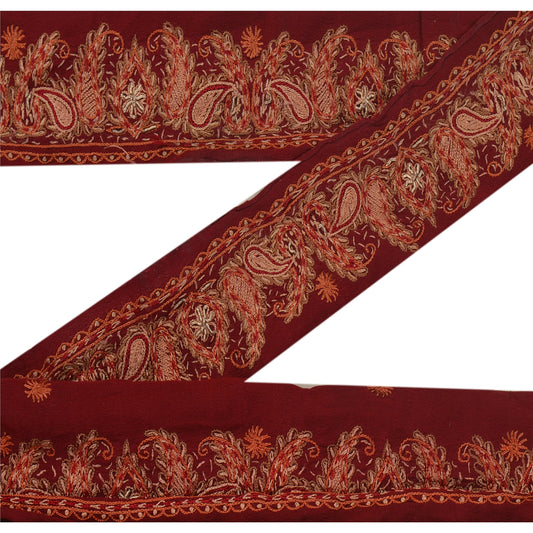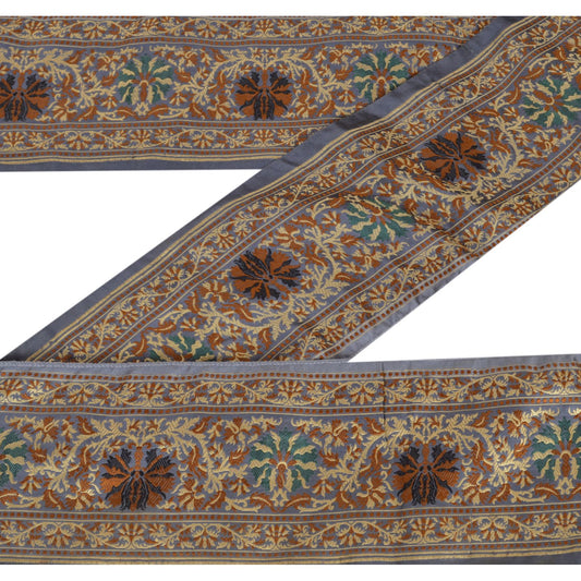 Sanskriti Vintage Sari Border Embroidered 1Yd Trim Sewing Brown Craft Decor Lace
