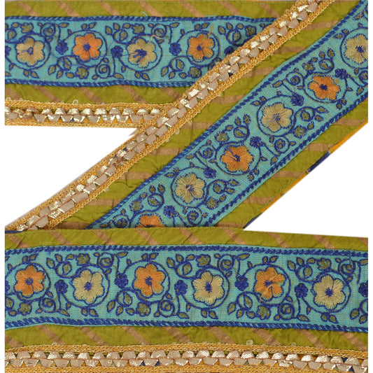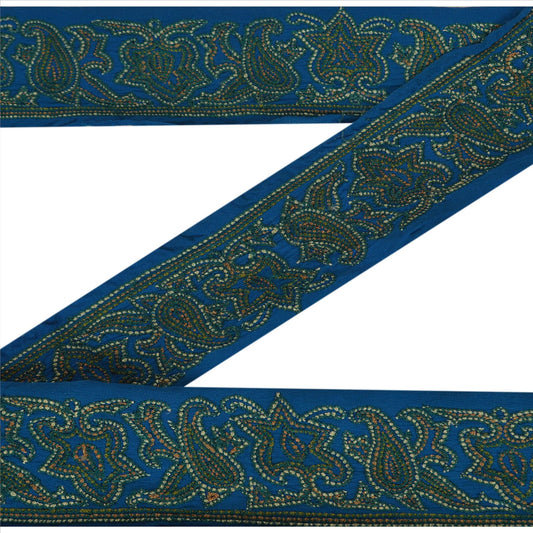 Sanskriti Vintage Sari Border Embroidered 1 Yd Trim Sewing Blue Craft Lace