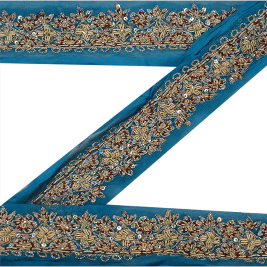 Sanskriti Vintage Sari Border Hand Beaded 1 Yd Indian Trim Sewing Blue Lace