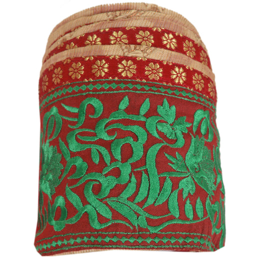 Sanskriti Vintage Sari Border Hand Beaded 1 Yd Indian Trim Sewing Red Zari Lace