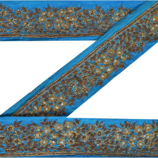 Sanskriti Vintage Sari Border Antique Hand Beaded 1 Yd Indian Trim Sewing Blue Zari Lace