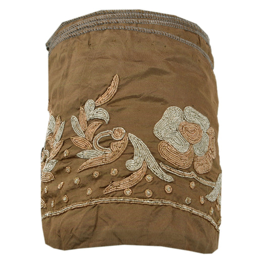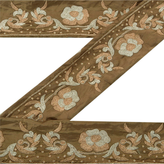 Sanskriti Vintage Sari Border Hand Embroidered 1 Yd Trim Sewing Brown Craft Lace