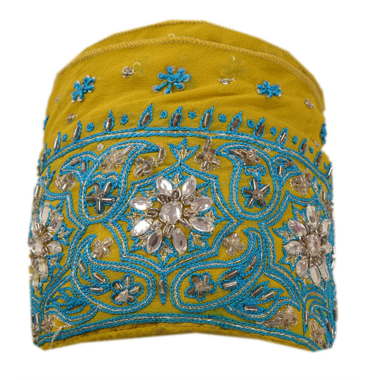 Sanskriti Vintage 1 Yd Sari Border Hand Beaded Craft Trim Sewing Yellow Lace