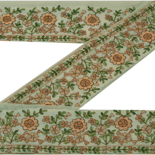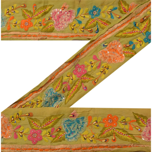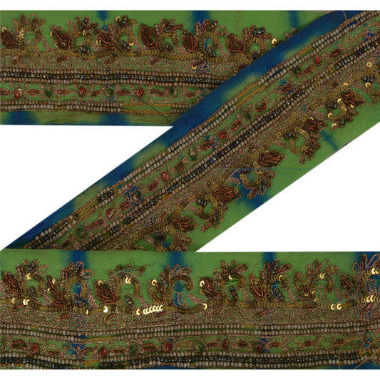 Sanskriti Vintage Sari Border Antique Hand Beaded 1 Yd Indian Trim Sewing Green Deco Lace
