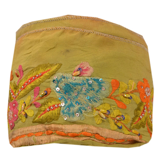 Sanskriti Vintage Sari Border Antique Hand Beaded 1 Yd Indian Trim Sewing Green Decor Lace