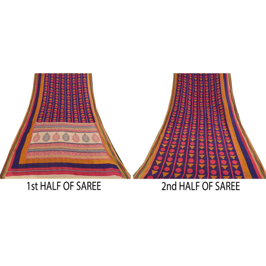 Sanskriti Vintage Saree Multi Pure Georgette Silk Printed Sari 5yd Craft Sustainable Fabric