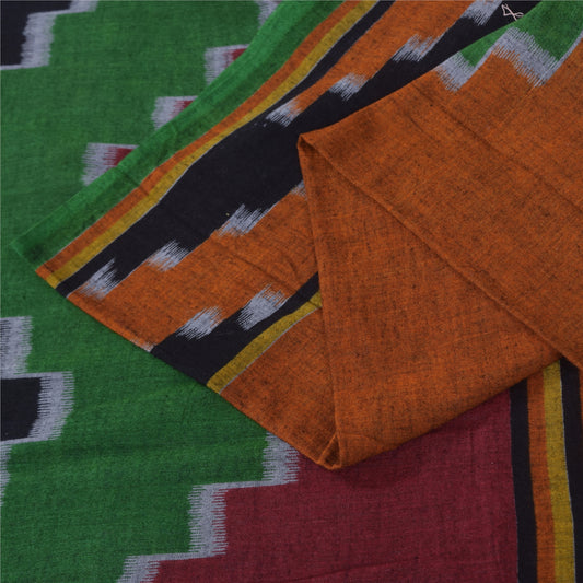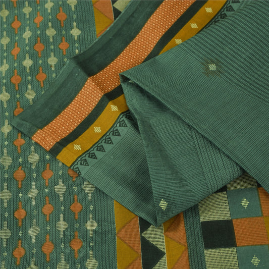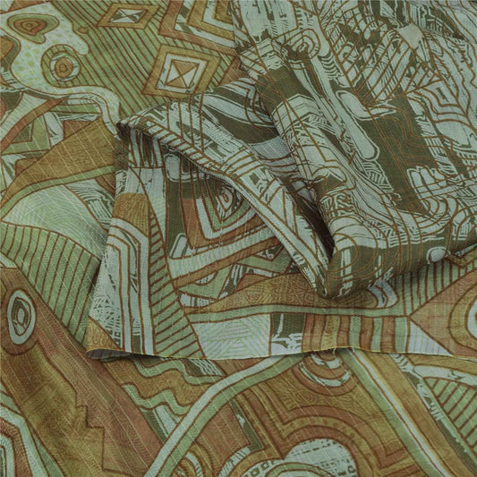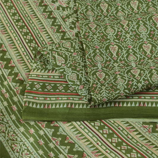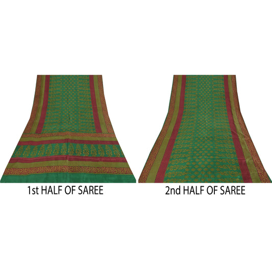 Sanskriti Vintage Sarees Green Pure Crepe Silk Printed Sari 5+yd Craft Fabric