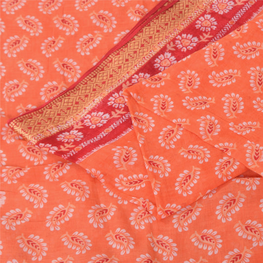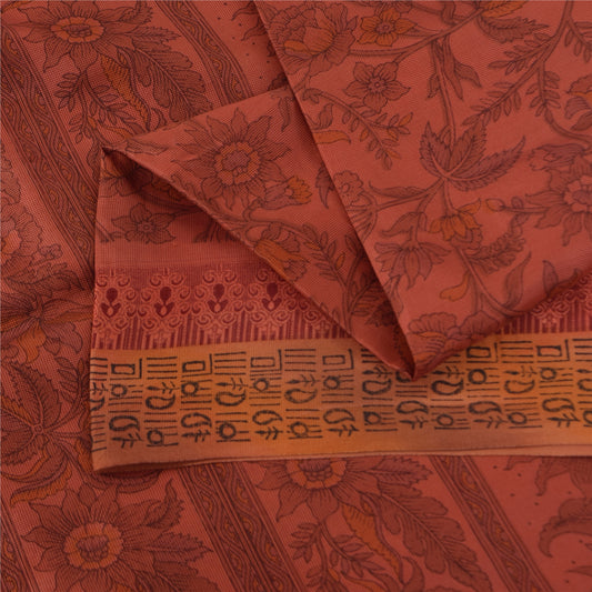 Sanskriti Vintage Sarees Orange Pure Georgette Silk Printed Sari Craft Sustainable Fabric